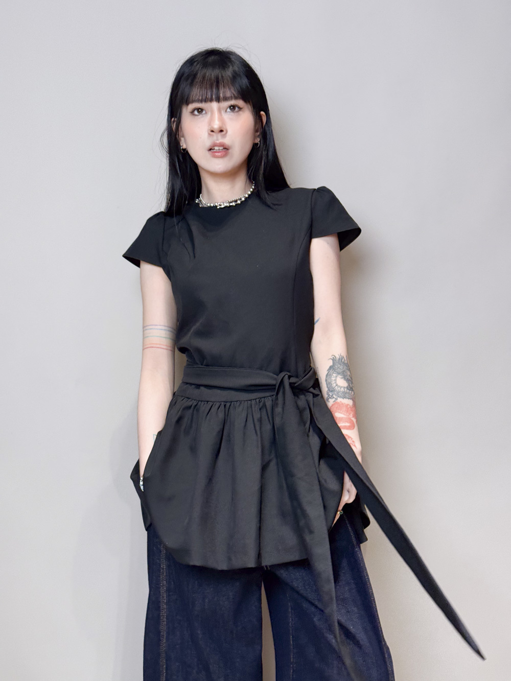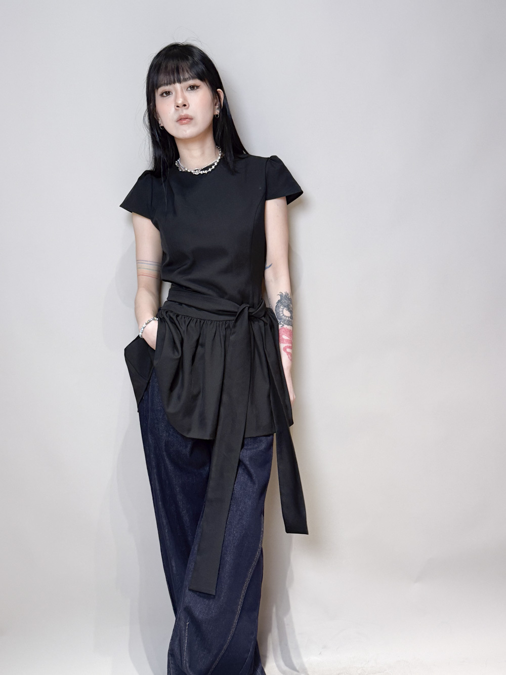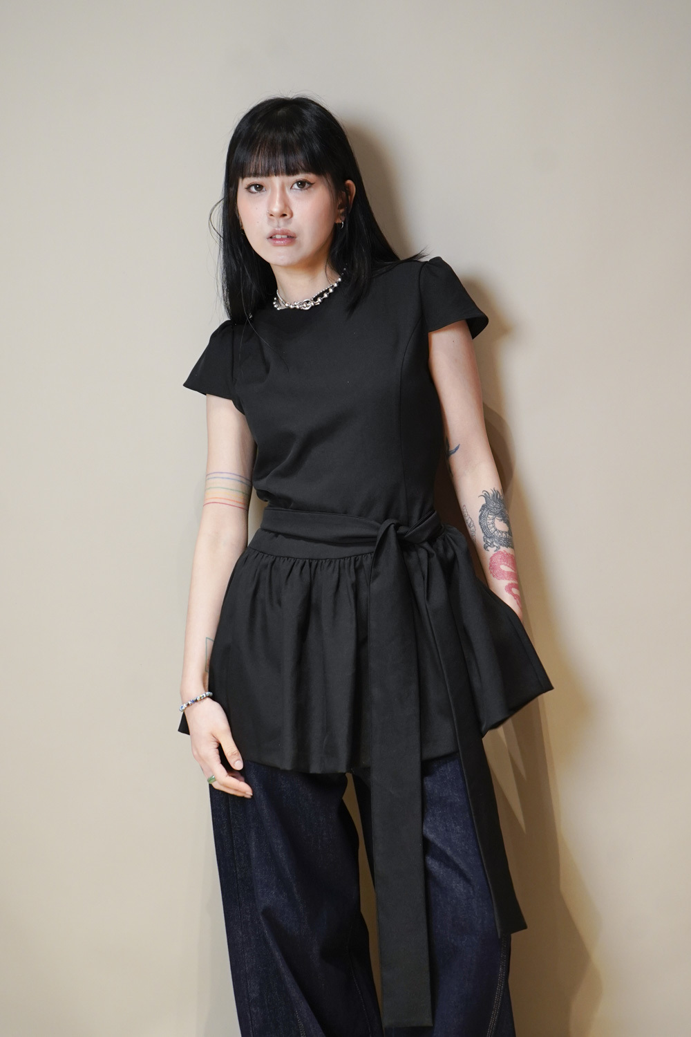 綁帶雙重纏繞腰線/製造腰封效果