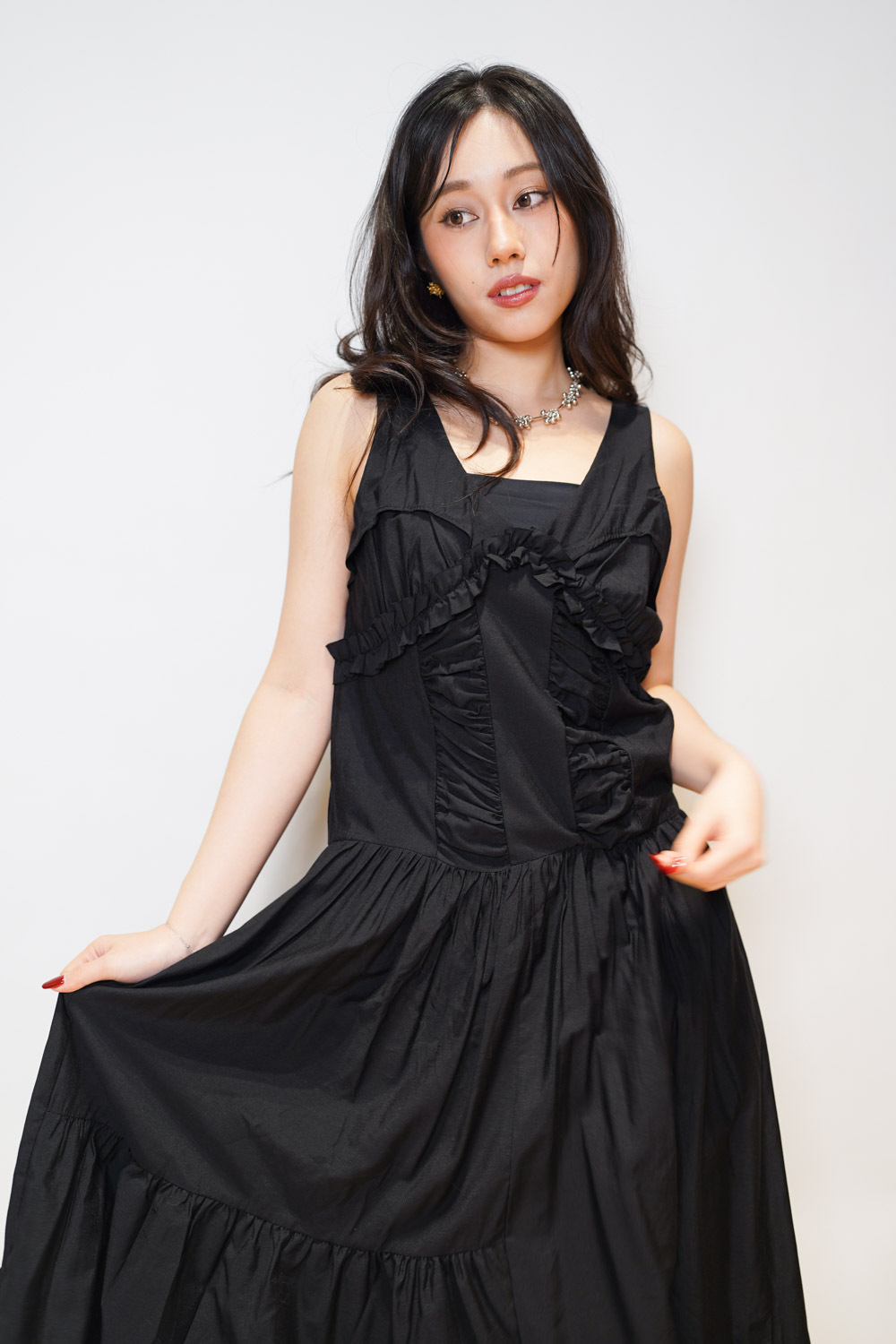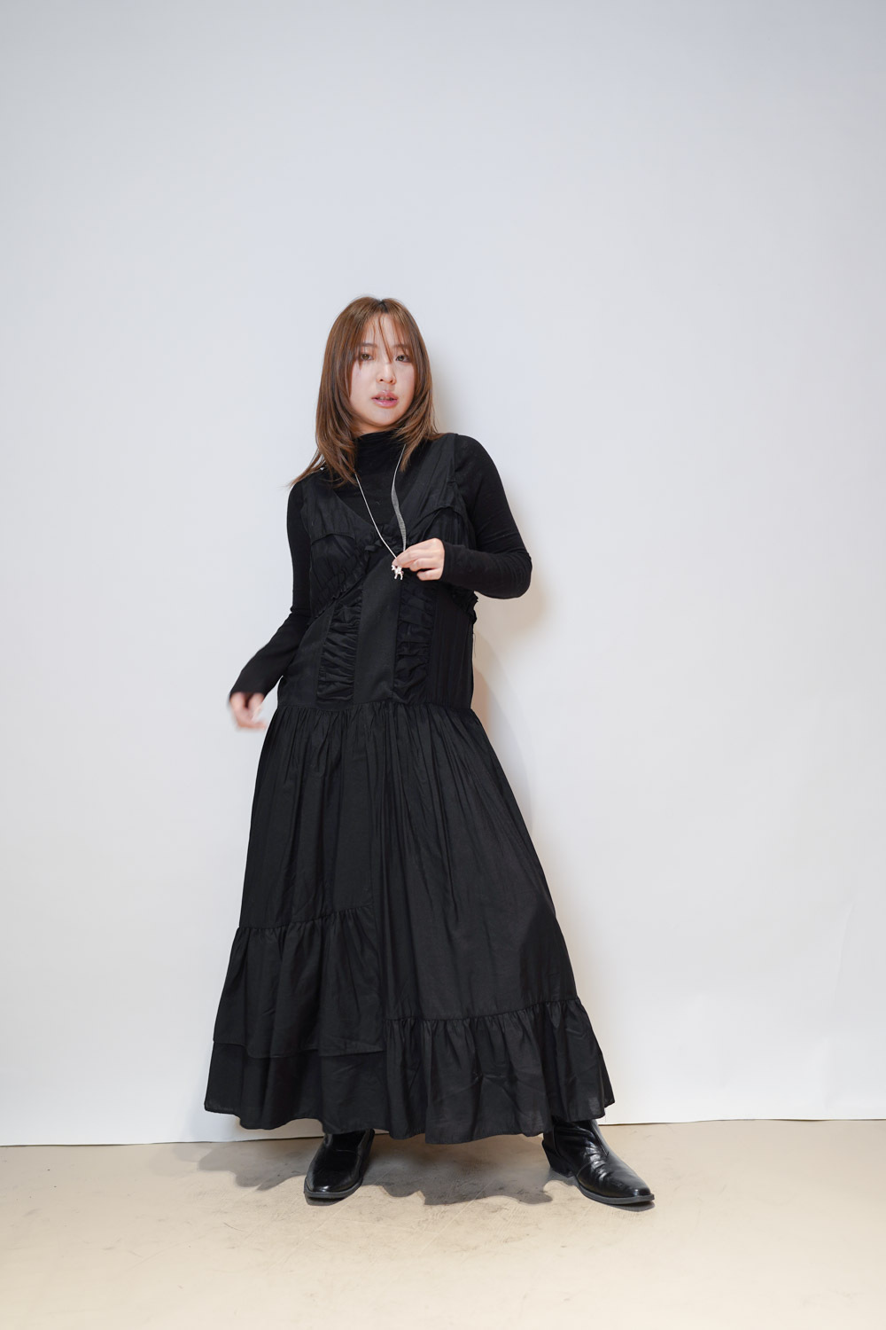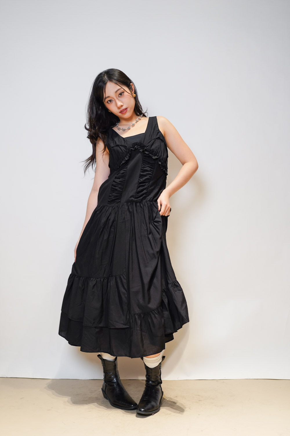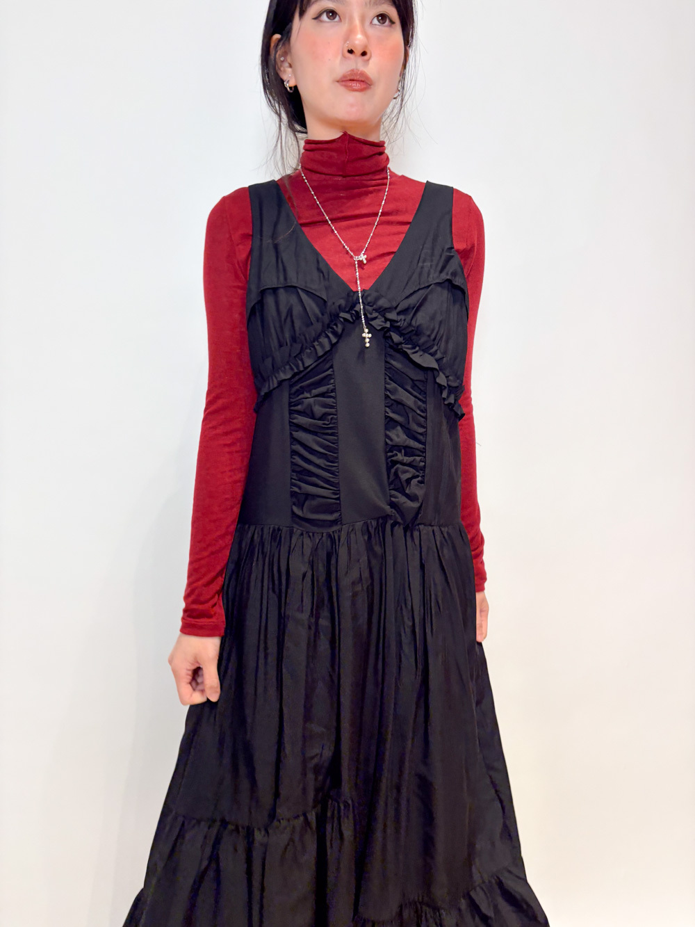 重工設計 胸前皺折設計 不規則雙層下擺 時尚設計感/