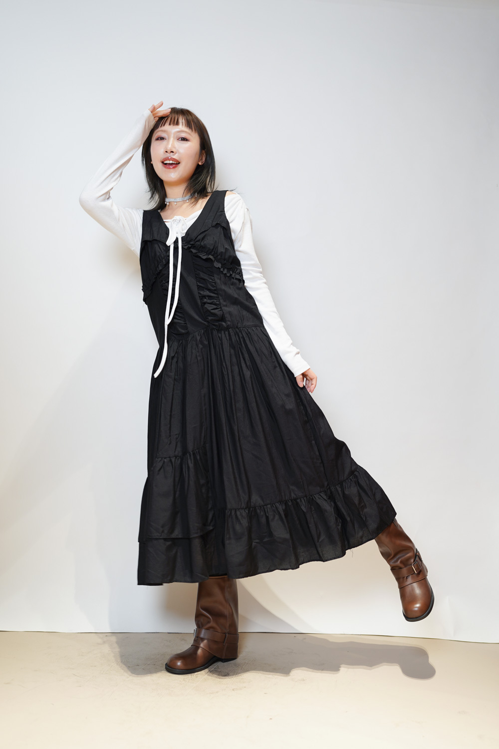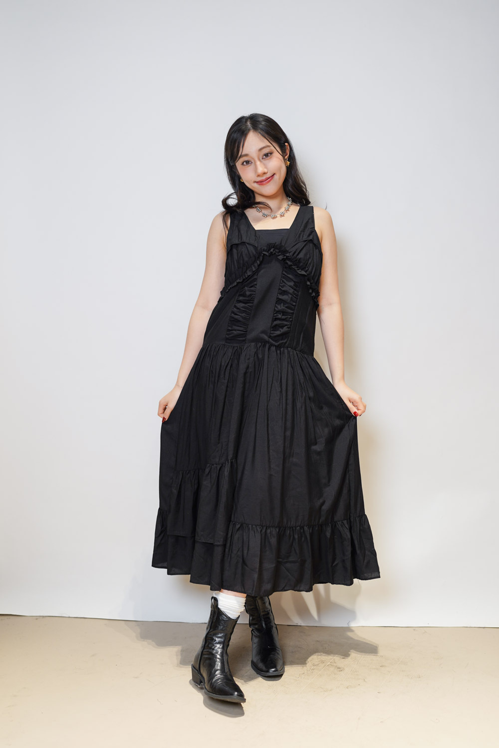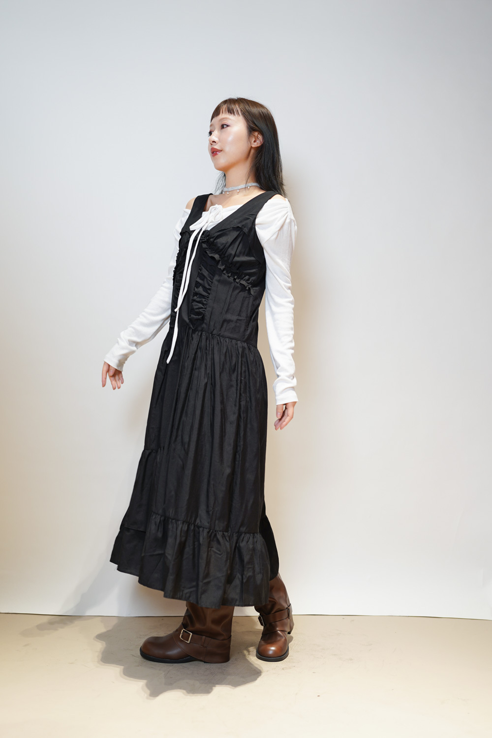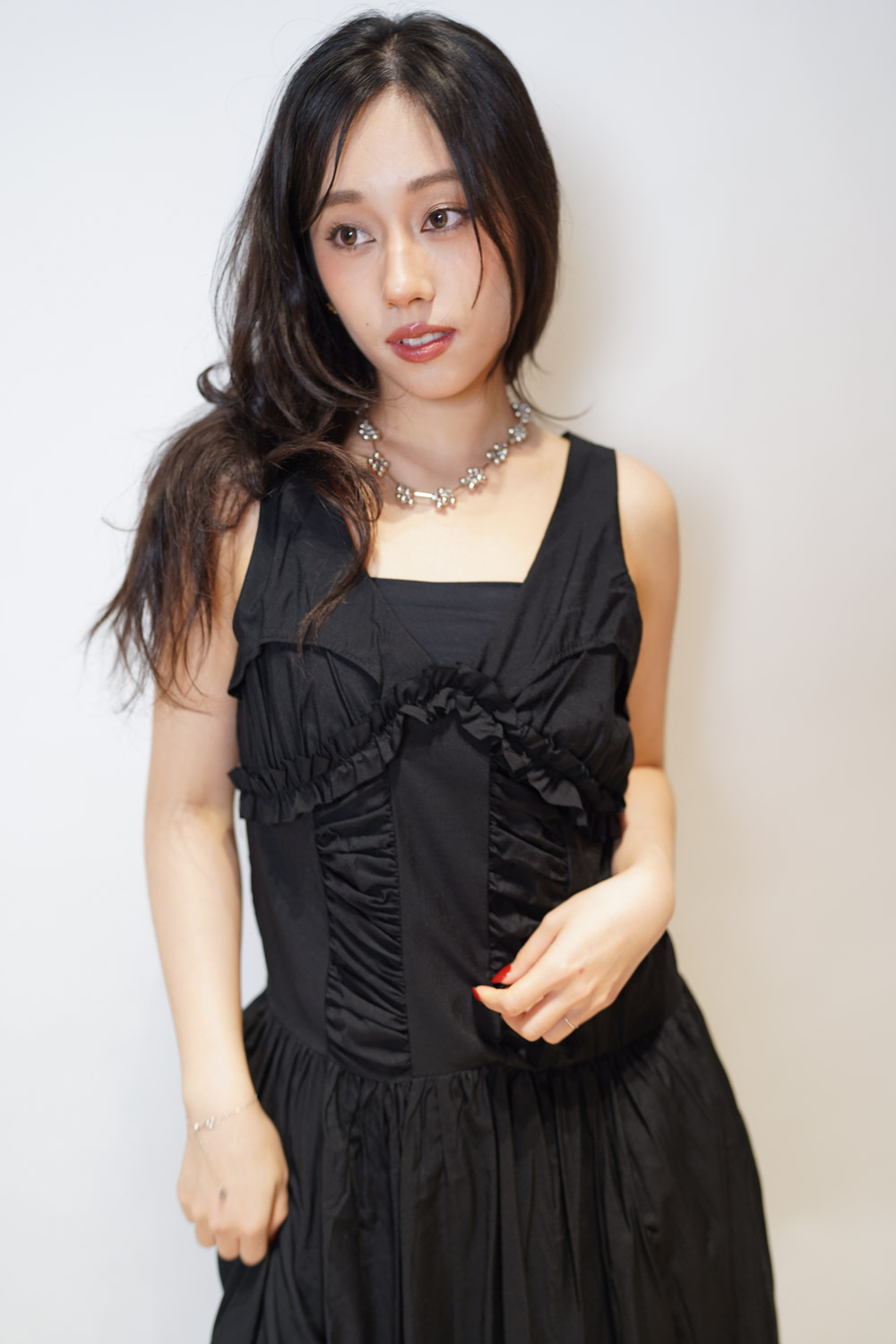 重工設計 胸前皺折設計 不規則雙層下擺 時尚設計感/