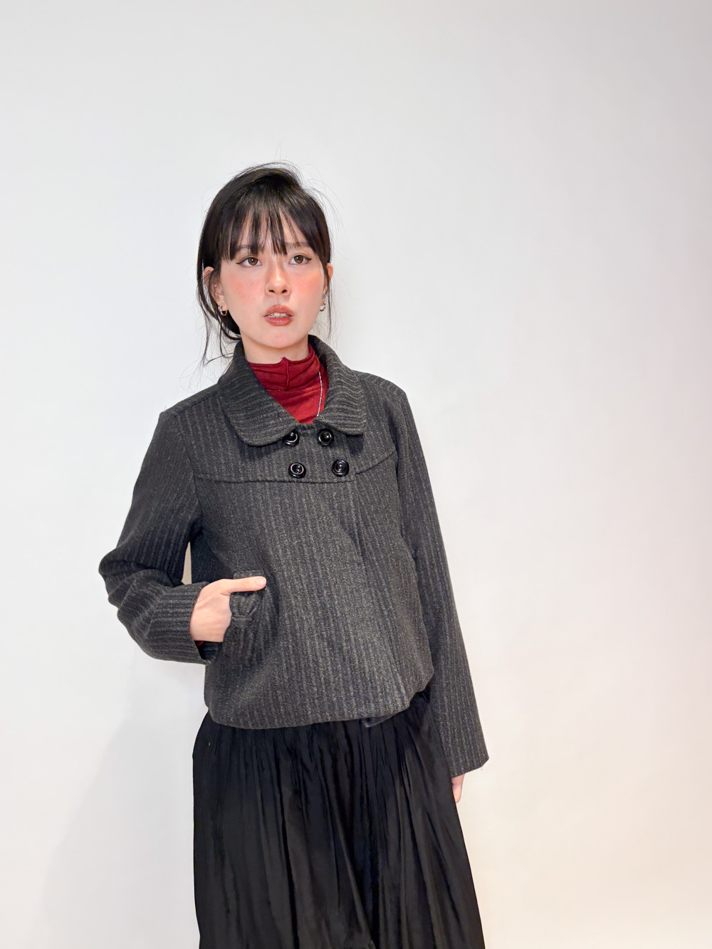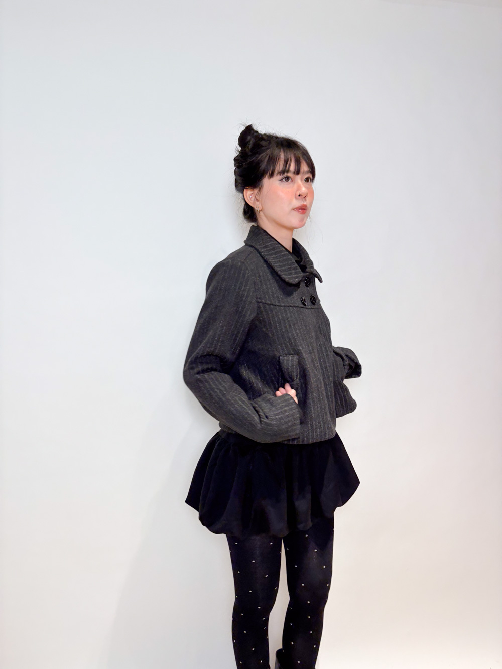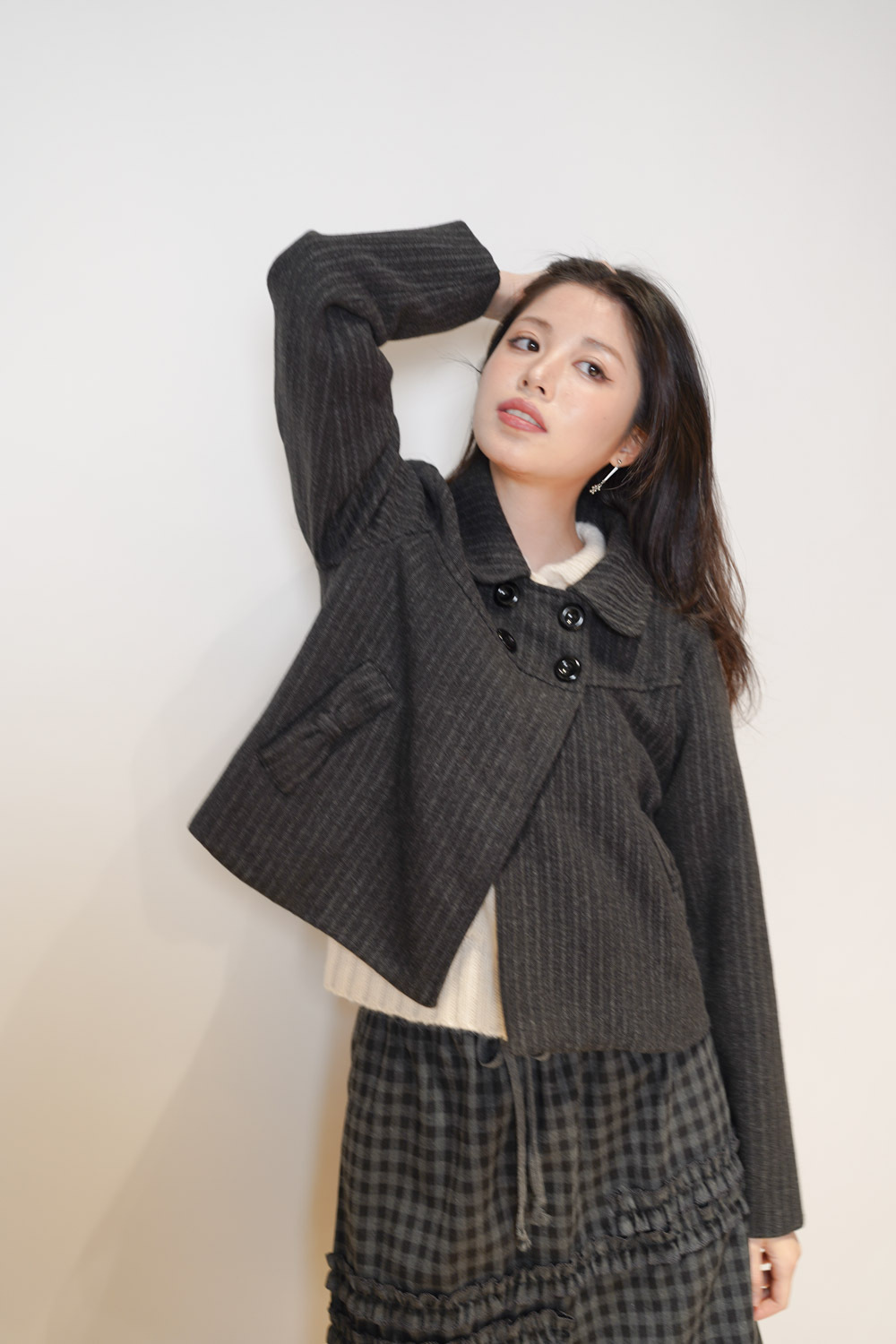 短版風衣設計 領口四顆黑色鈕扣 質感設計/