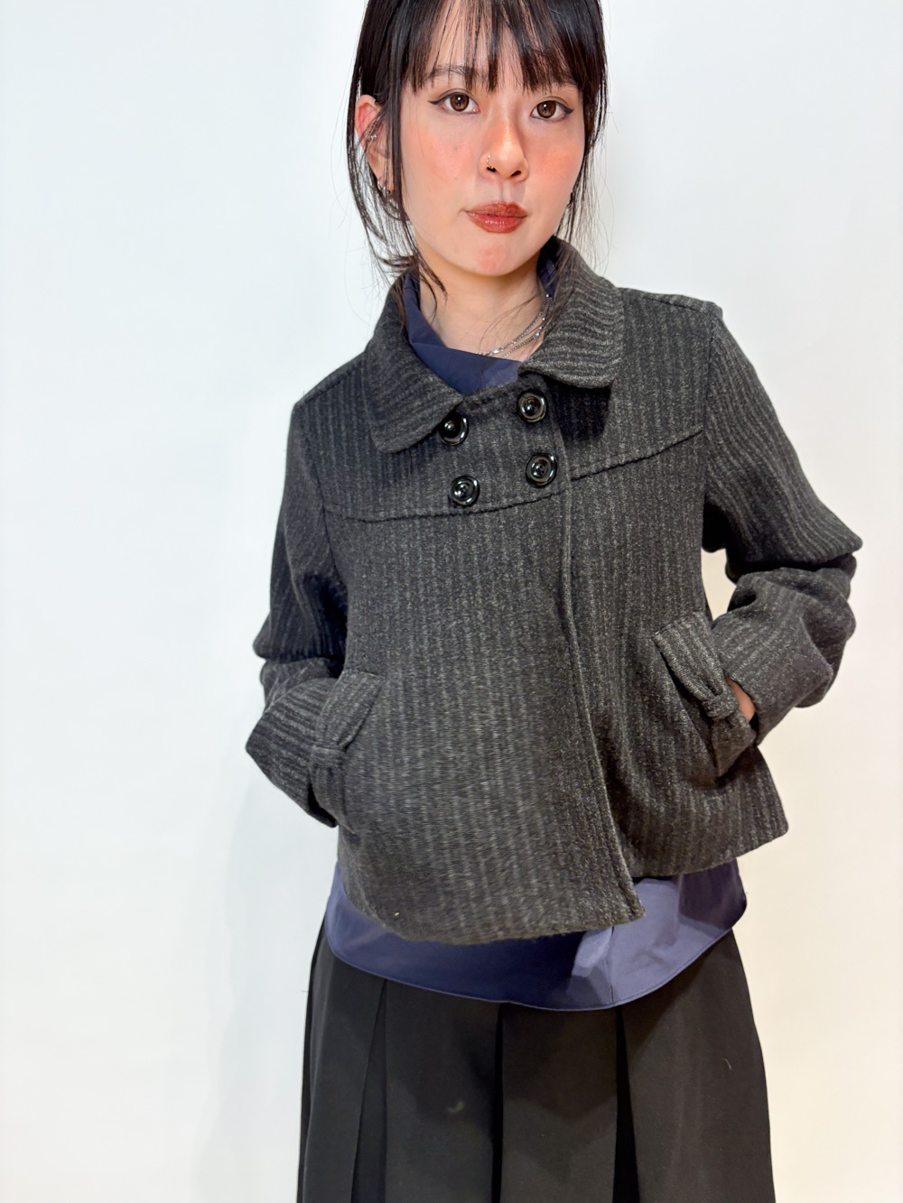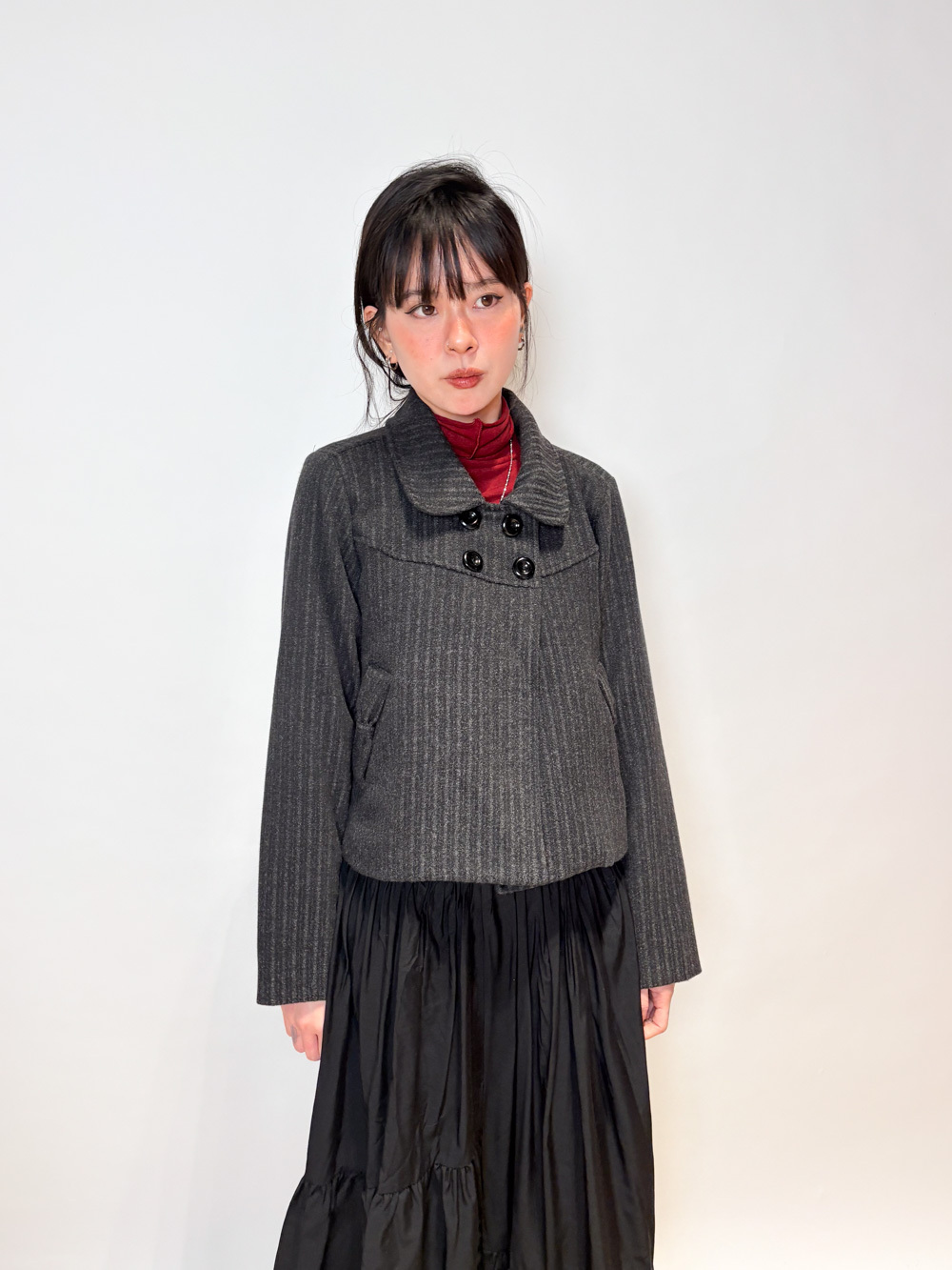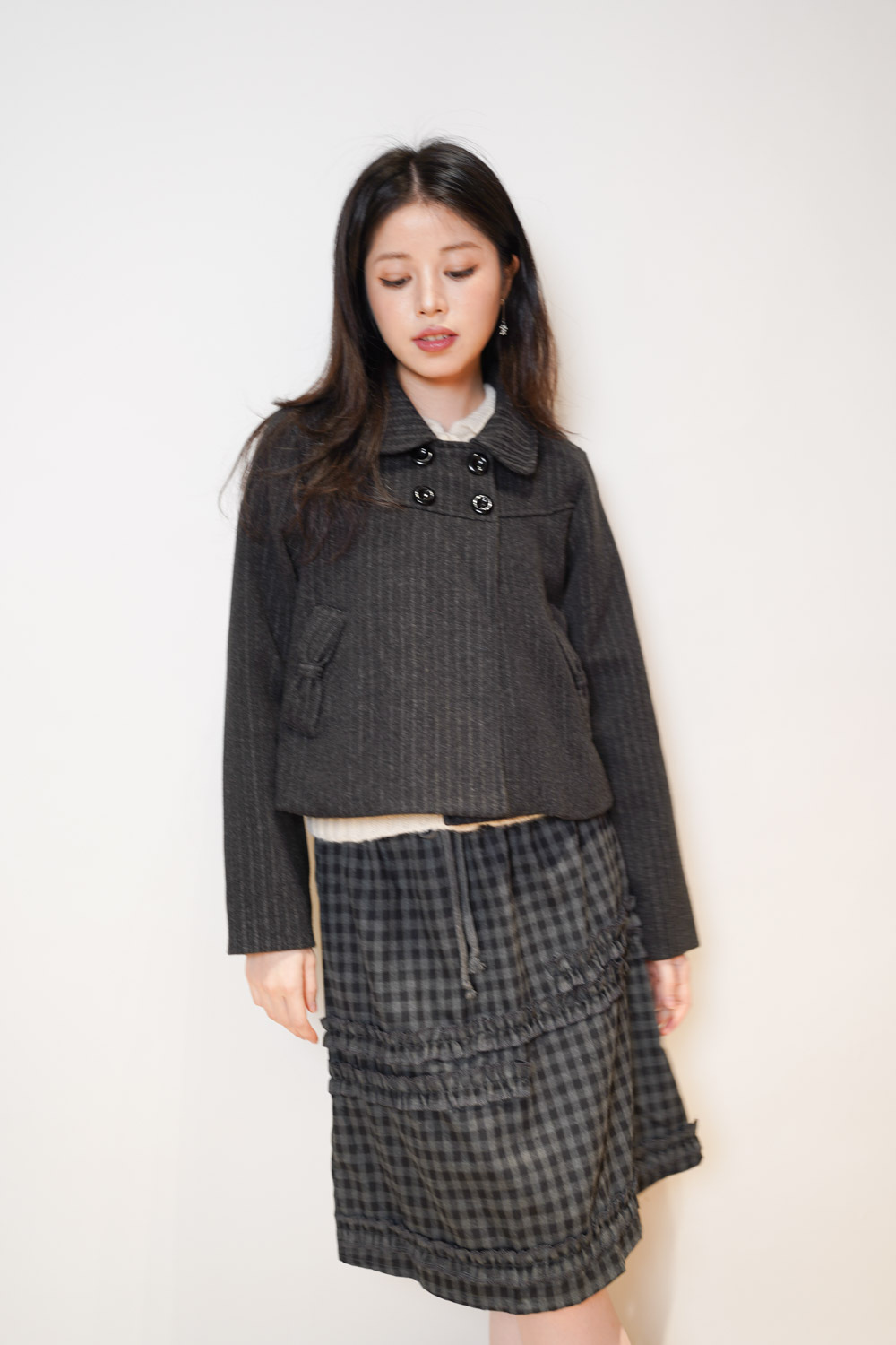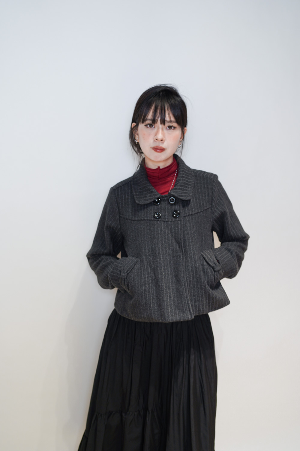 短版風衣設計 領口四顆黑色鈕扣 質感設計/
