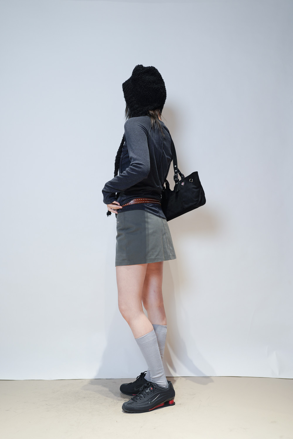 Rider set: mini skirt shorts (KHAKI/ BLACK) - S/M