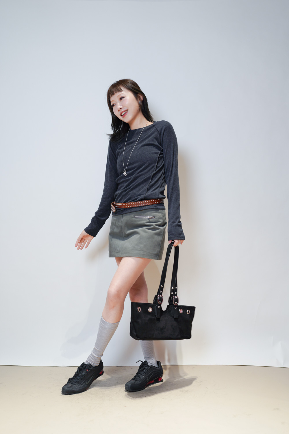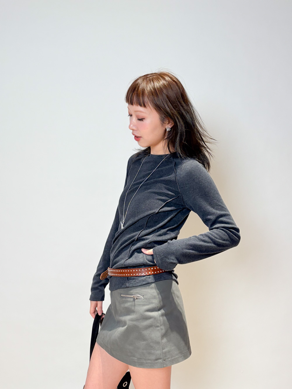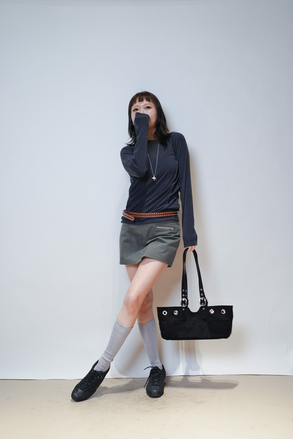 裙前兩個做舊款金屬拉鍊假口袋 低調設計感/