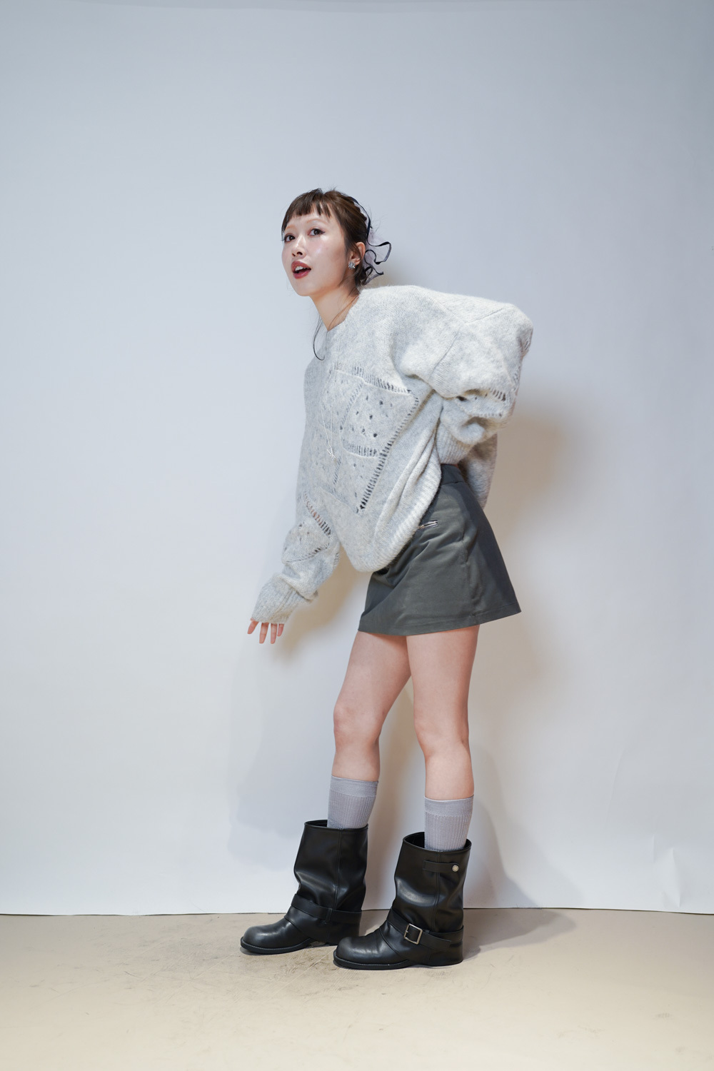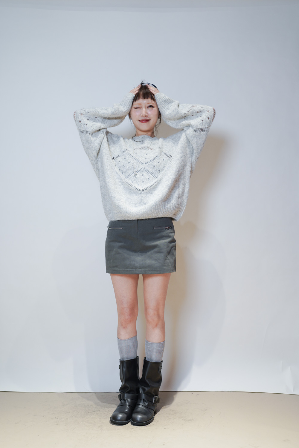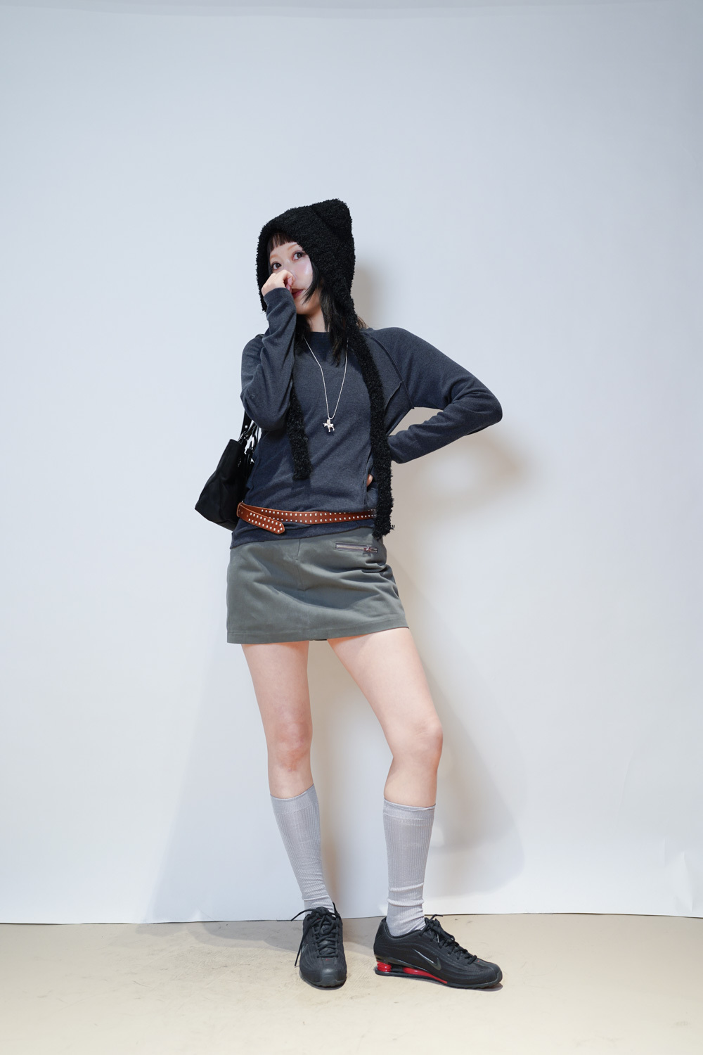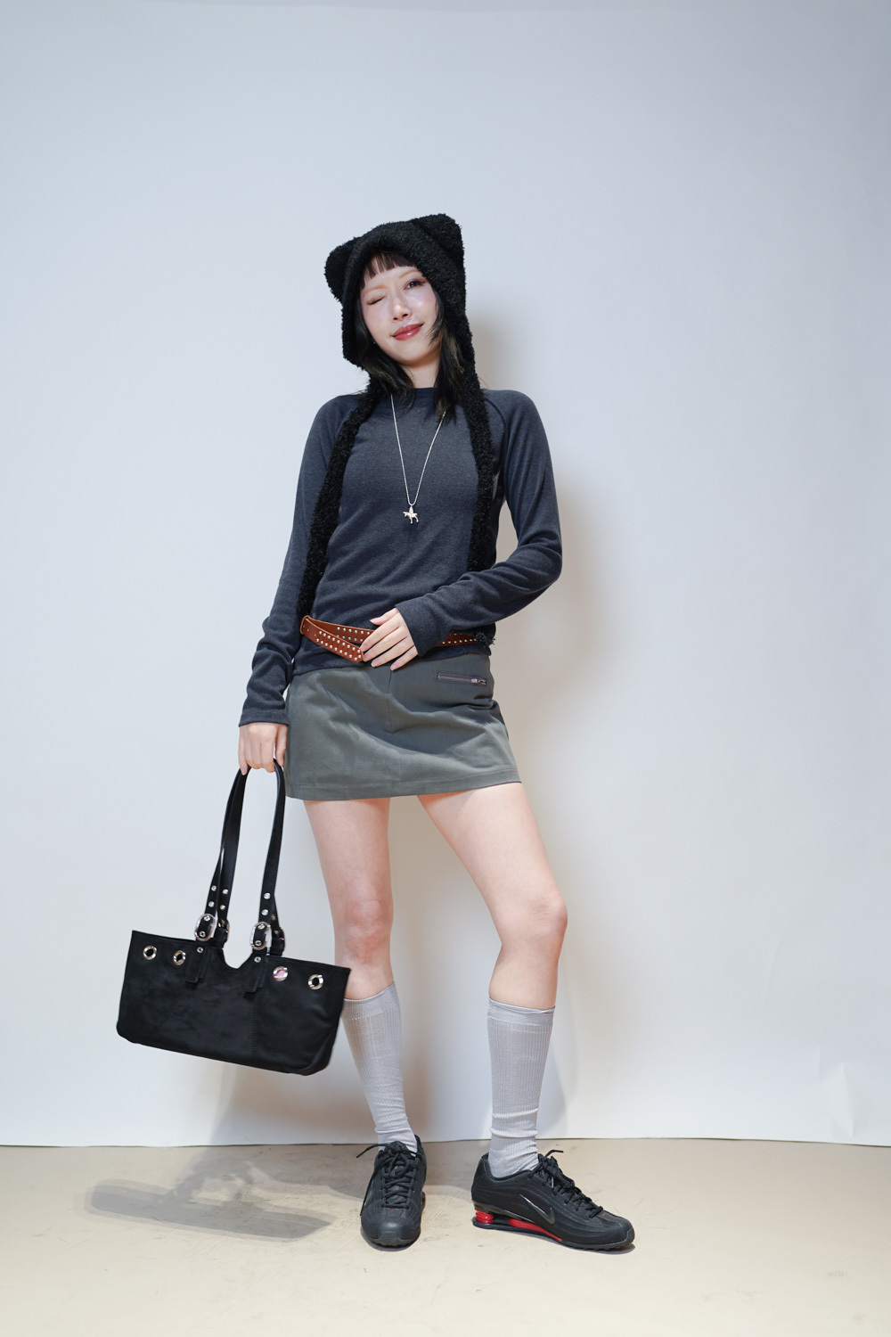 裙前兩個做舊款金屬拉鍊假口袋 低調設計感/