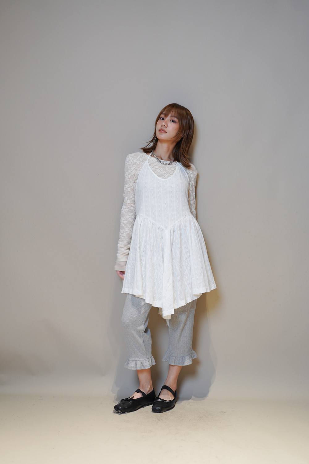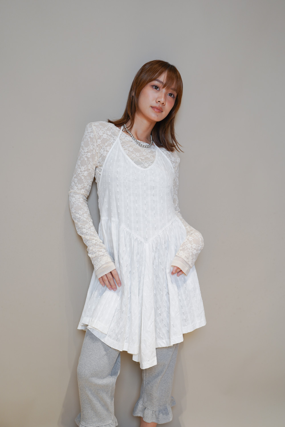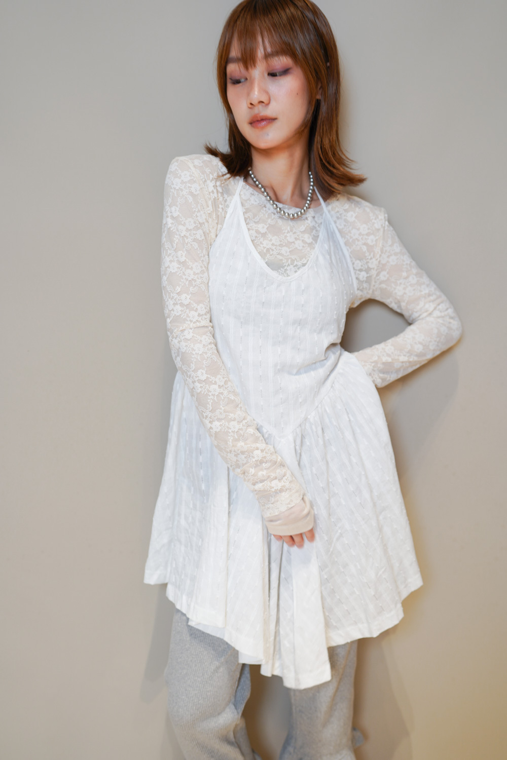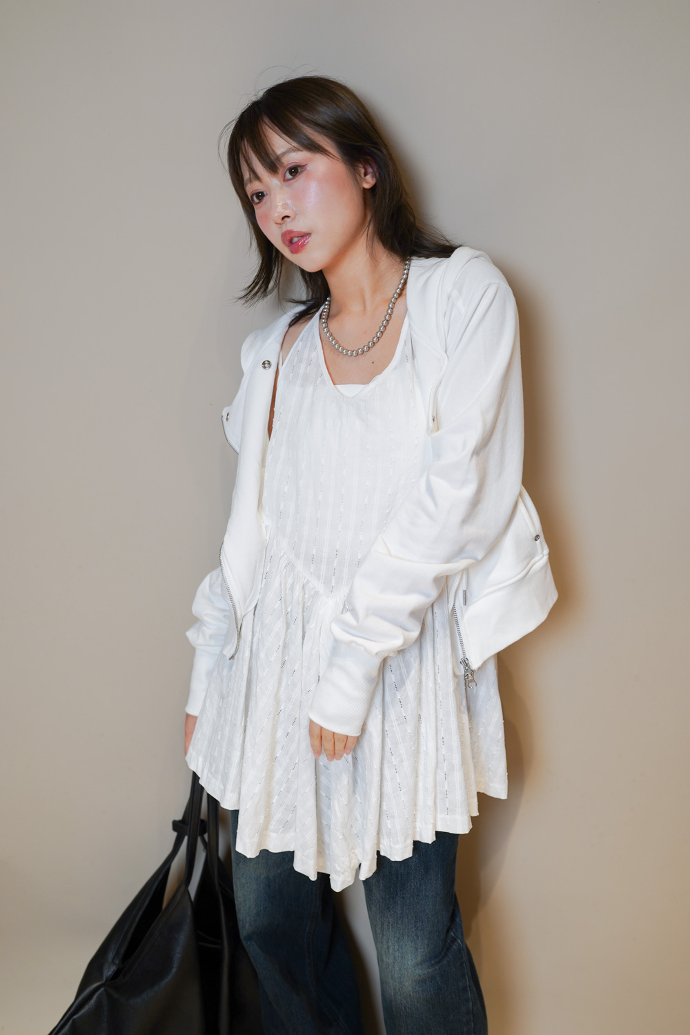 Ripple mini dress (WHITE/BLACK)