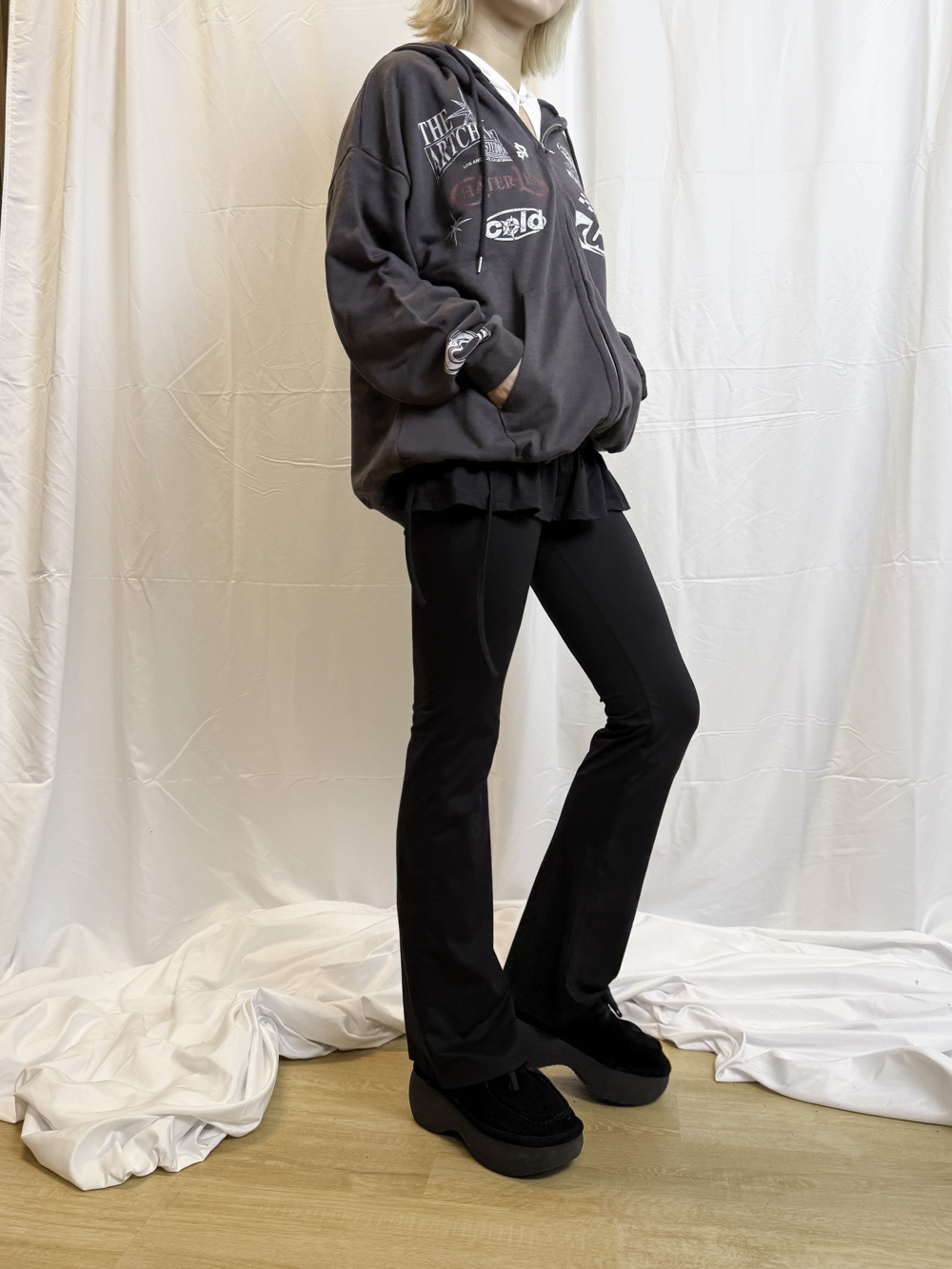 Waist: 66-76cm (26-30”) / Hip: 80-100cm (31-39”)/ Rise: 27cm / Length: 98cm / Thigh: 42-60cm / Hem: 48-58cm
