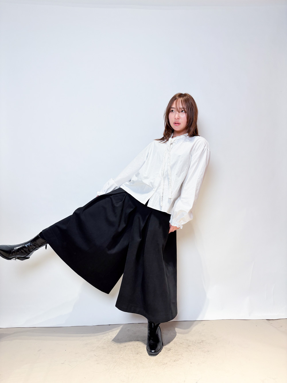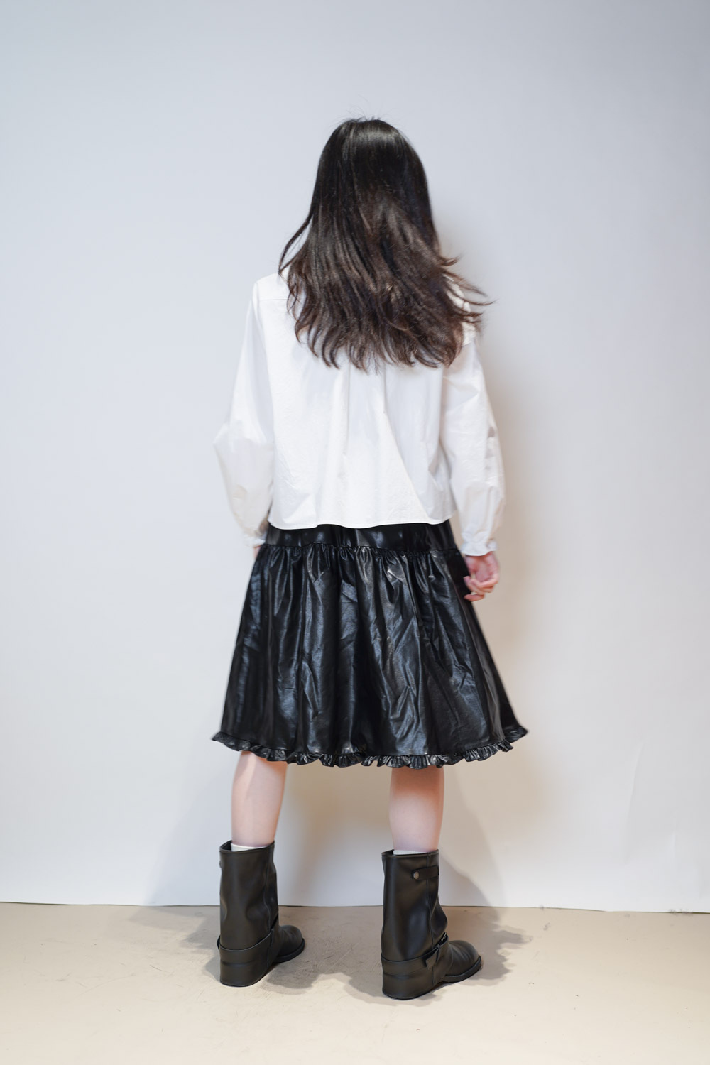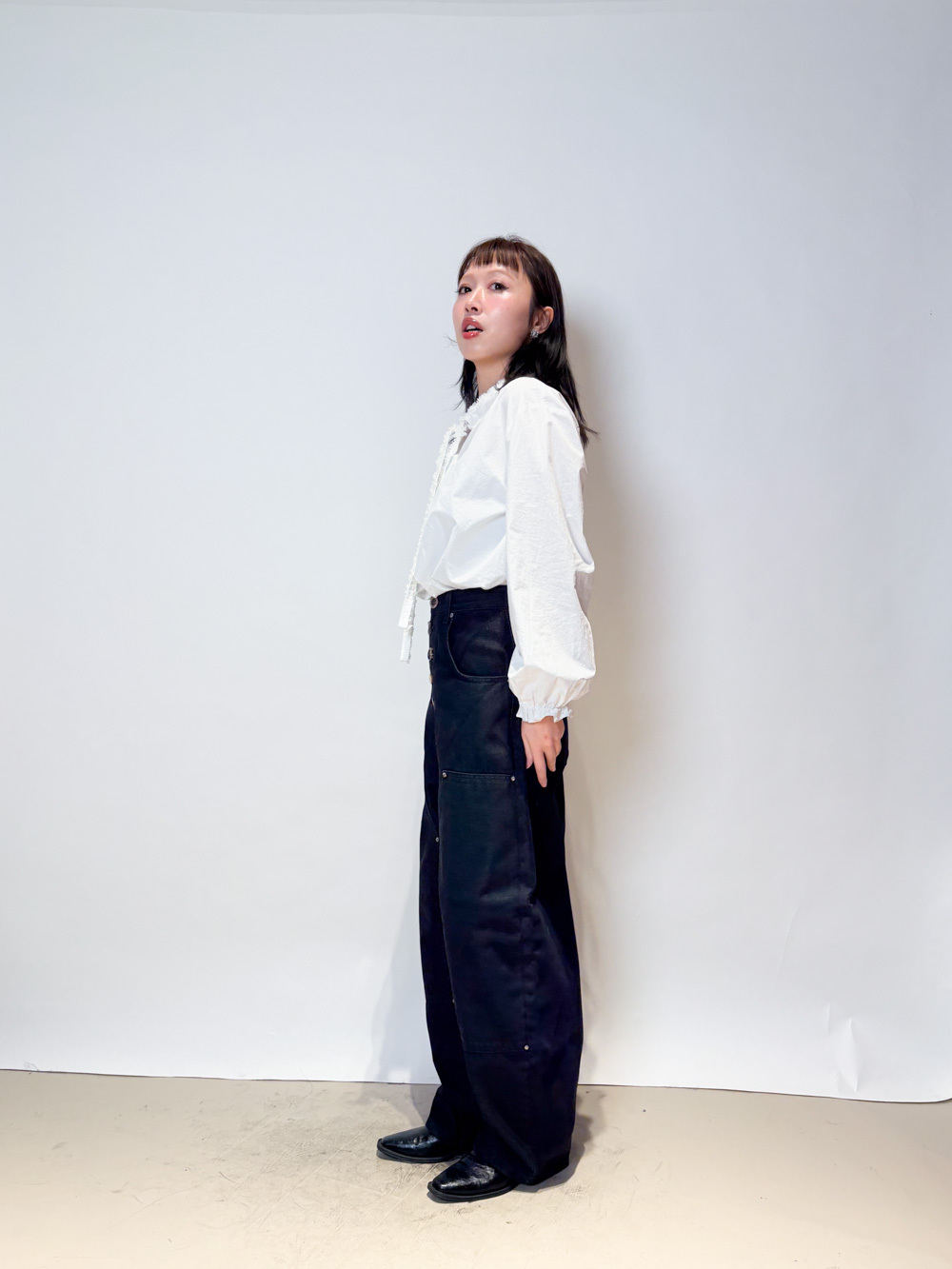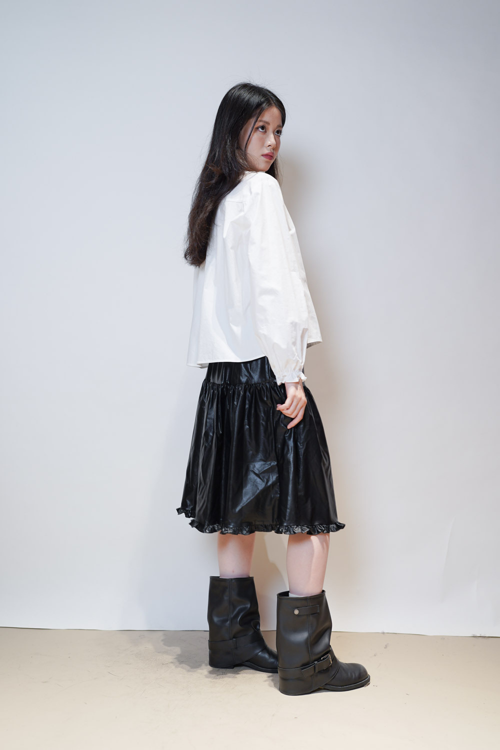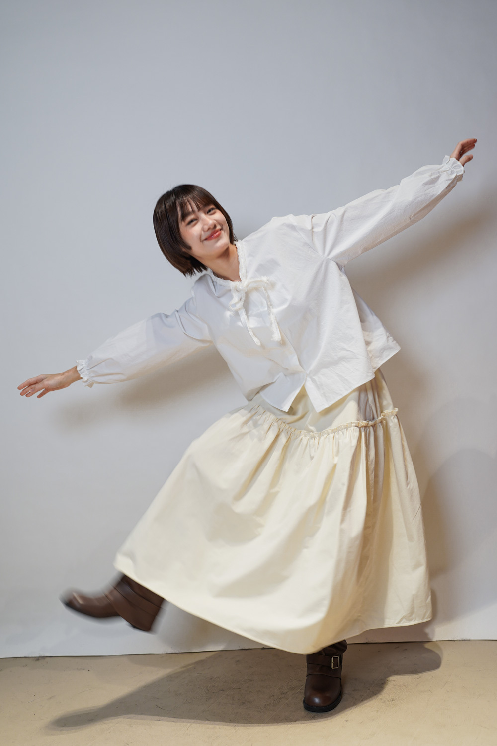 領口ruffle邊長帶設計 可綁蝴蝶結也可隨意垂於領口前/