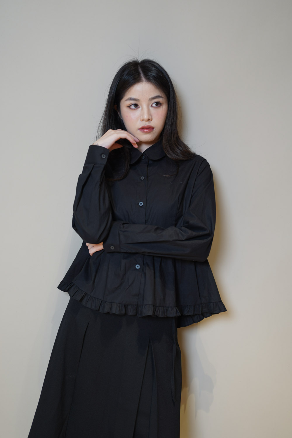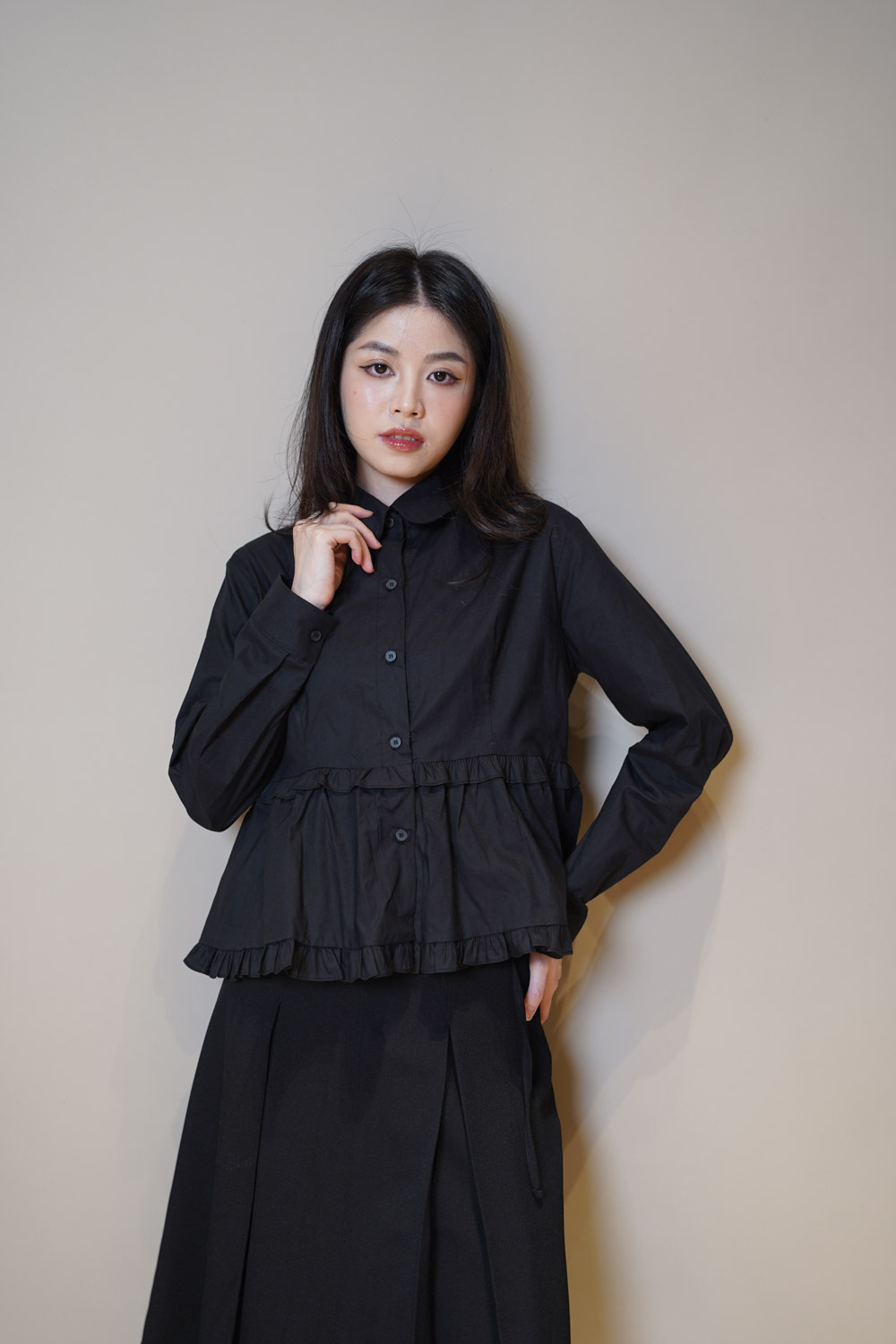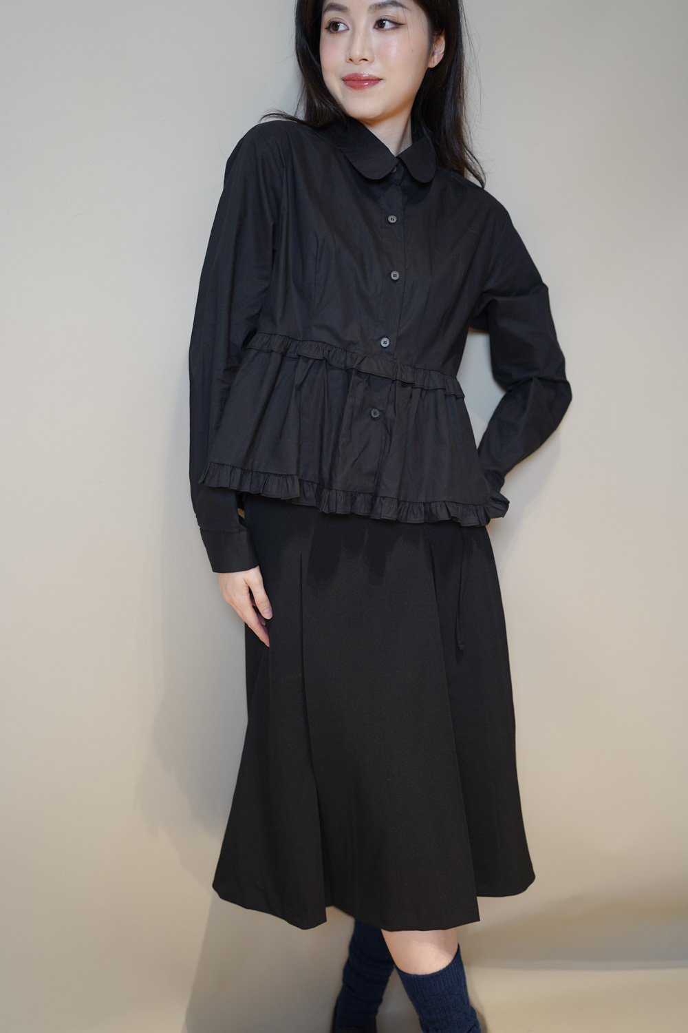 Ruffle Trim shirt (WHITE/BLACK)