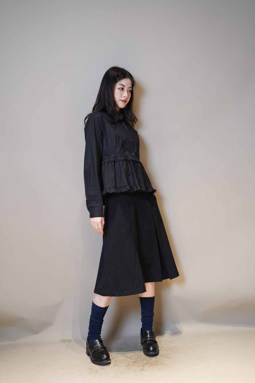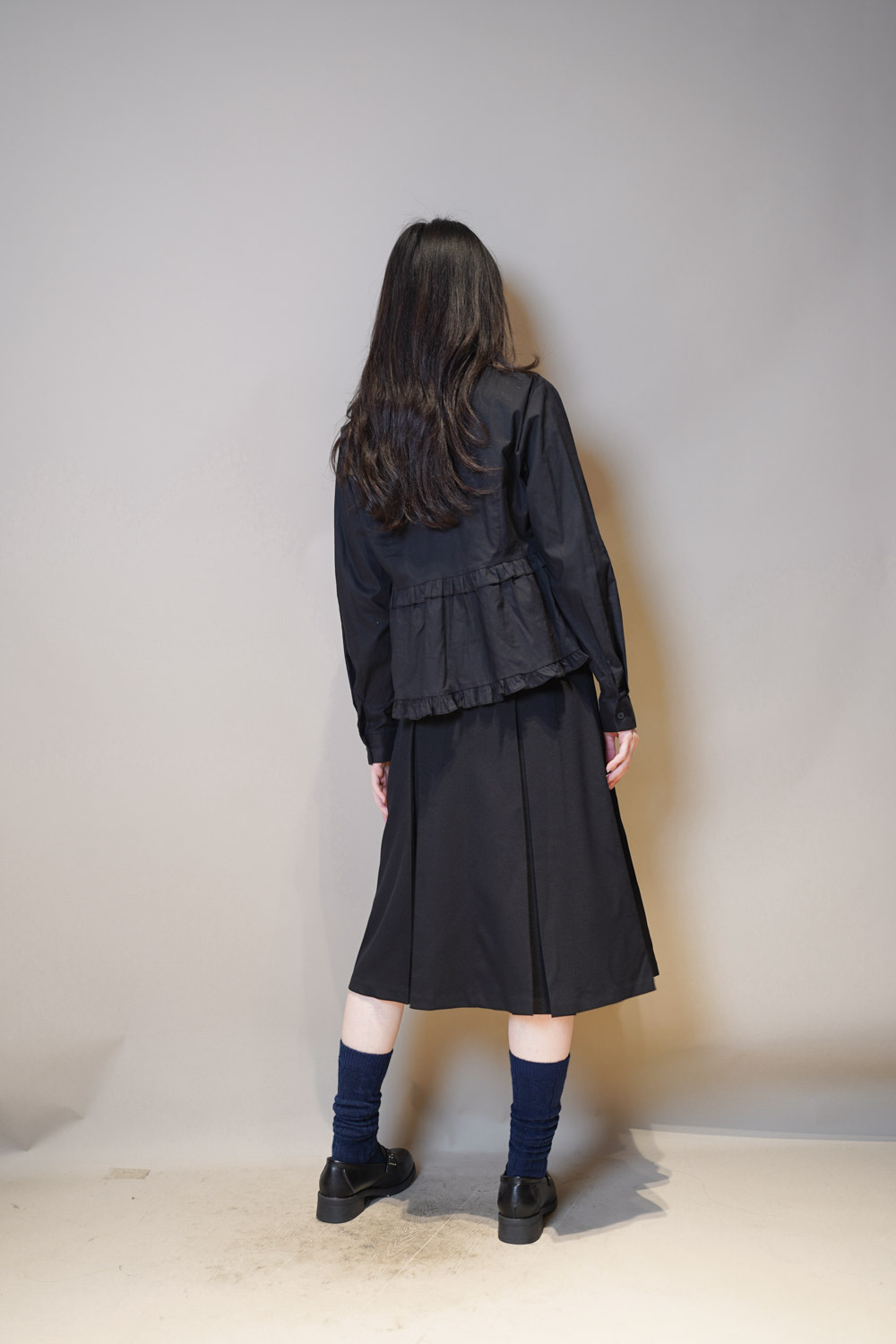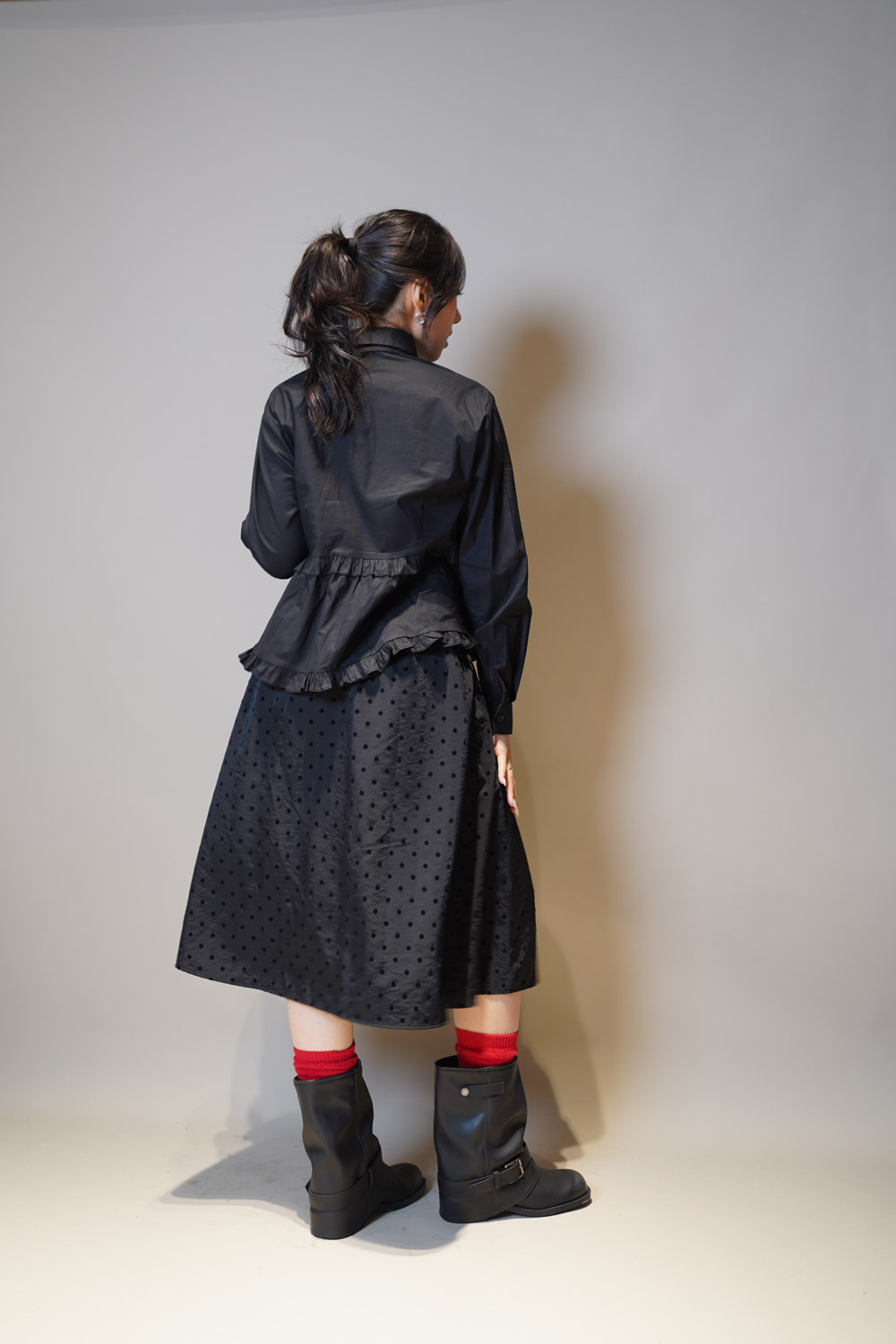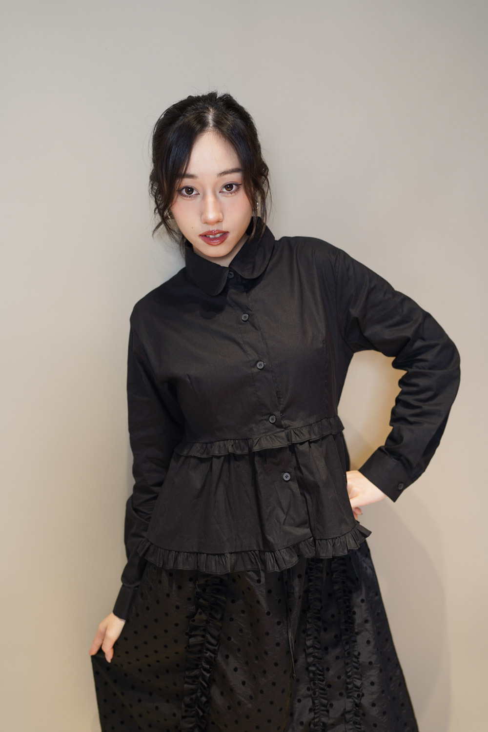 Ruffle Trim shirt (WHITE/BLACK)