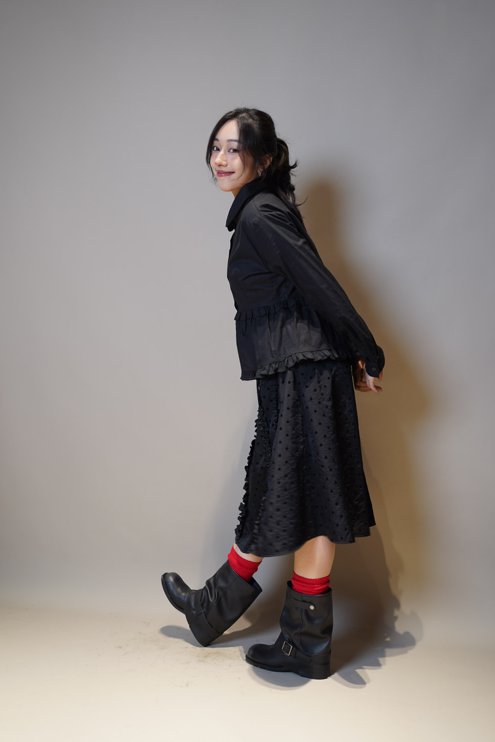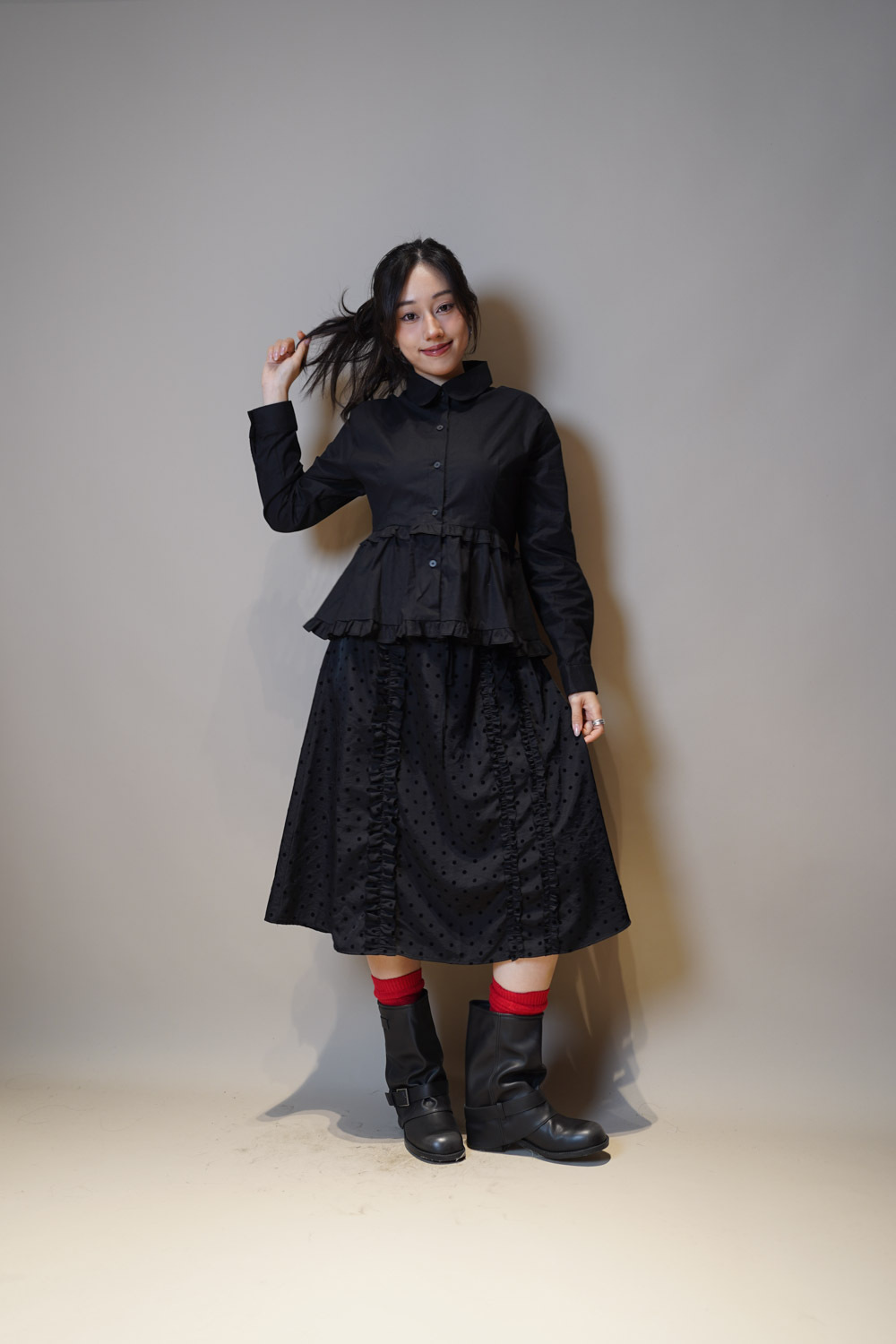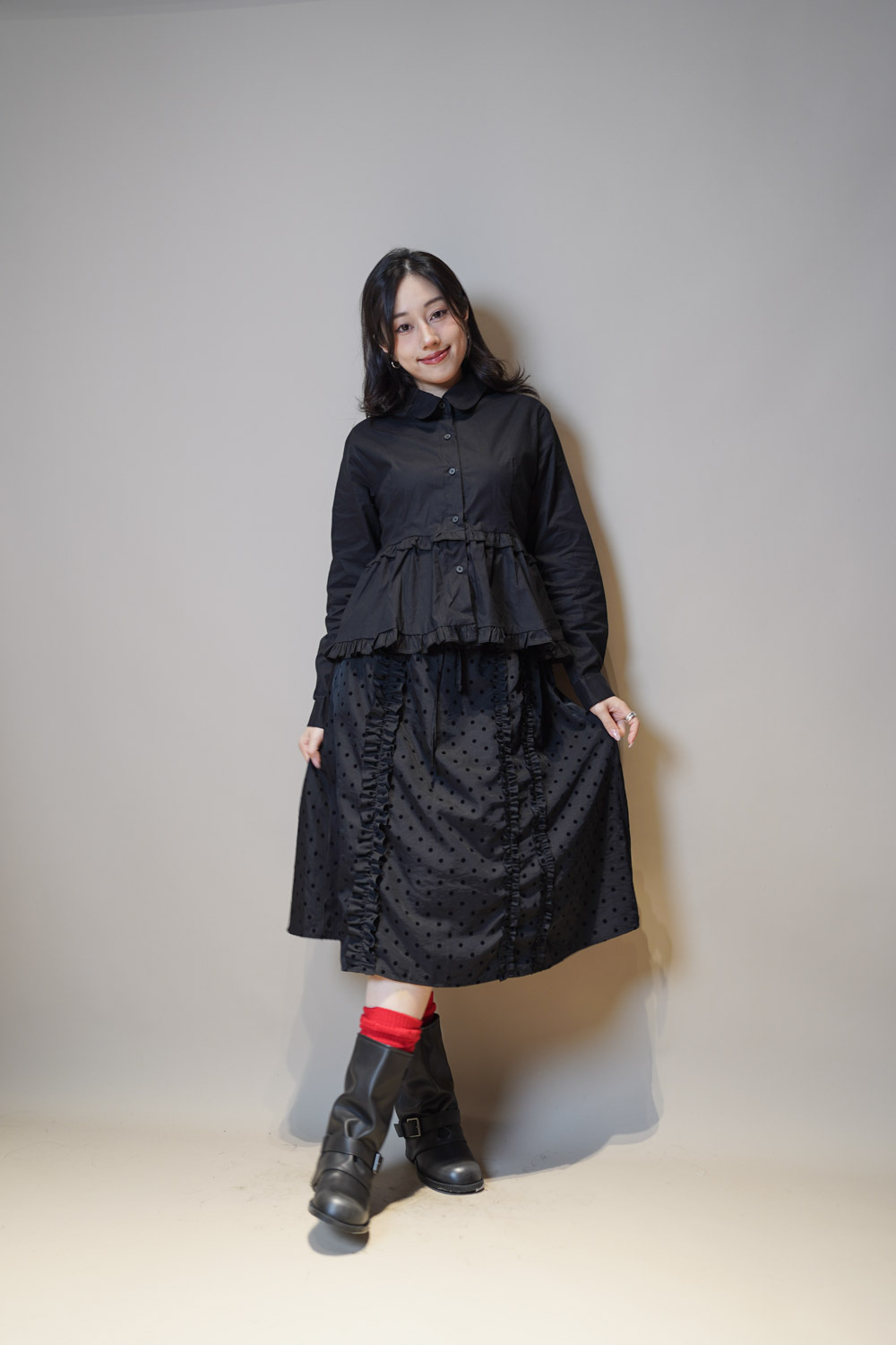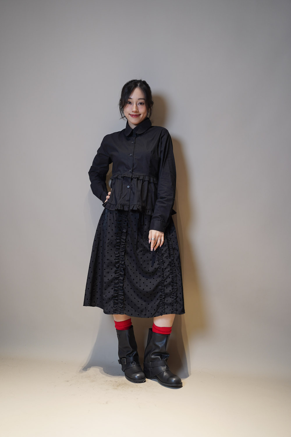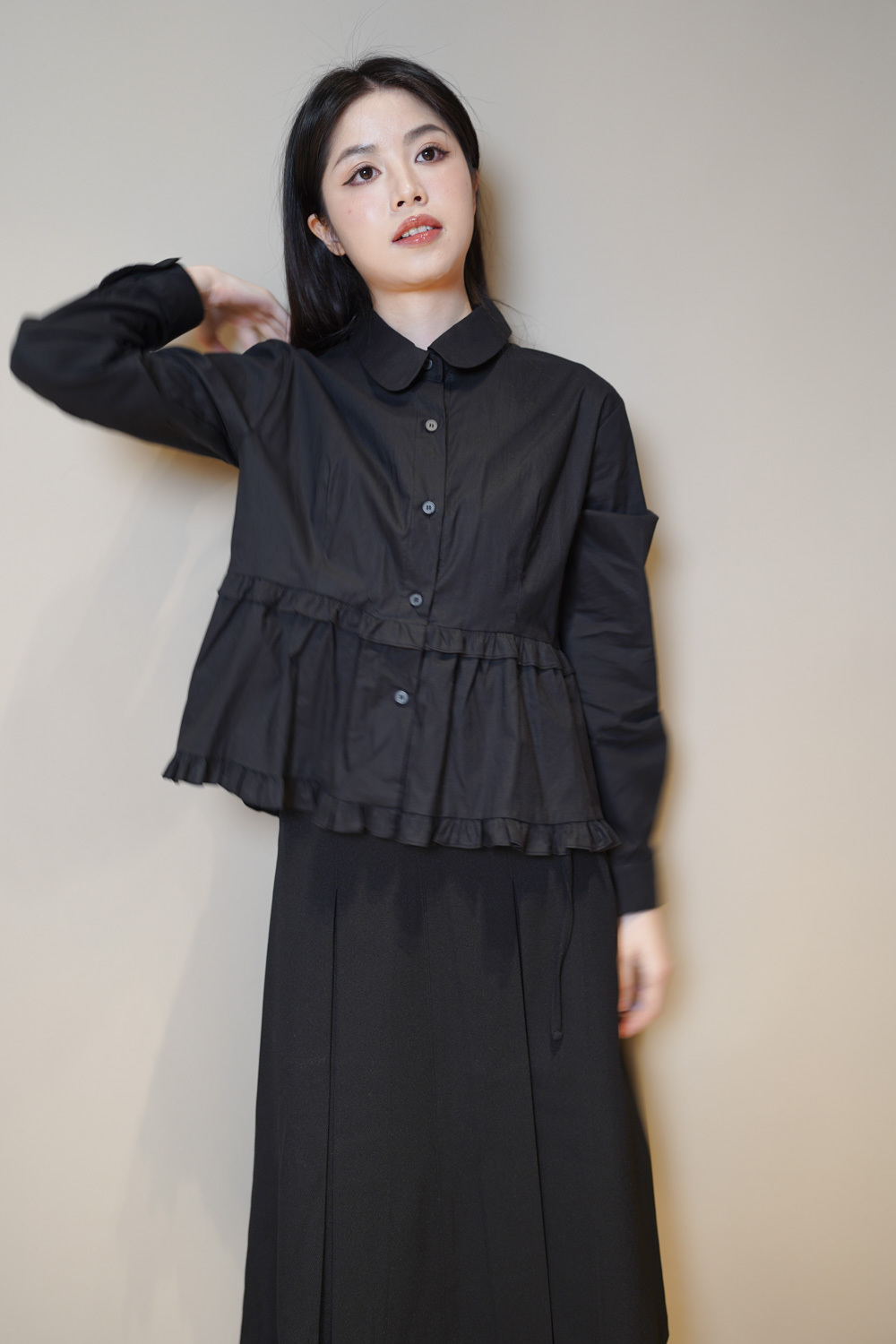 下擺兩層ruffle邊增添少女感/ 不過分浮誇的設計感/