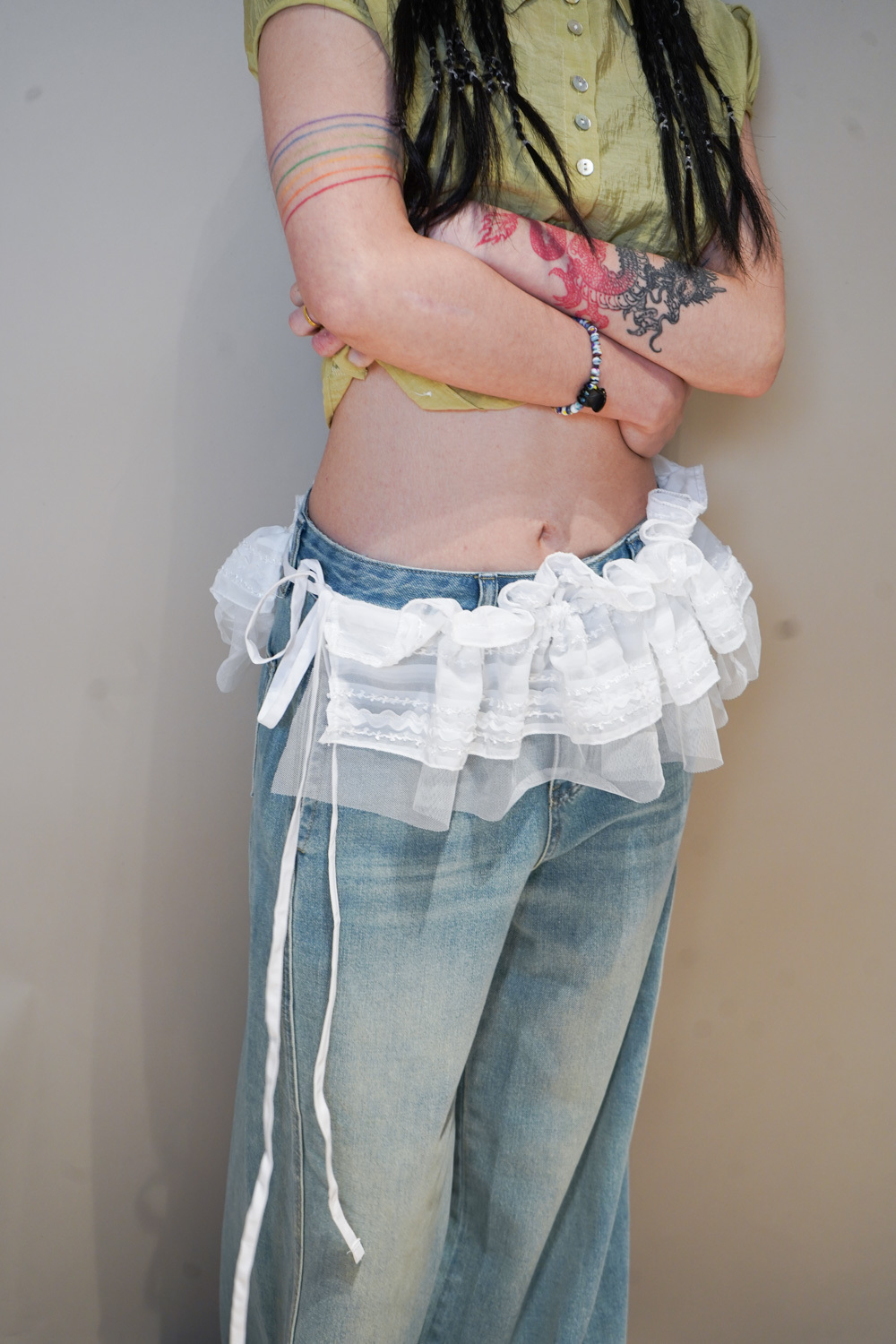 ruffle wrapping waistbelt (WHITE /BLACK / BLUE)