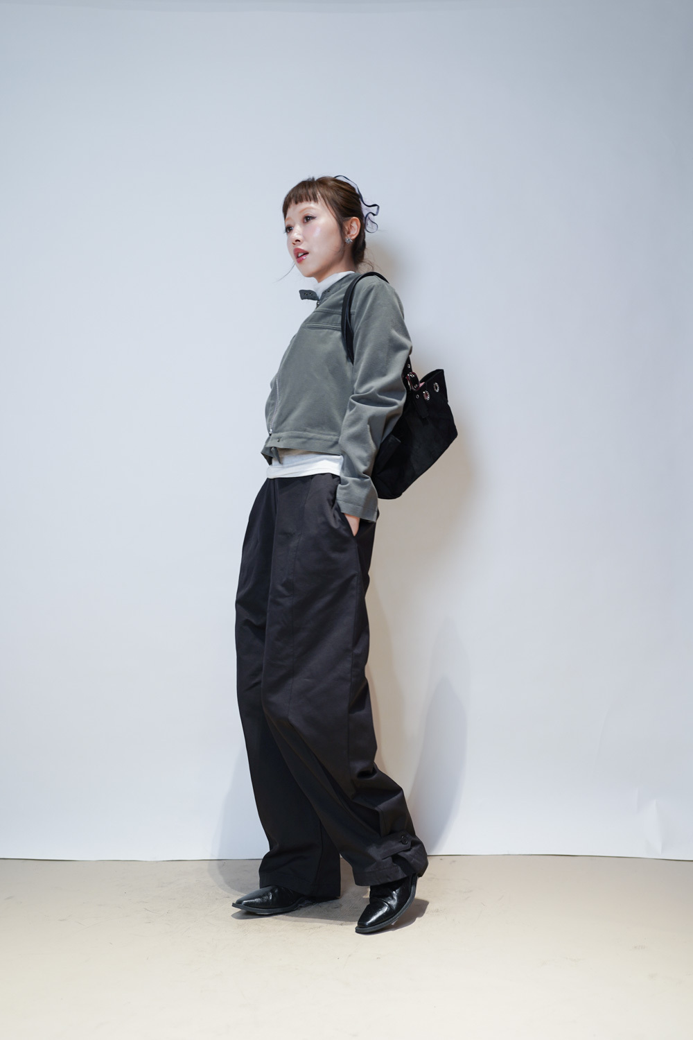 Side buttons slim carrot army pants (GREEN/ BLACK)-Free size