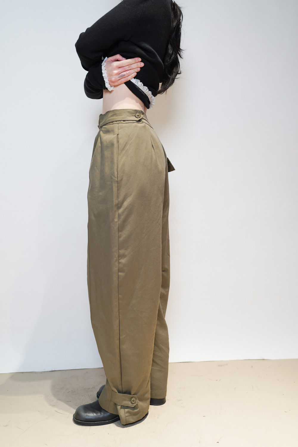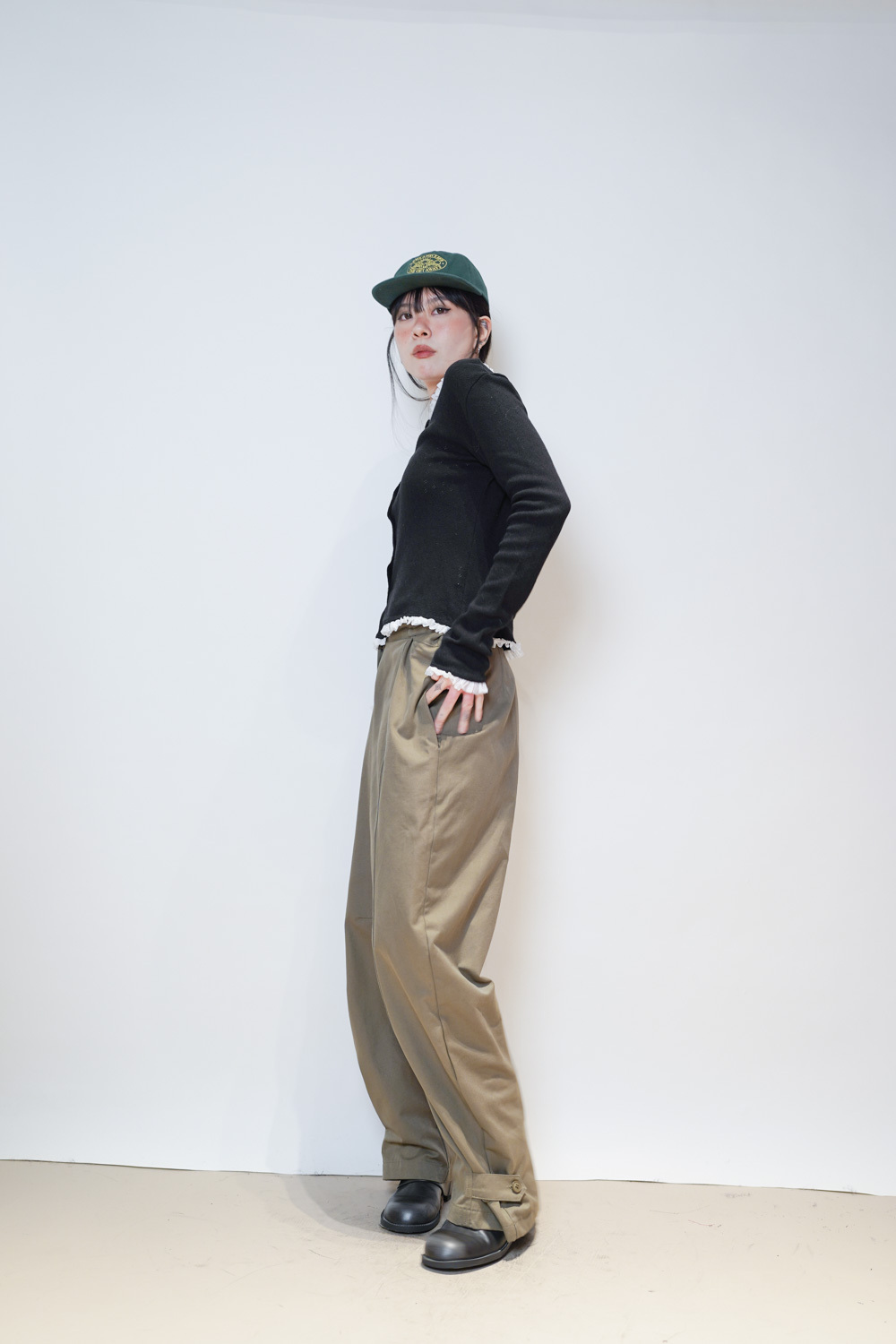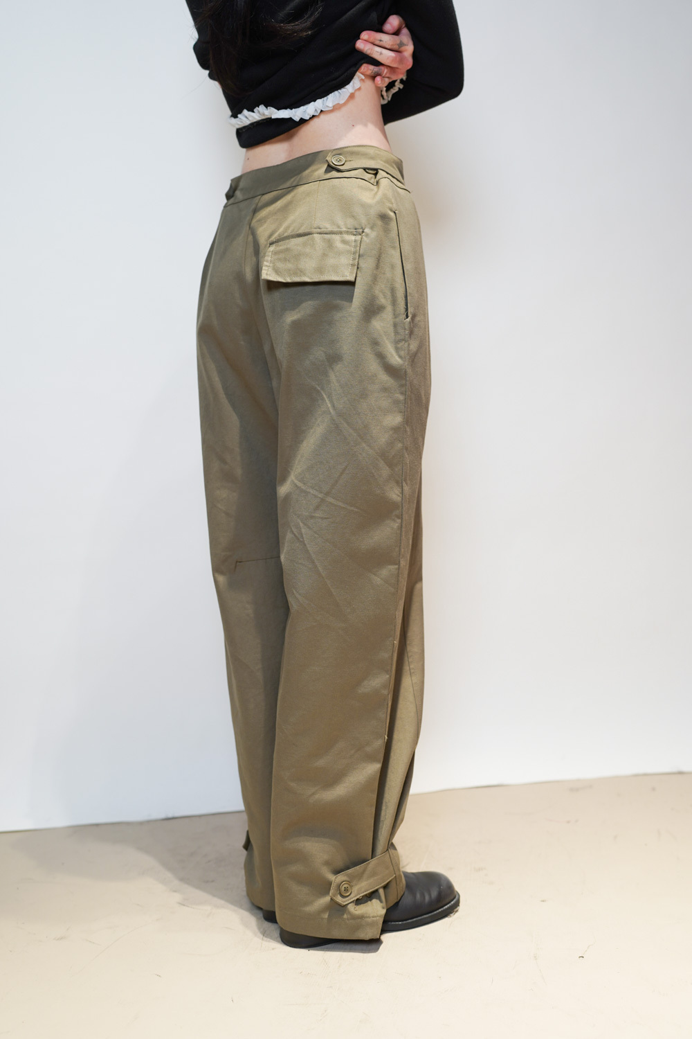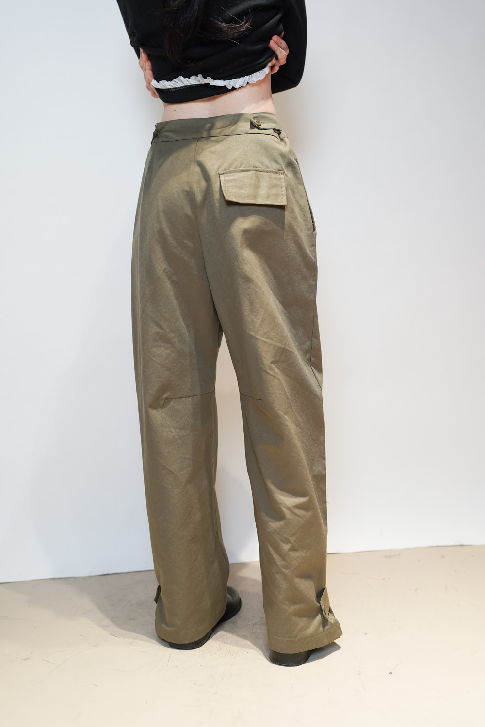 Side buttons slim carrot army pants (GREEN/ BLACK)-Free size