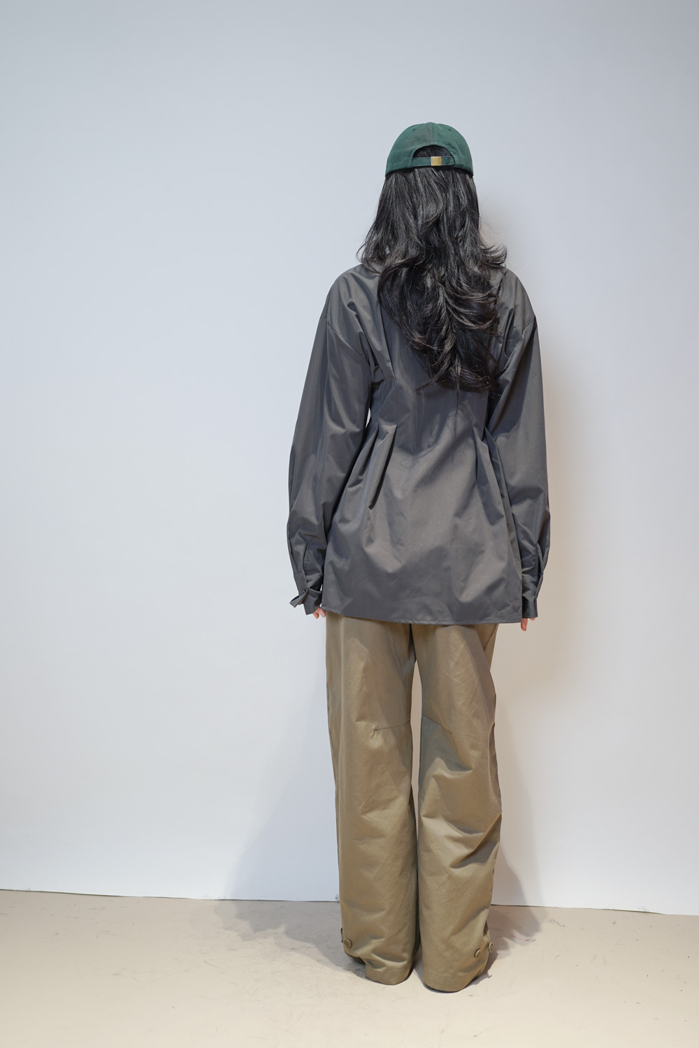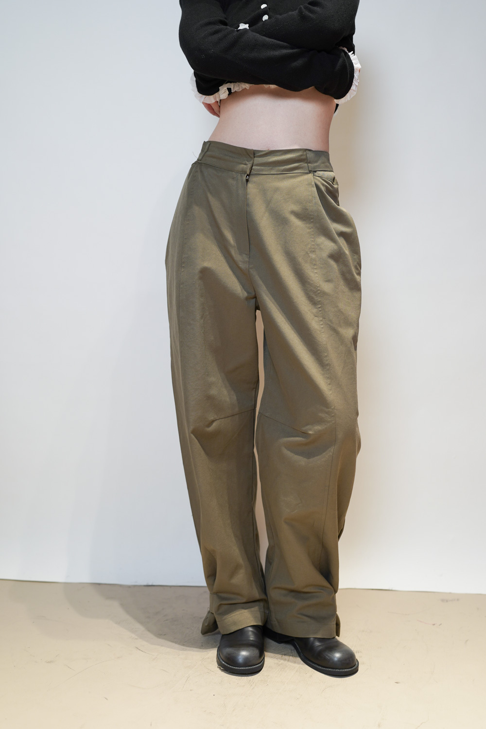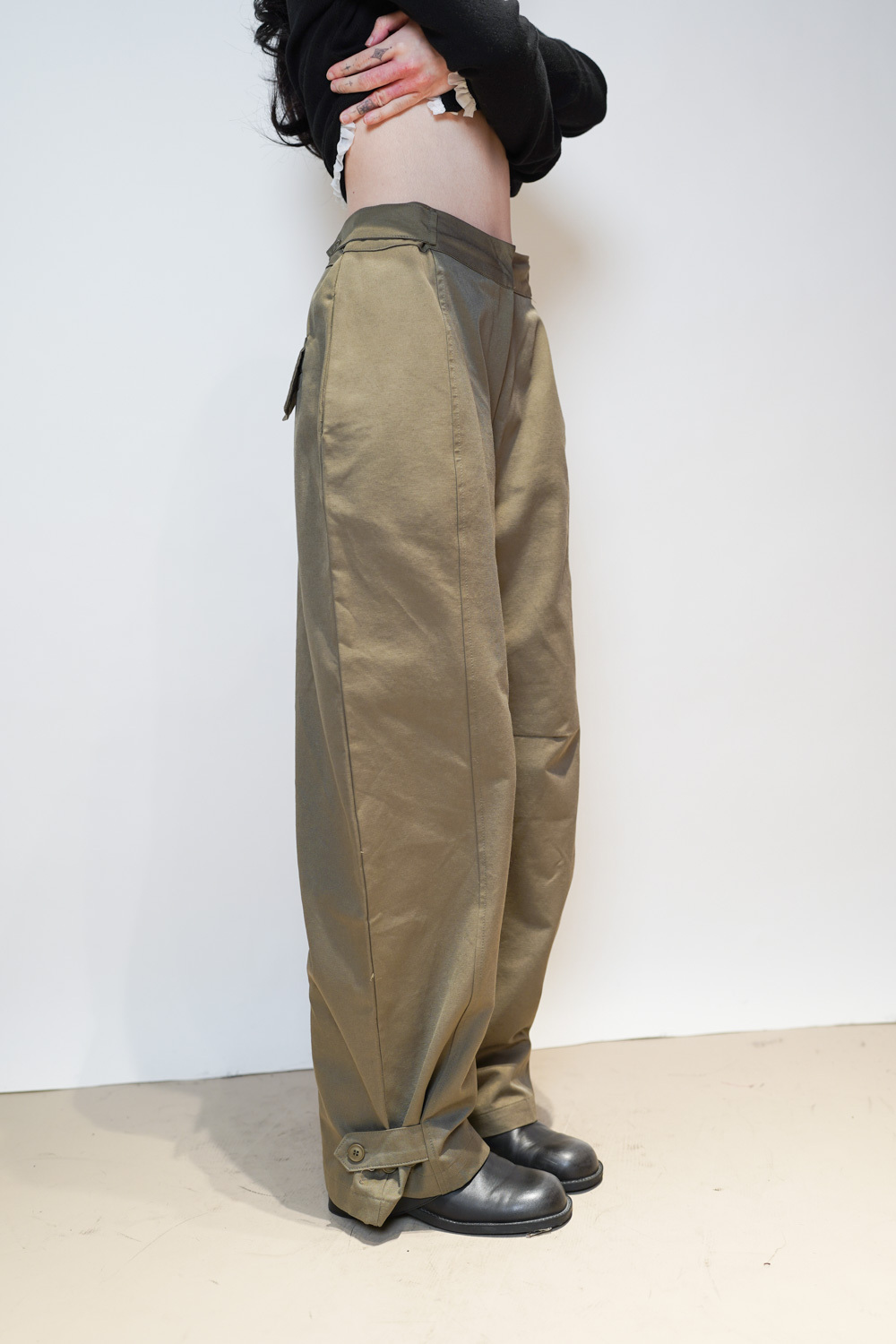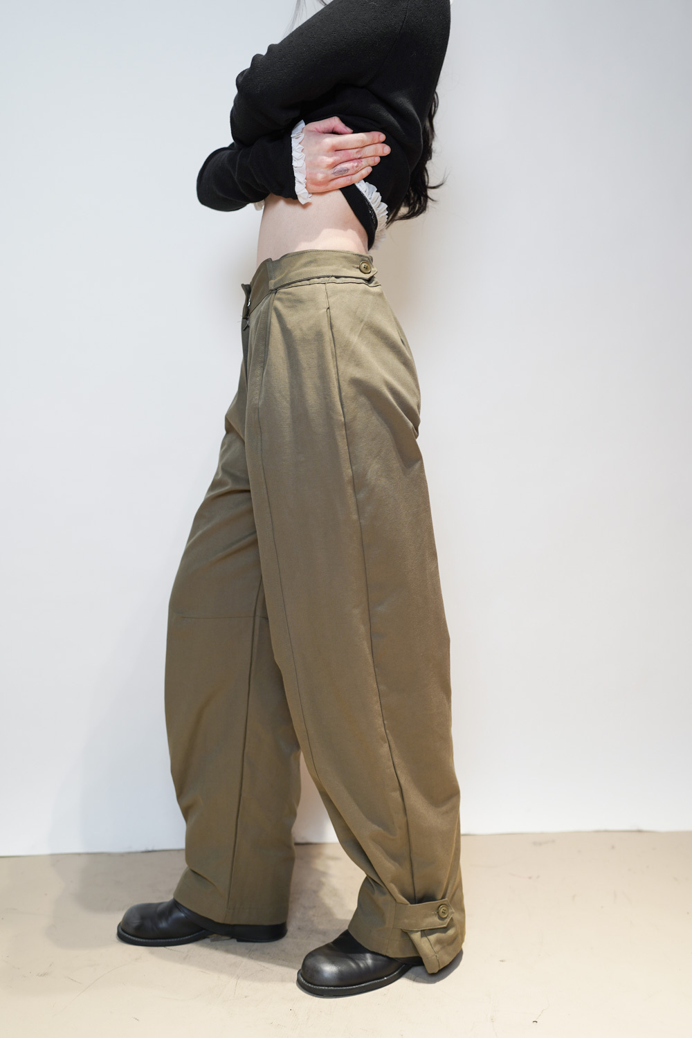 Side buttons slim carrot army pants (GREEN/ BLACK)-Free size
