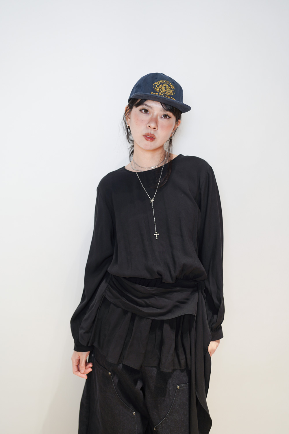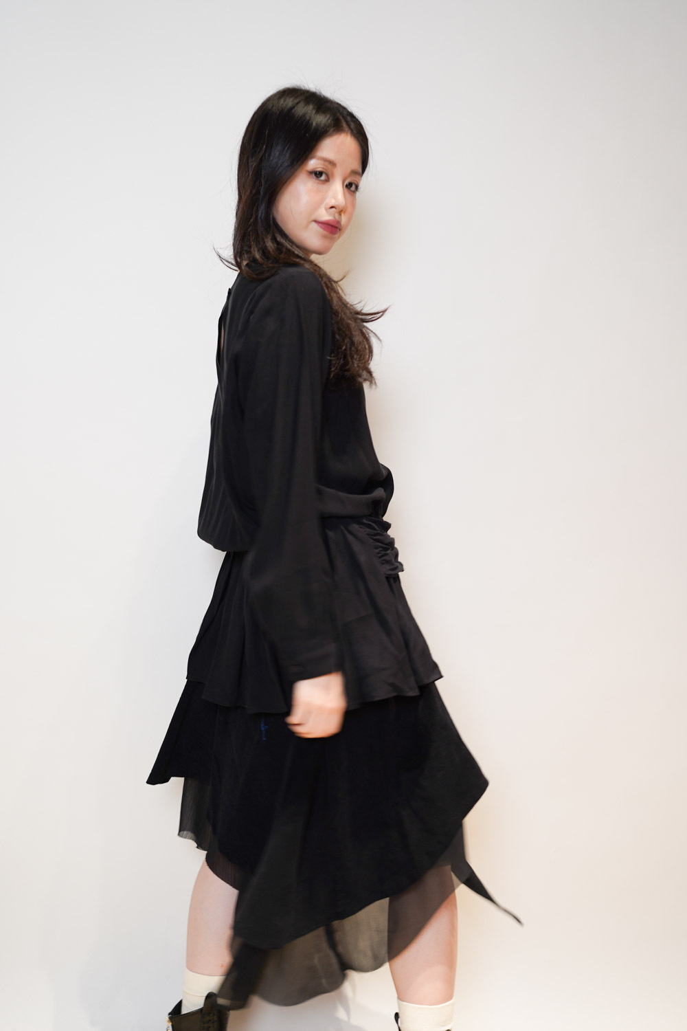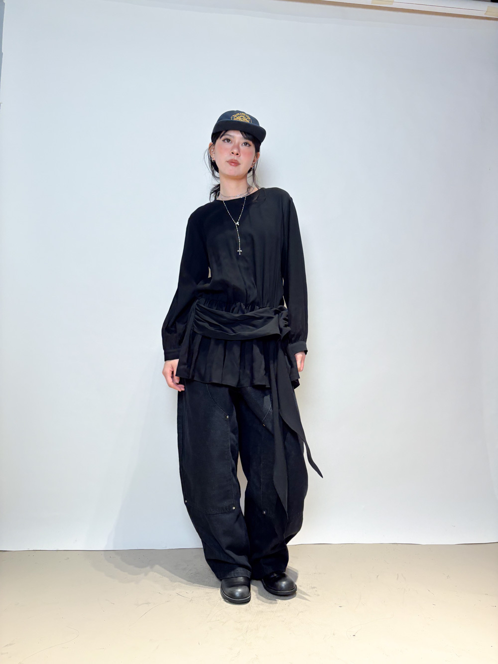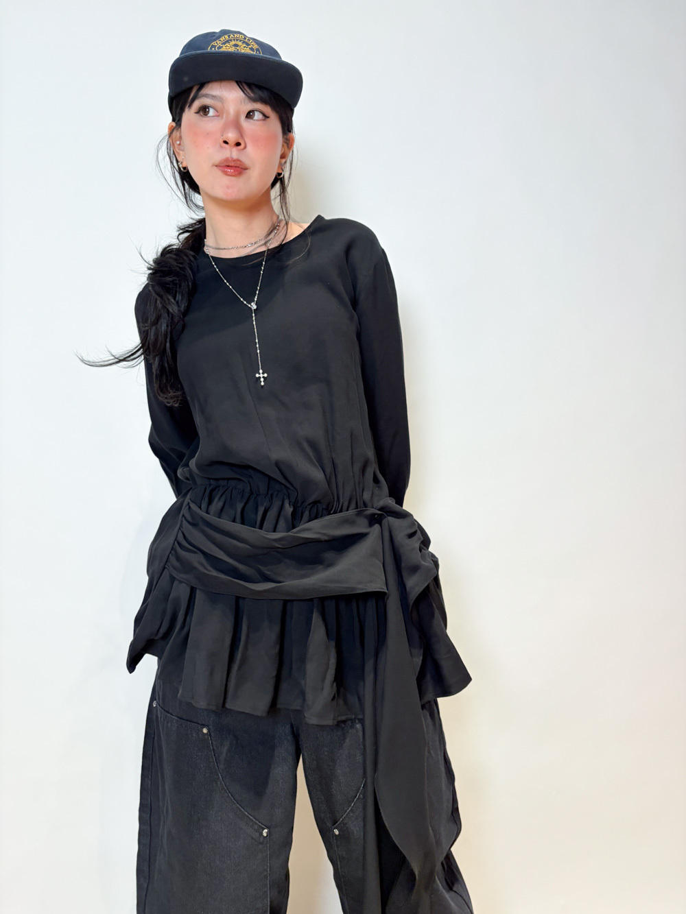 腰間皺折設計 小腹前增設布料 修飾小腹及盆骨線條/
