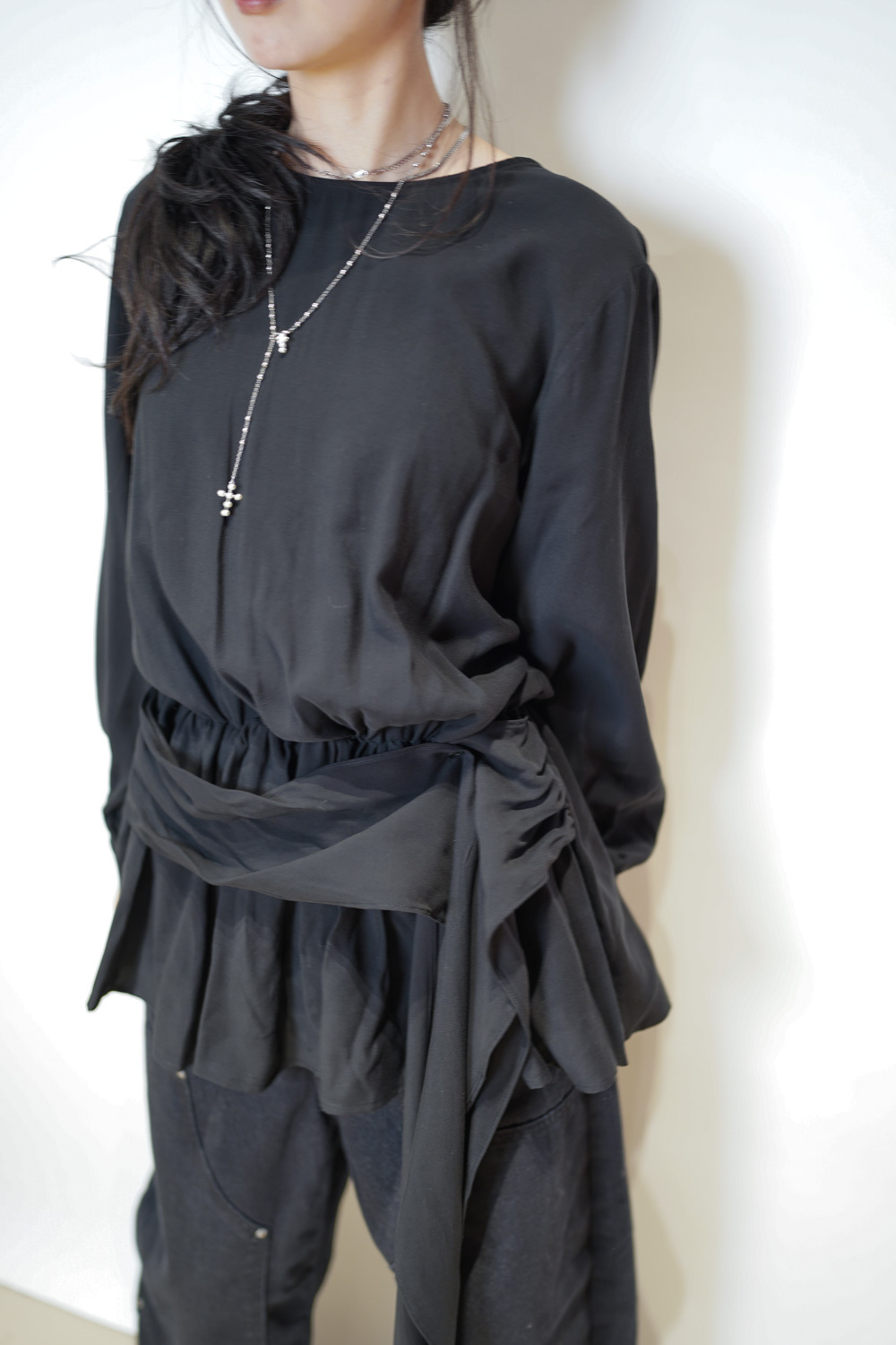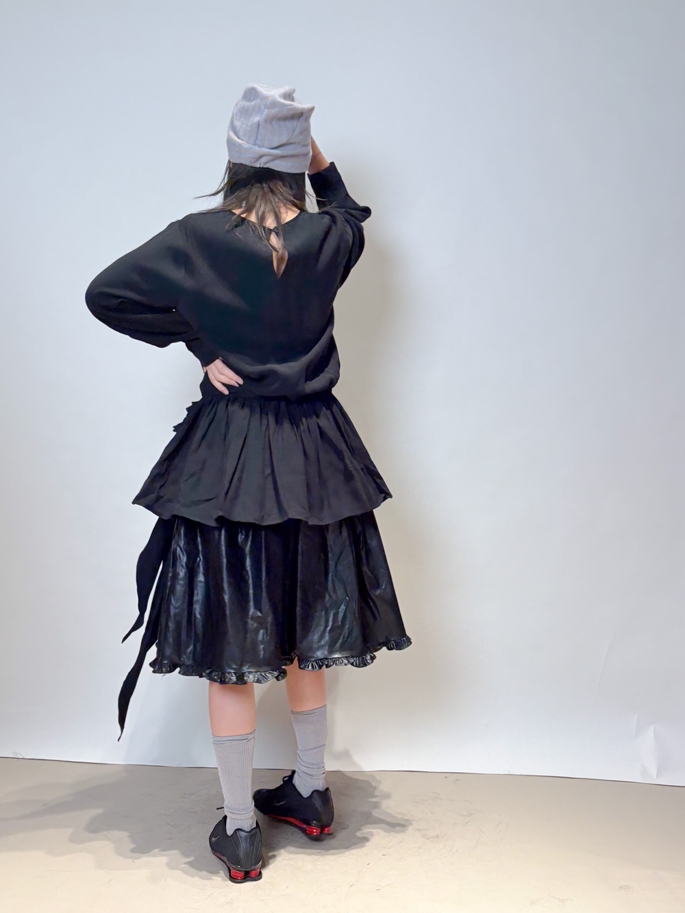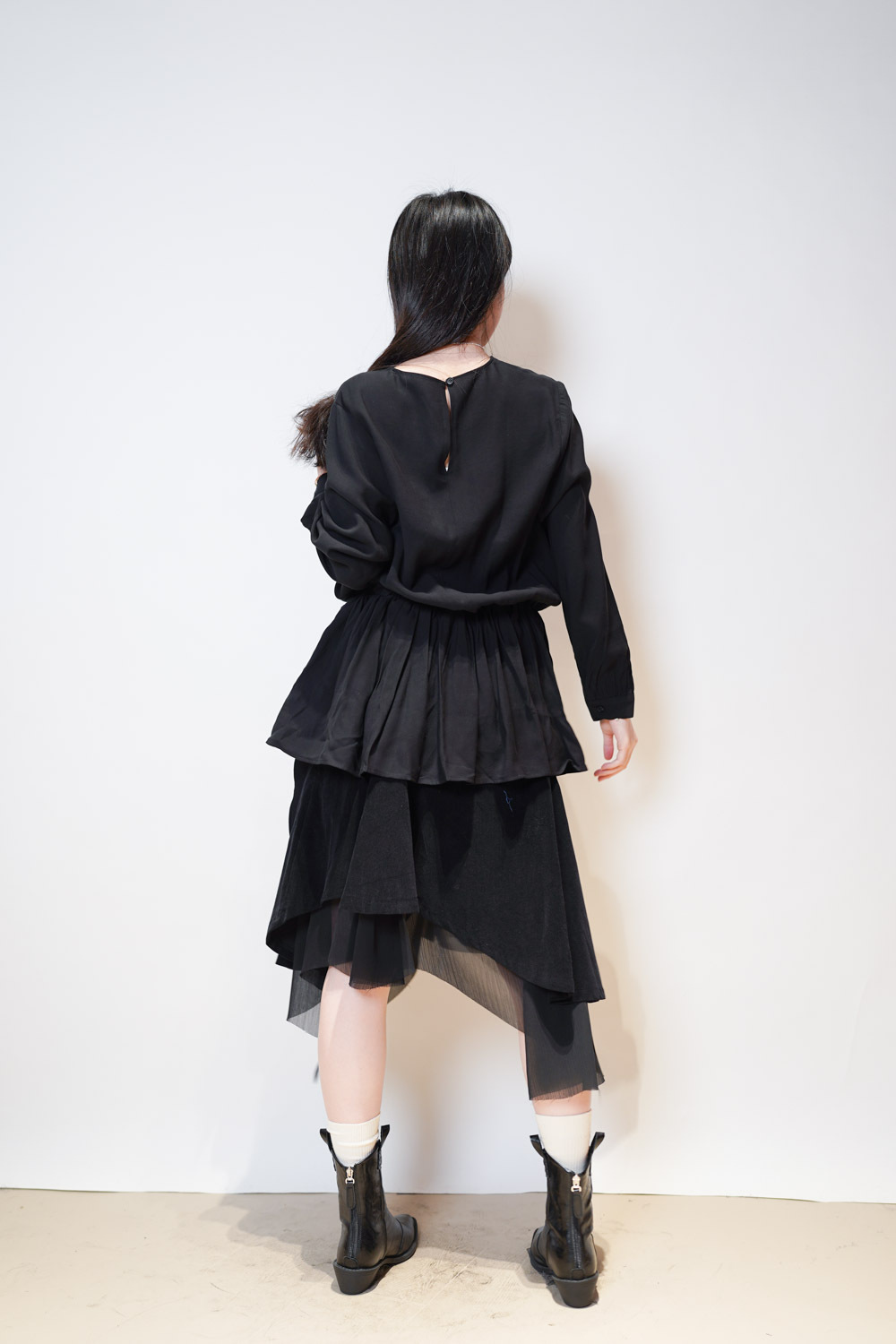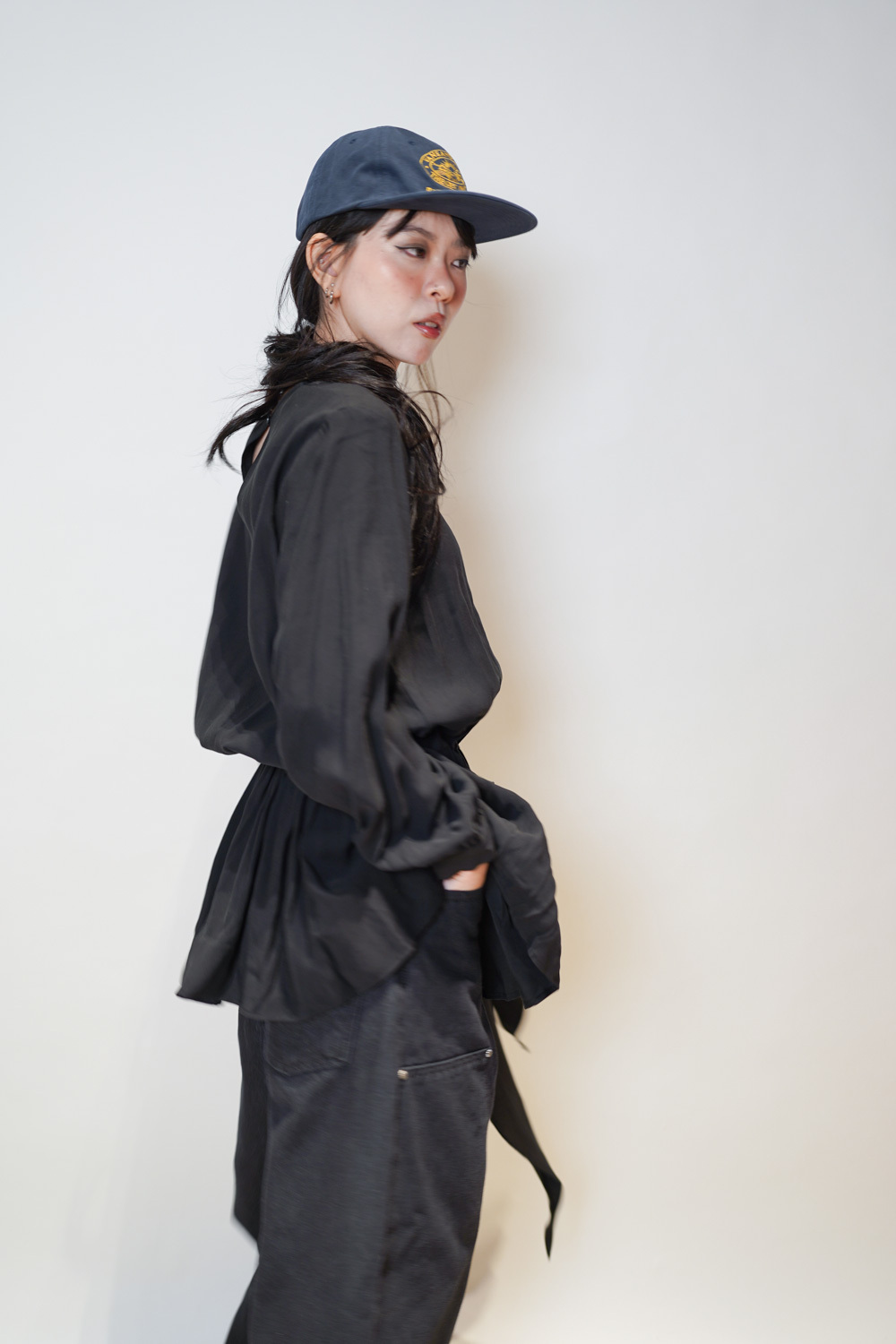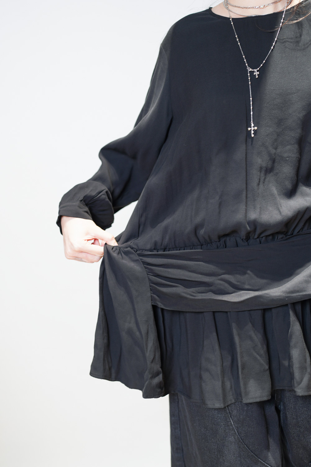 腰間皺折設計 小腹前增設布料 修飾小腹及盆骨線條/