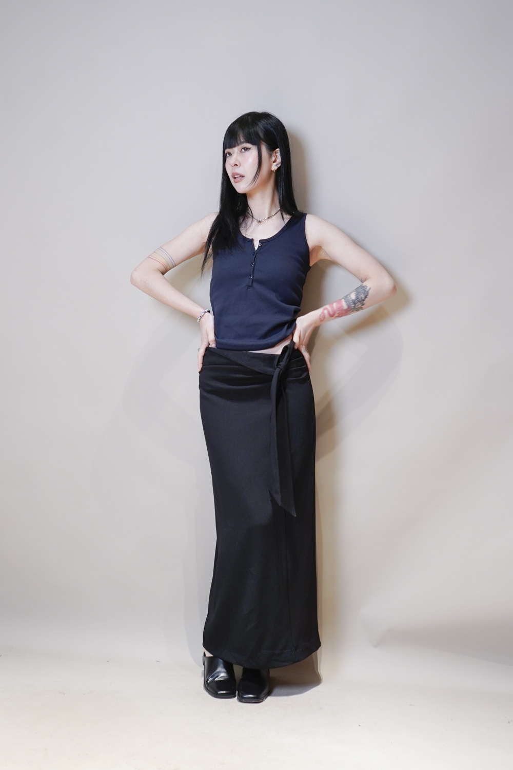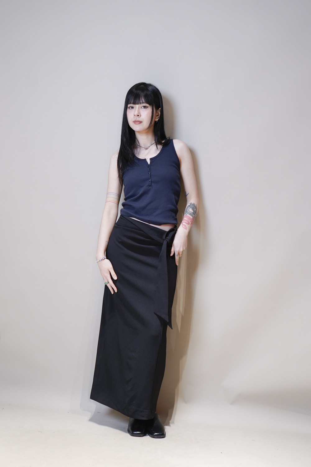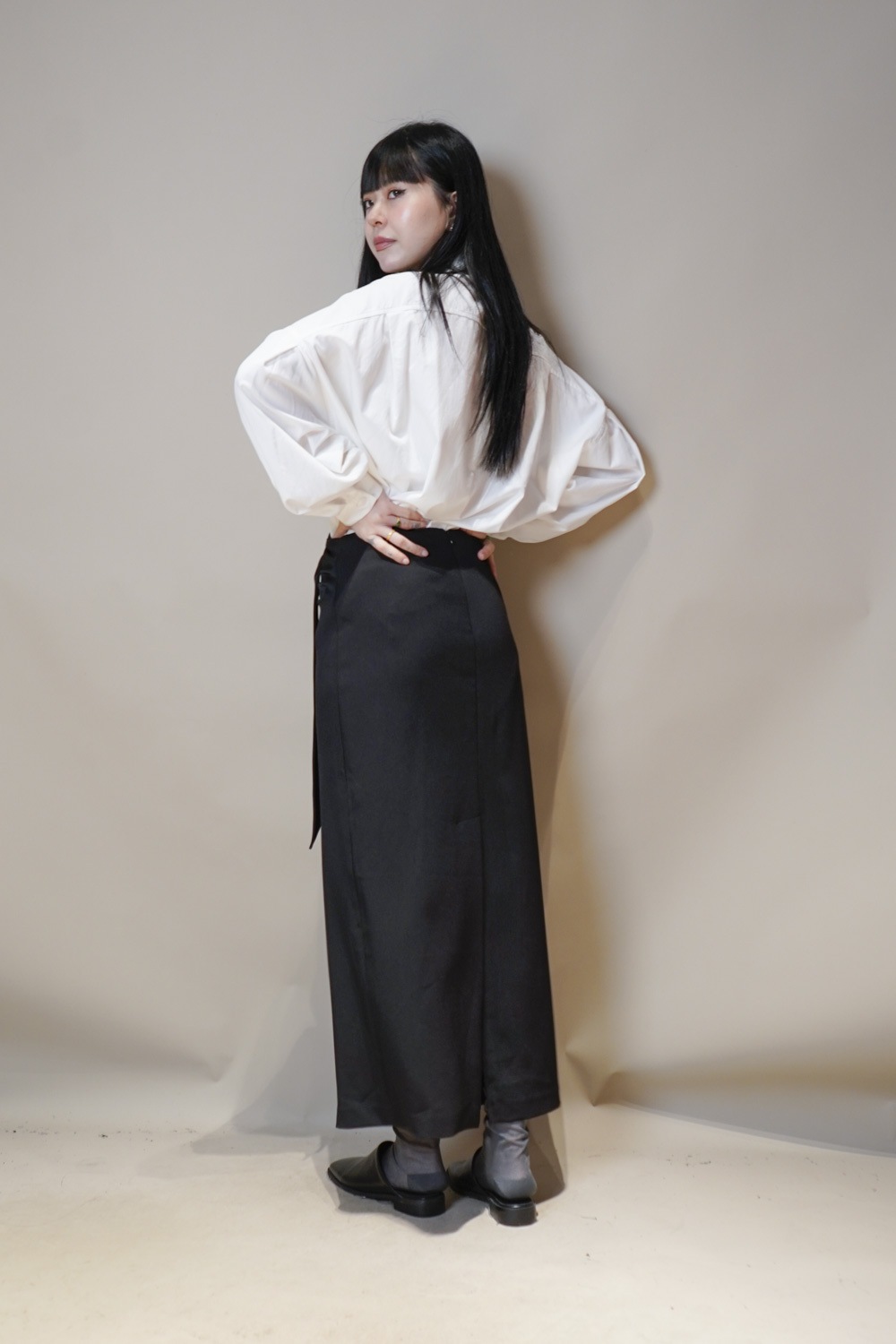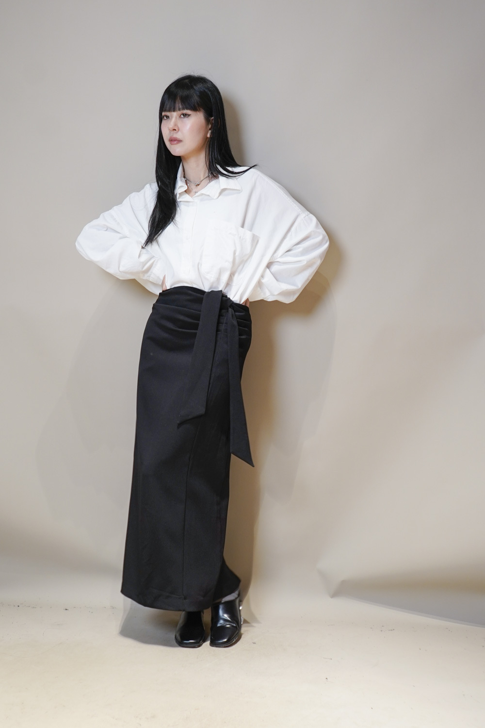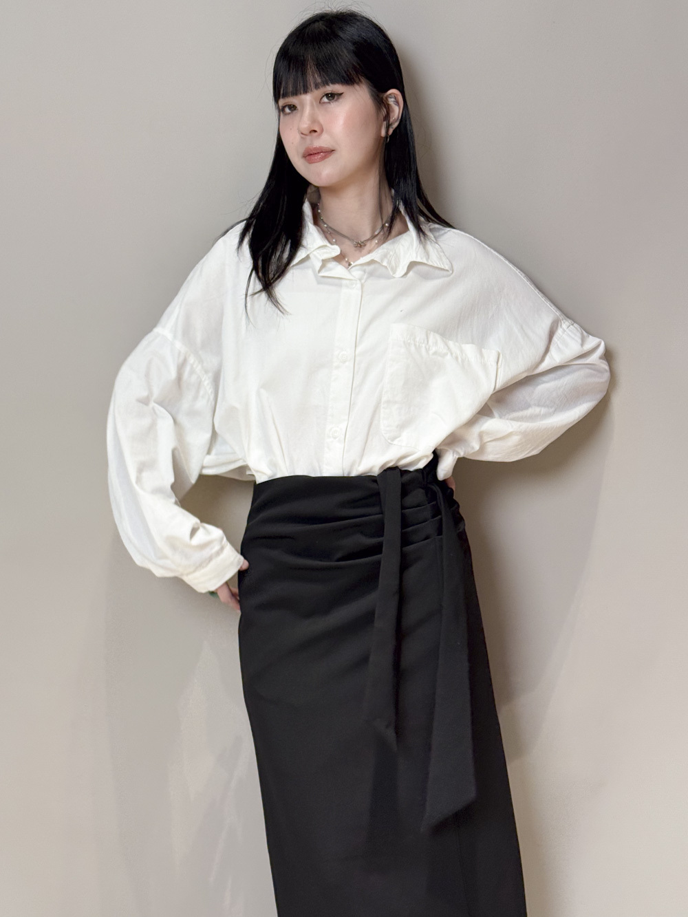 Side Wrapping Pencil Skirt (BEIGE/ BLACK) - S/M