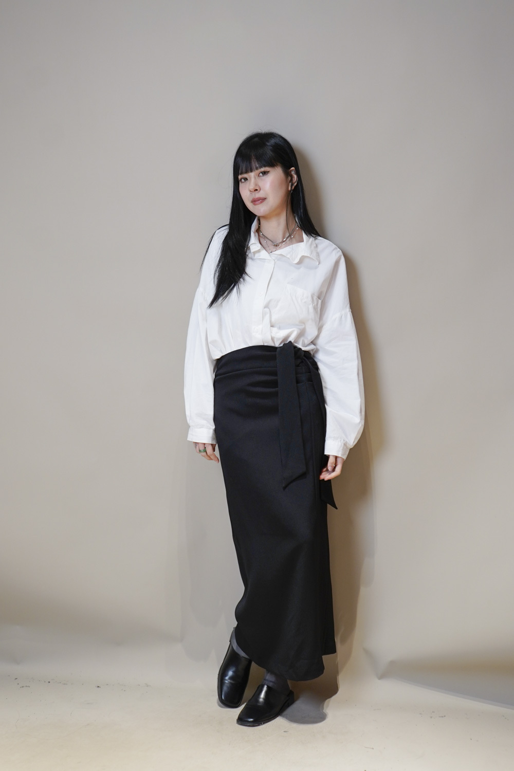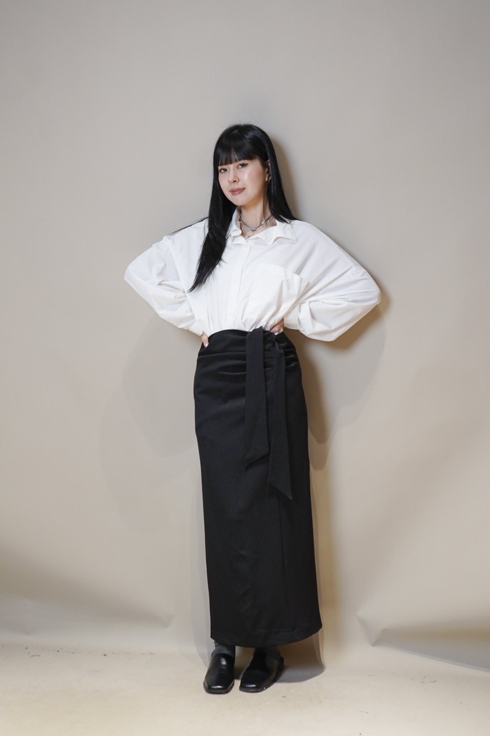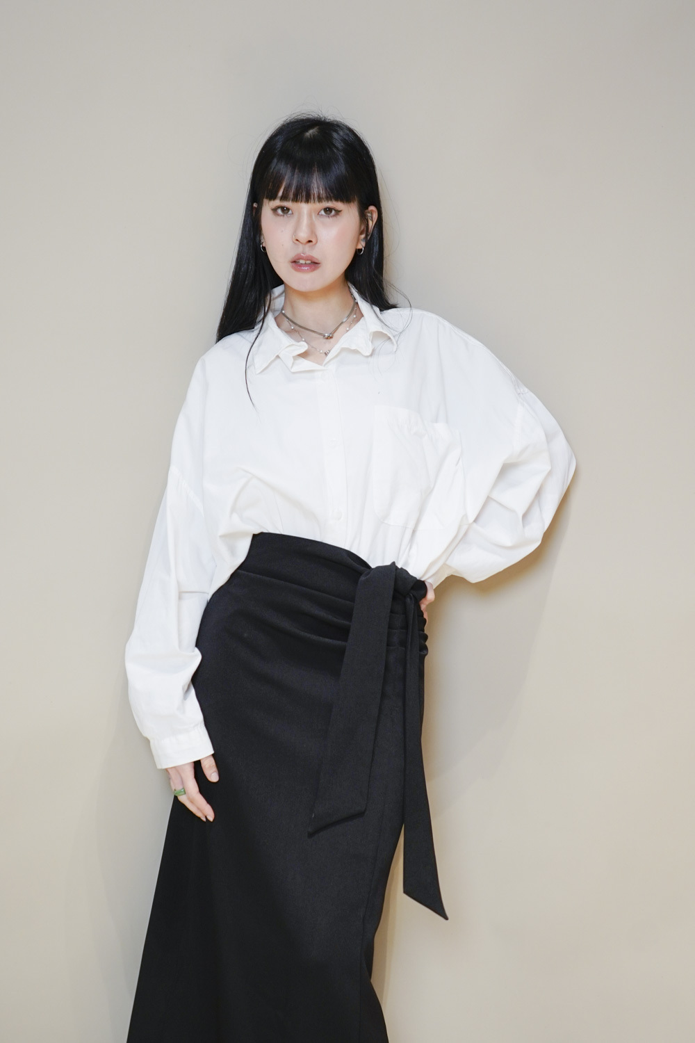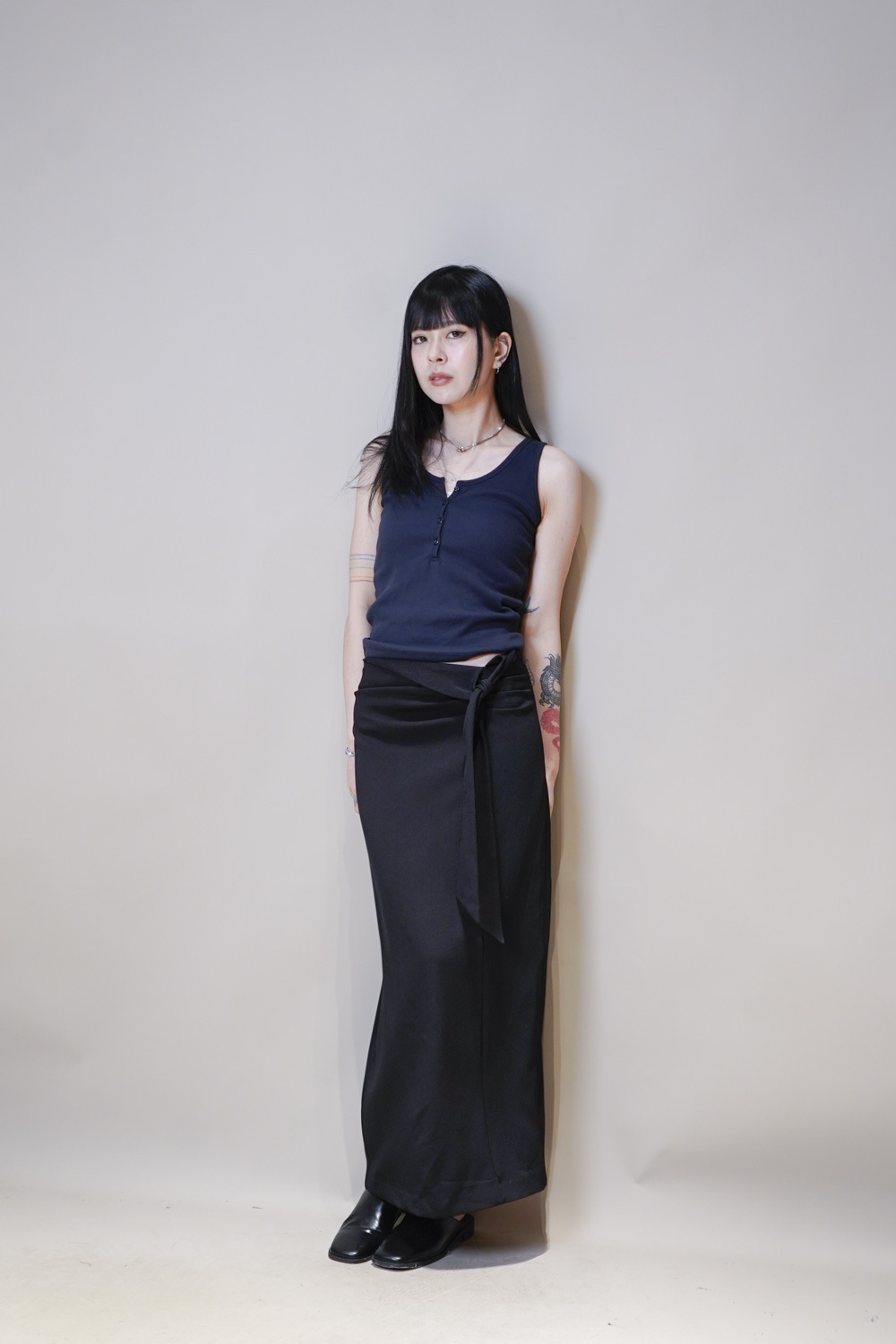 Side Wrapping Pencil Skirt (BEIGE/ BLACK) - S/M