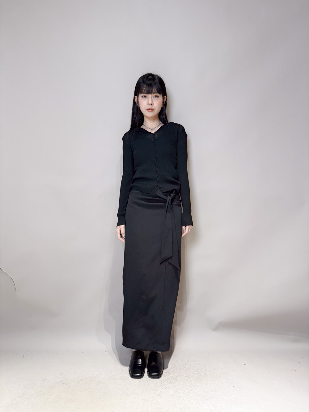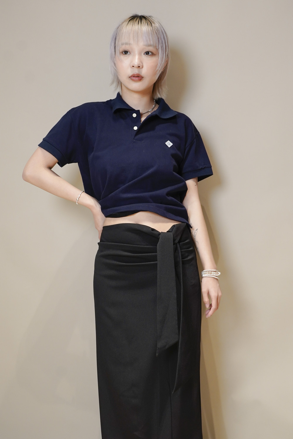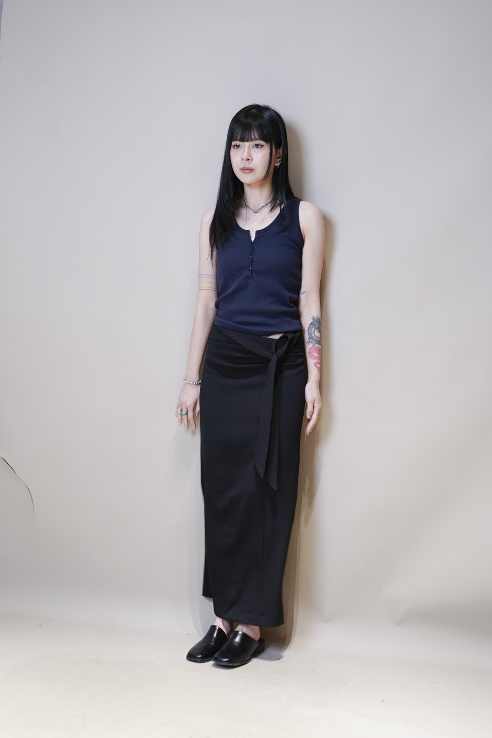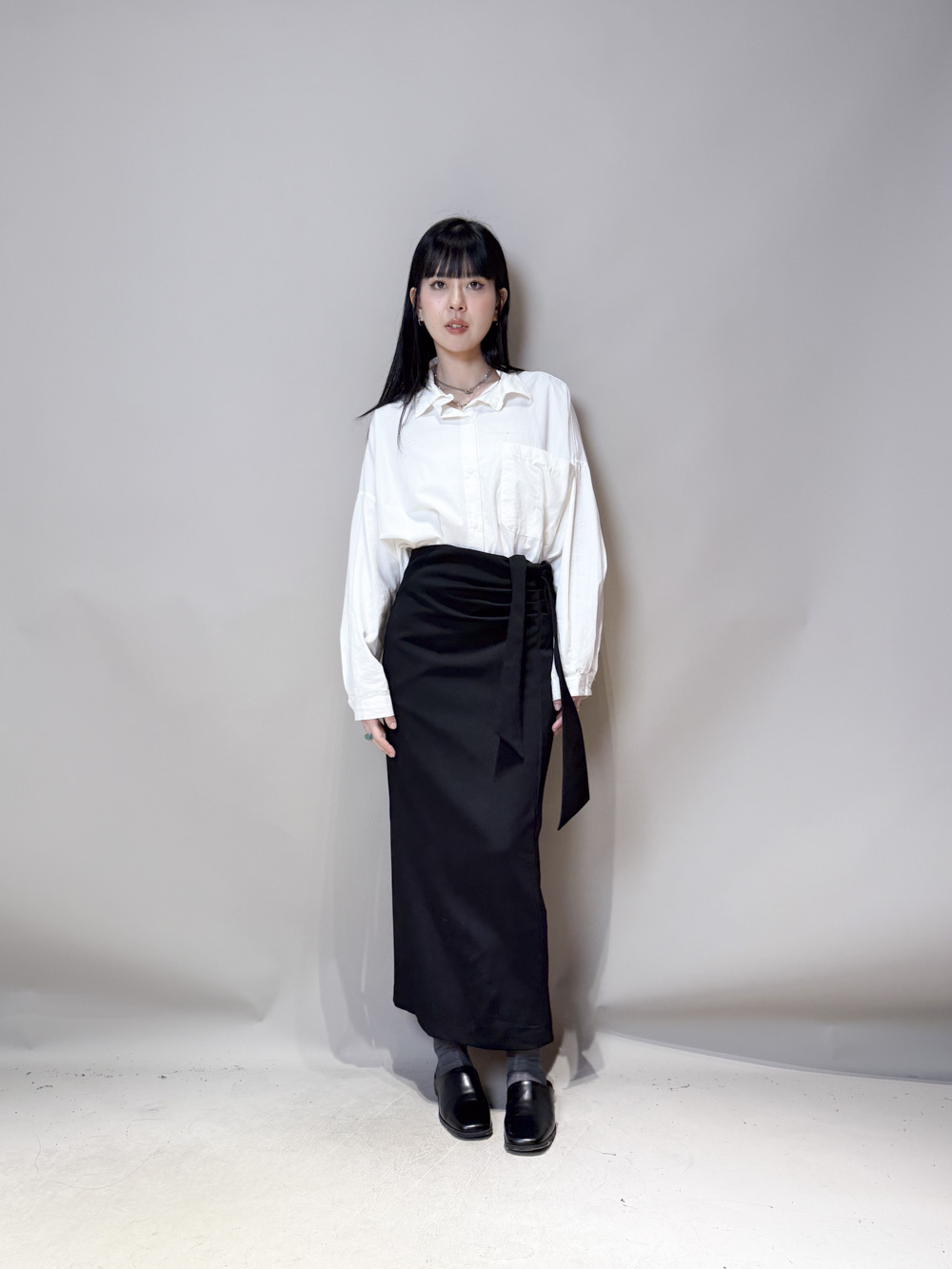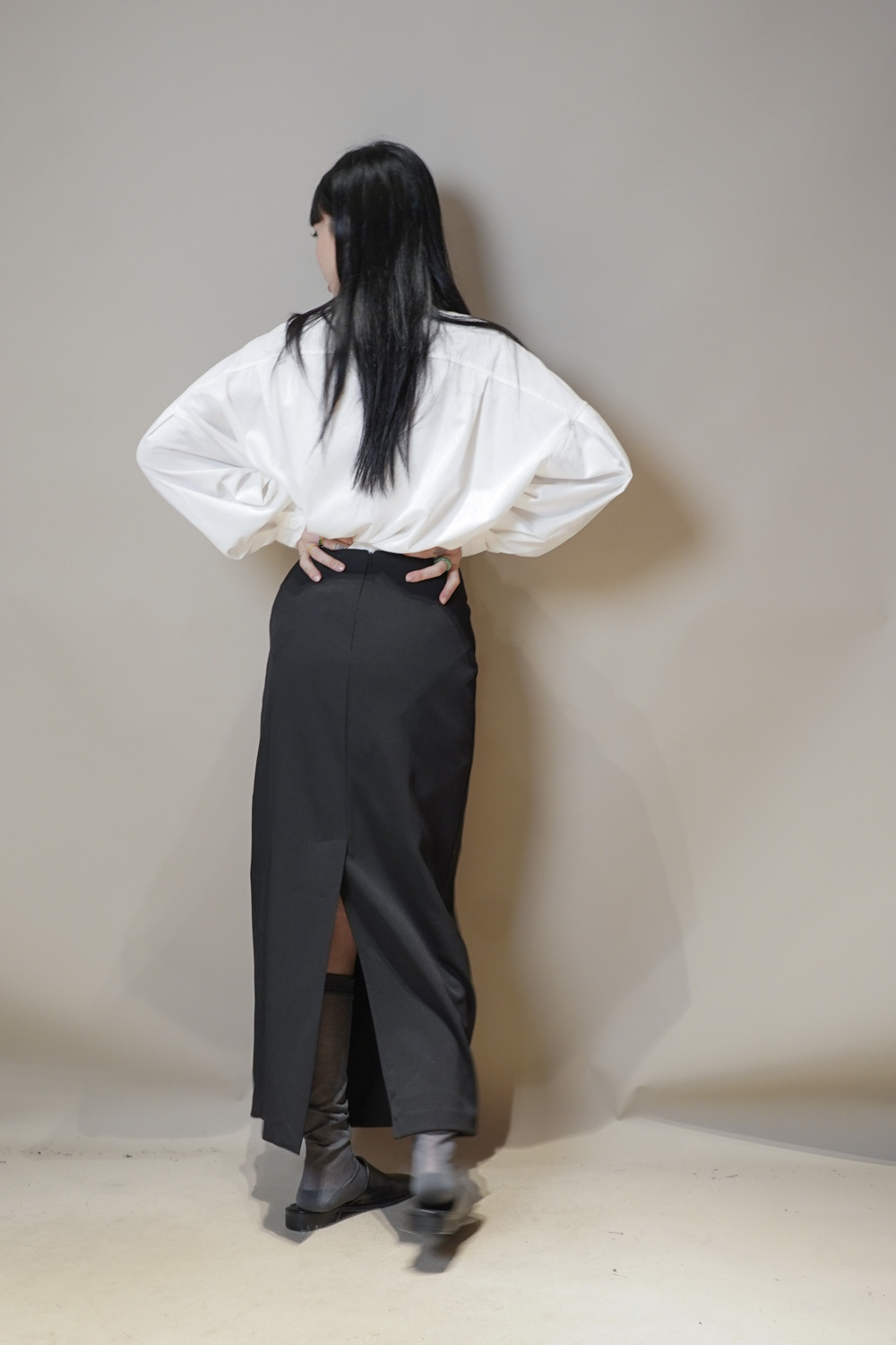 Side Wrapping Pencil Skirt (BEIGE/ BLACK) - S/M