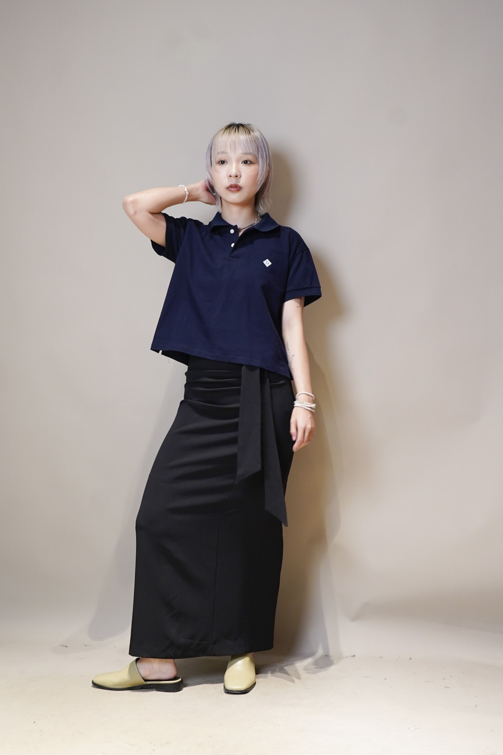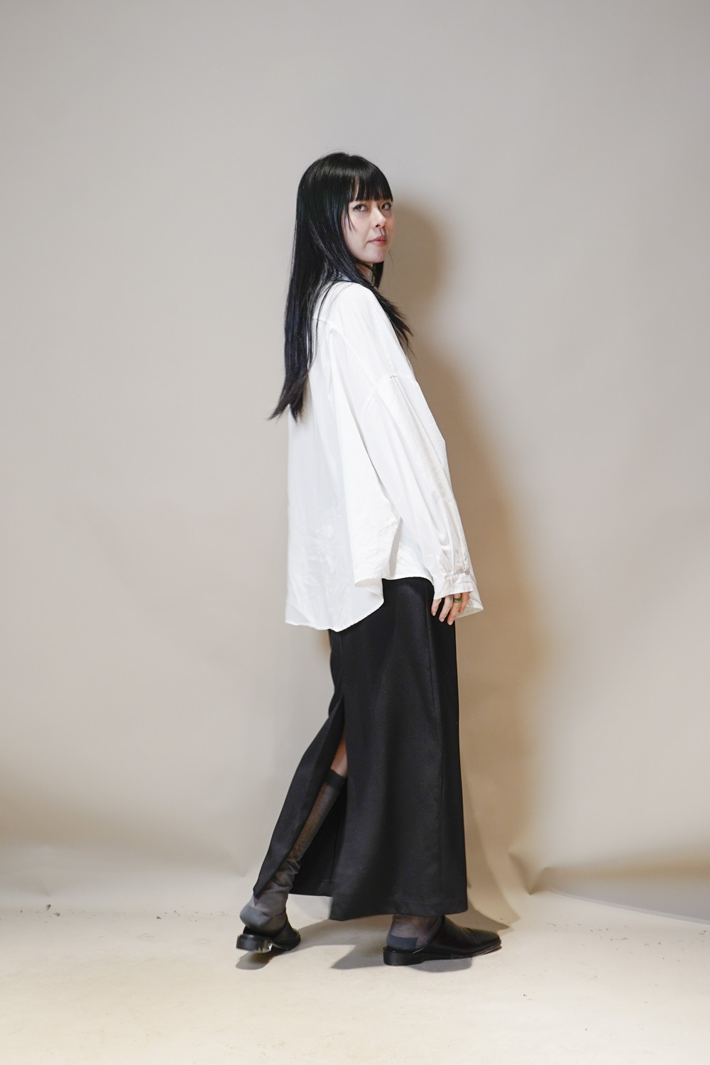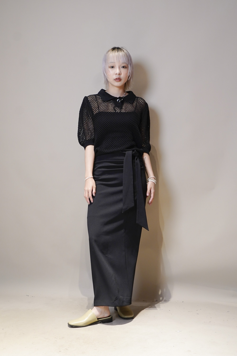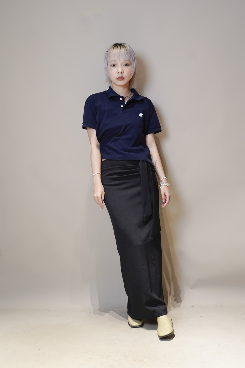 Side Wrapping Pencil Skirt (BEIGE/ BLACK) - S/M