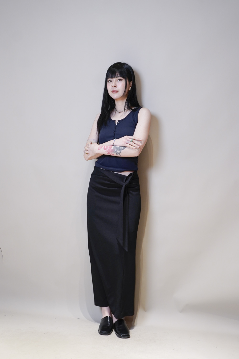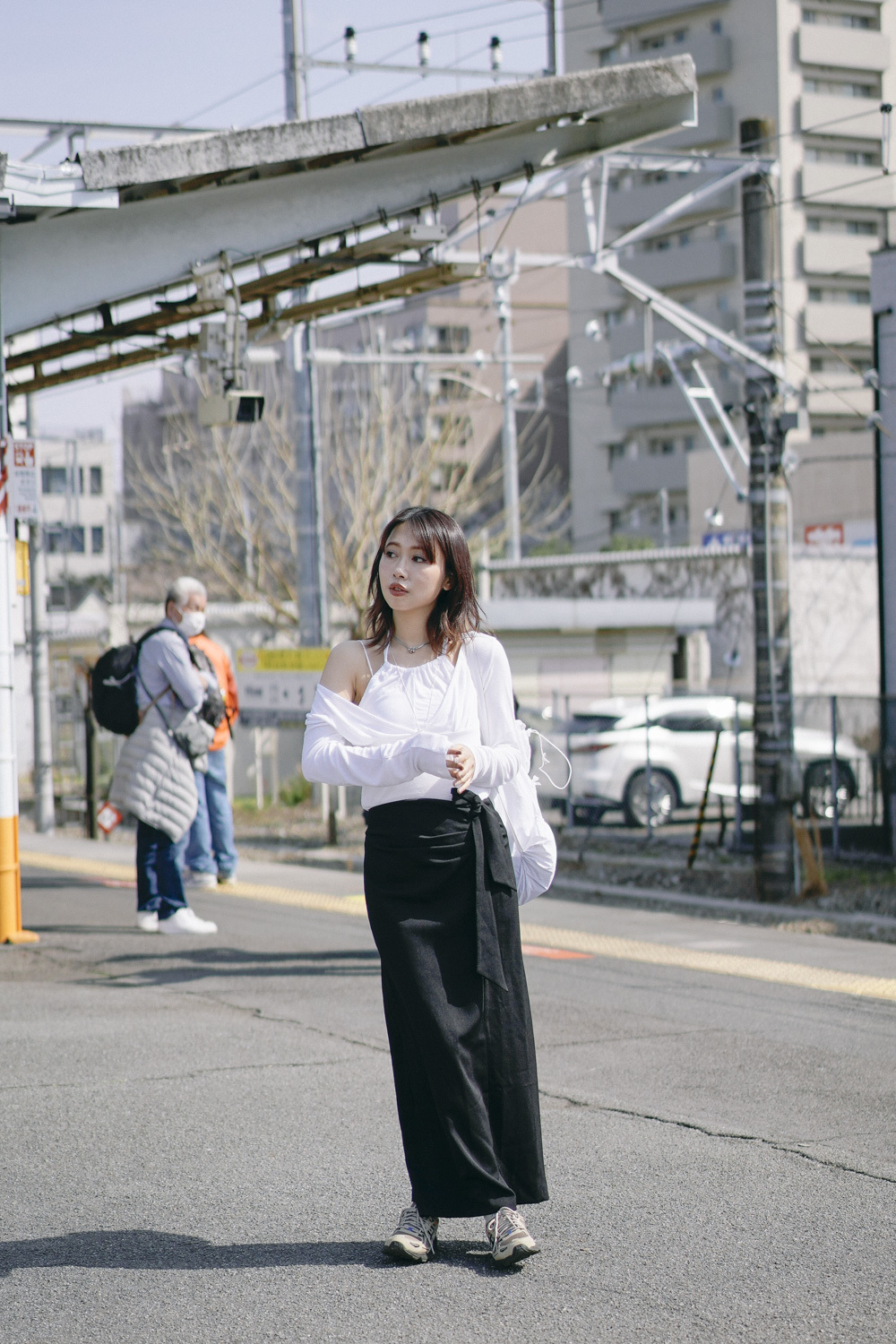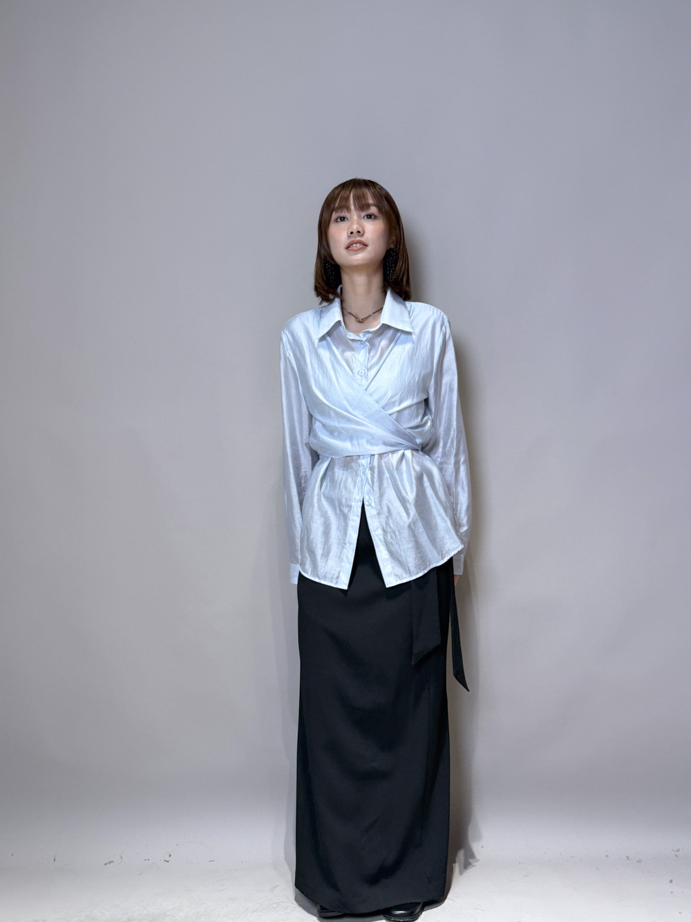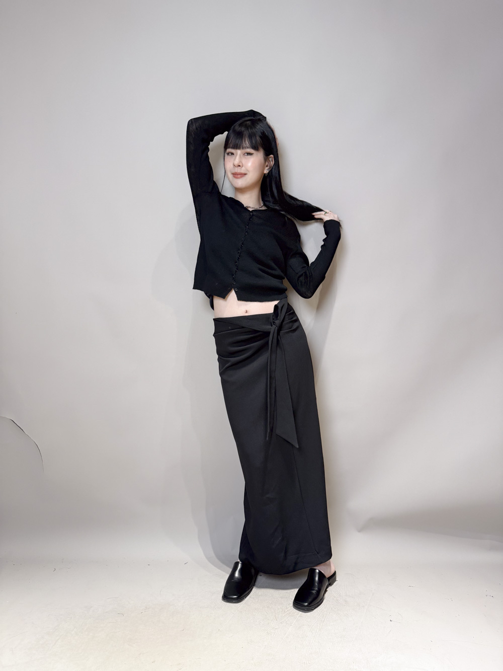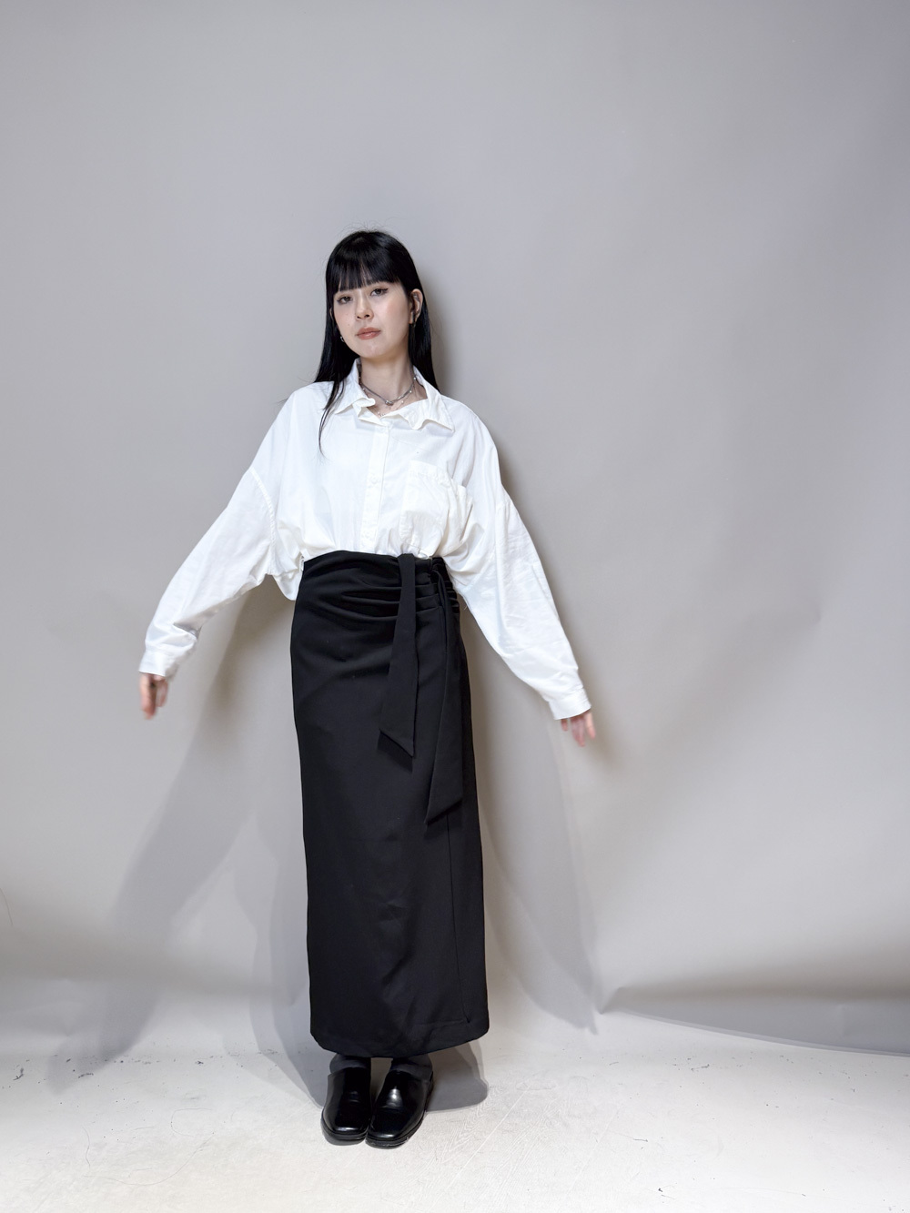 Side Wrapping Pencil Skirt (BEIGE/ BLACK) - S/M