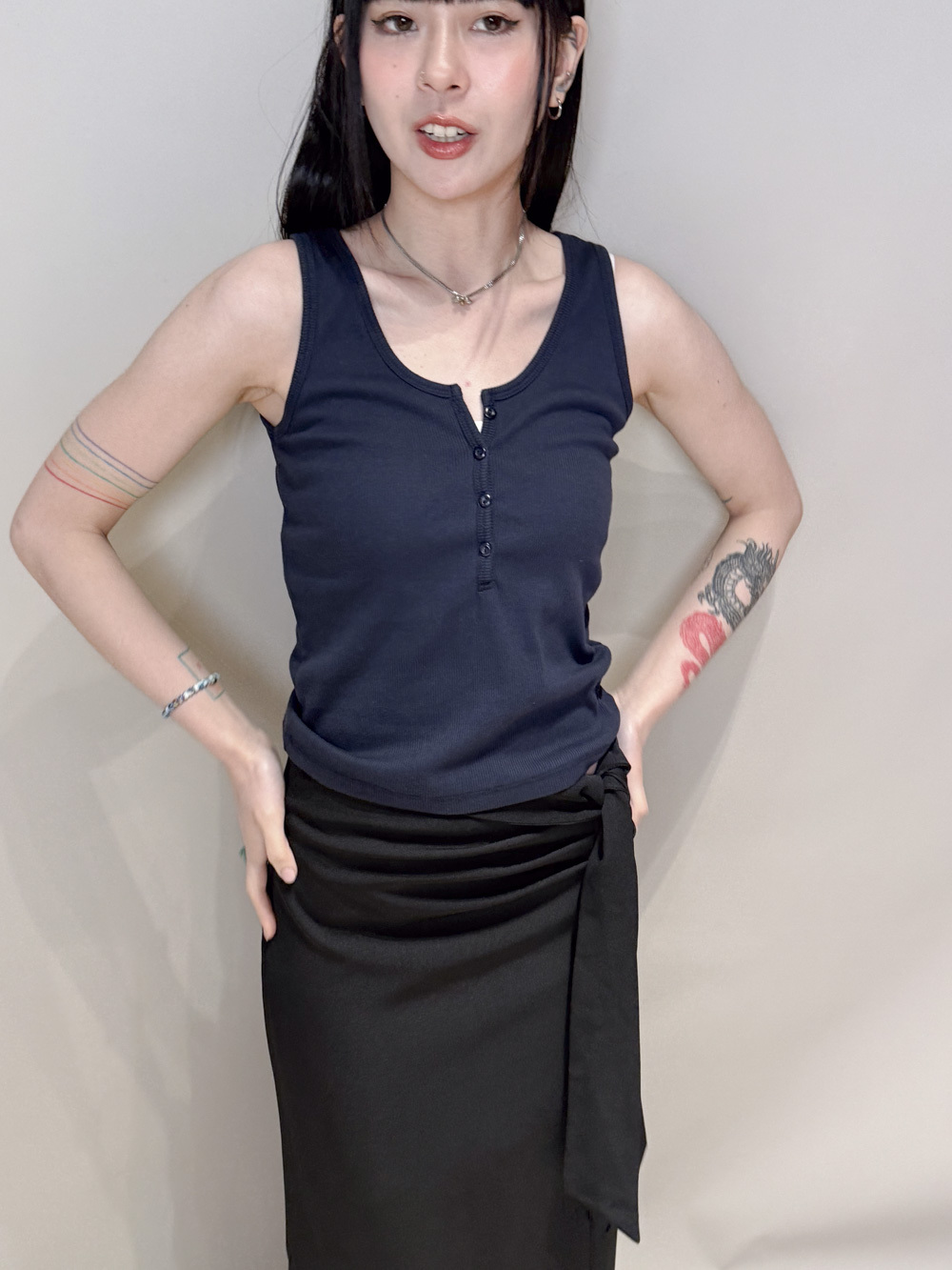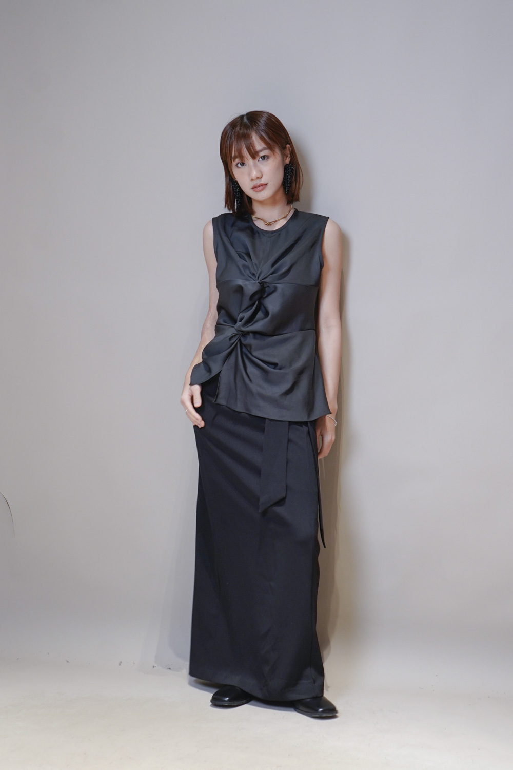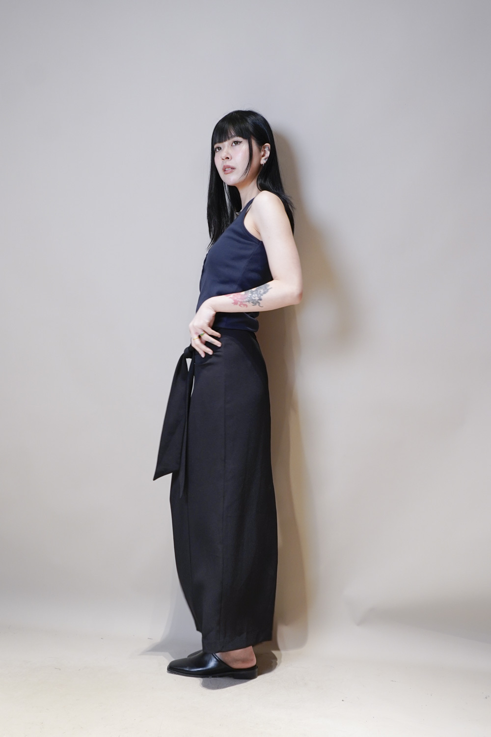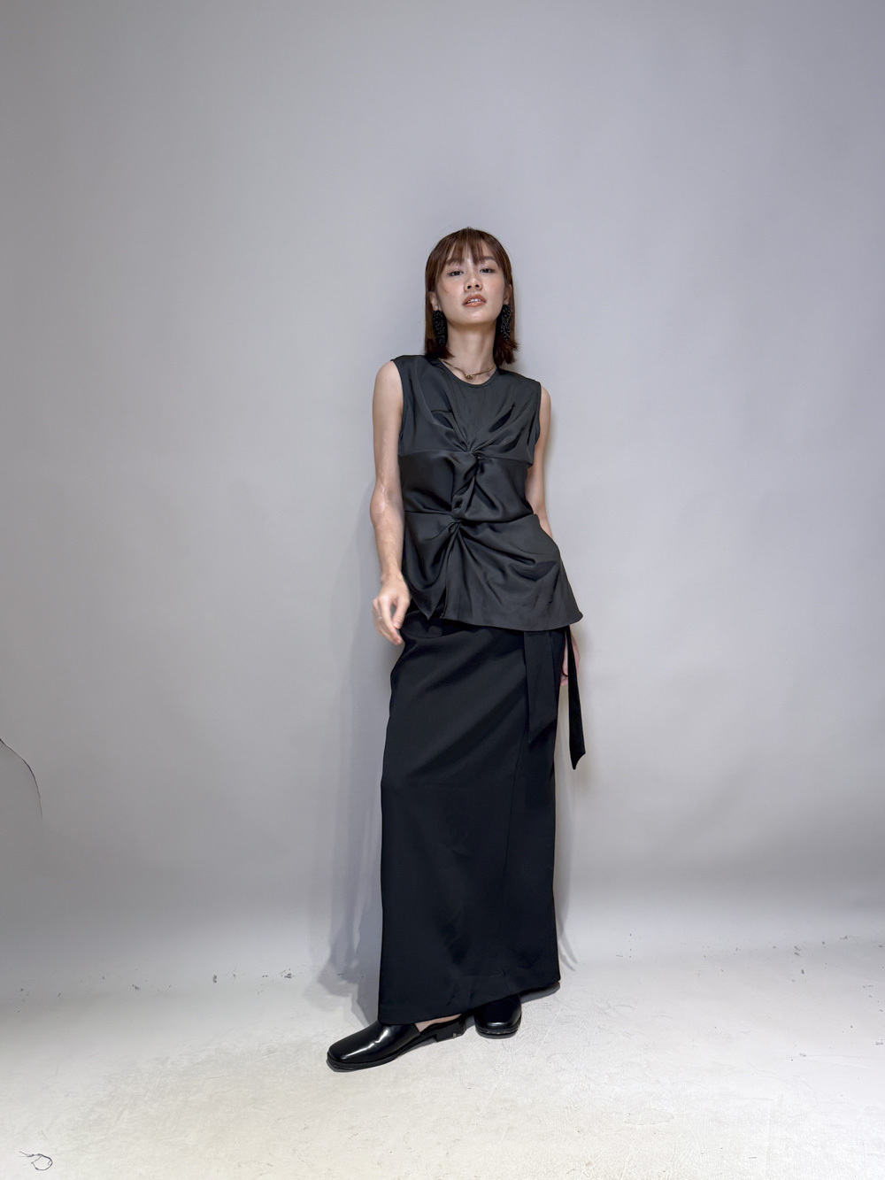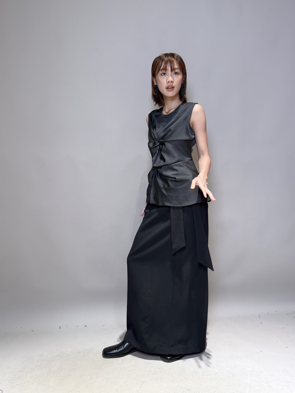 一邊腰摺設計/ 修飾小腹/低調設計感/