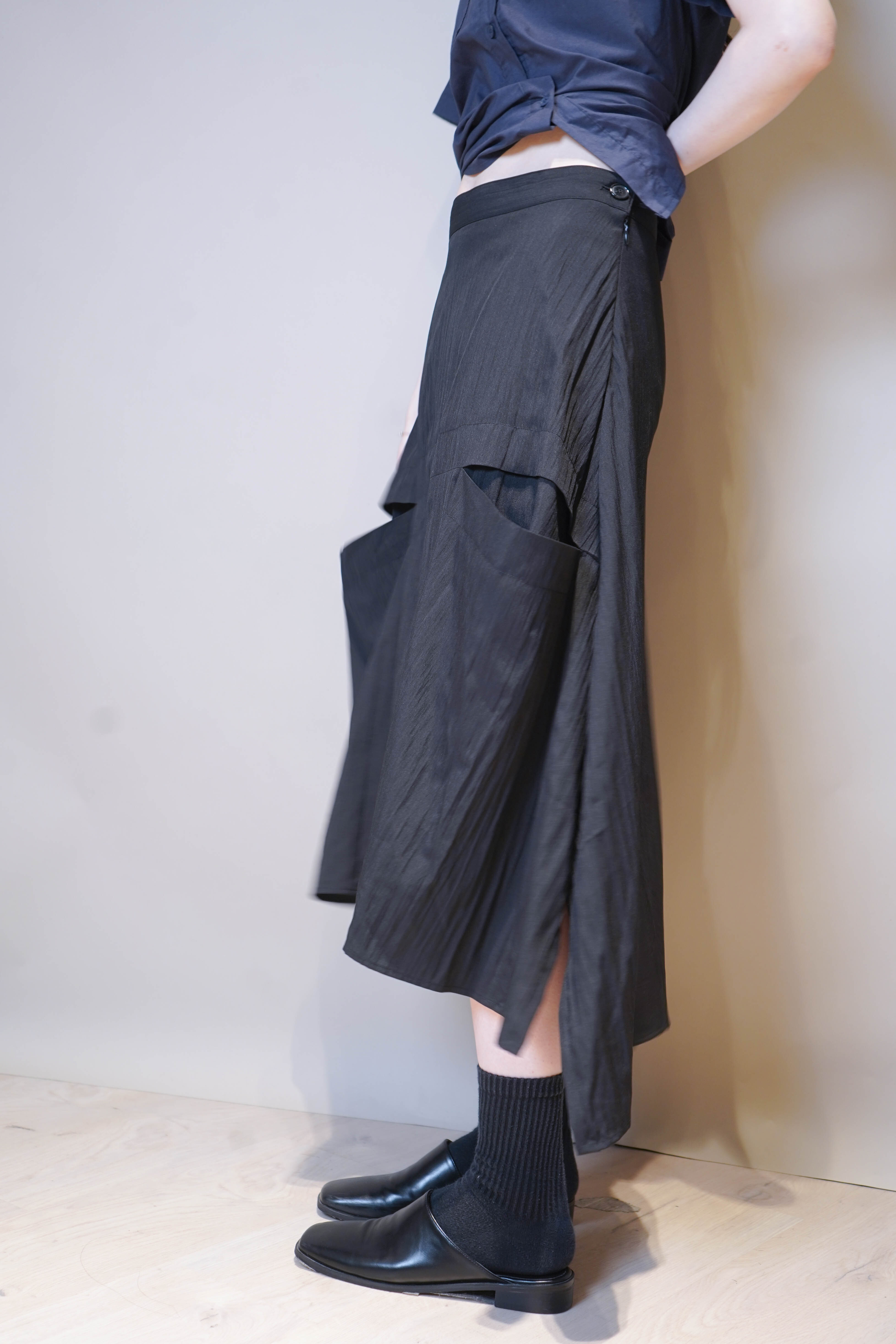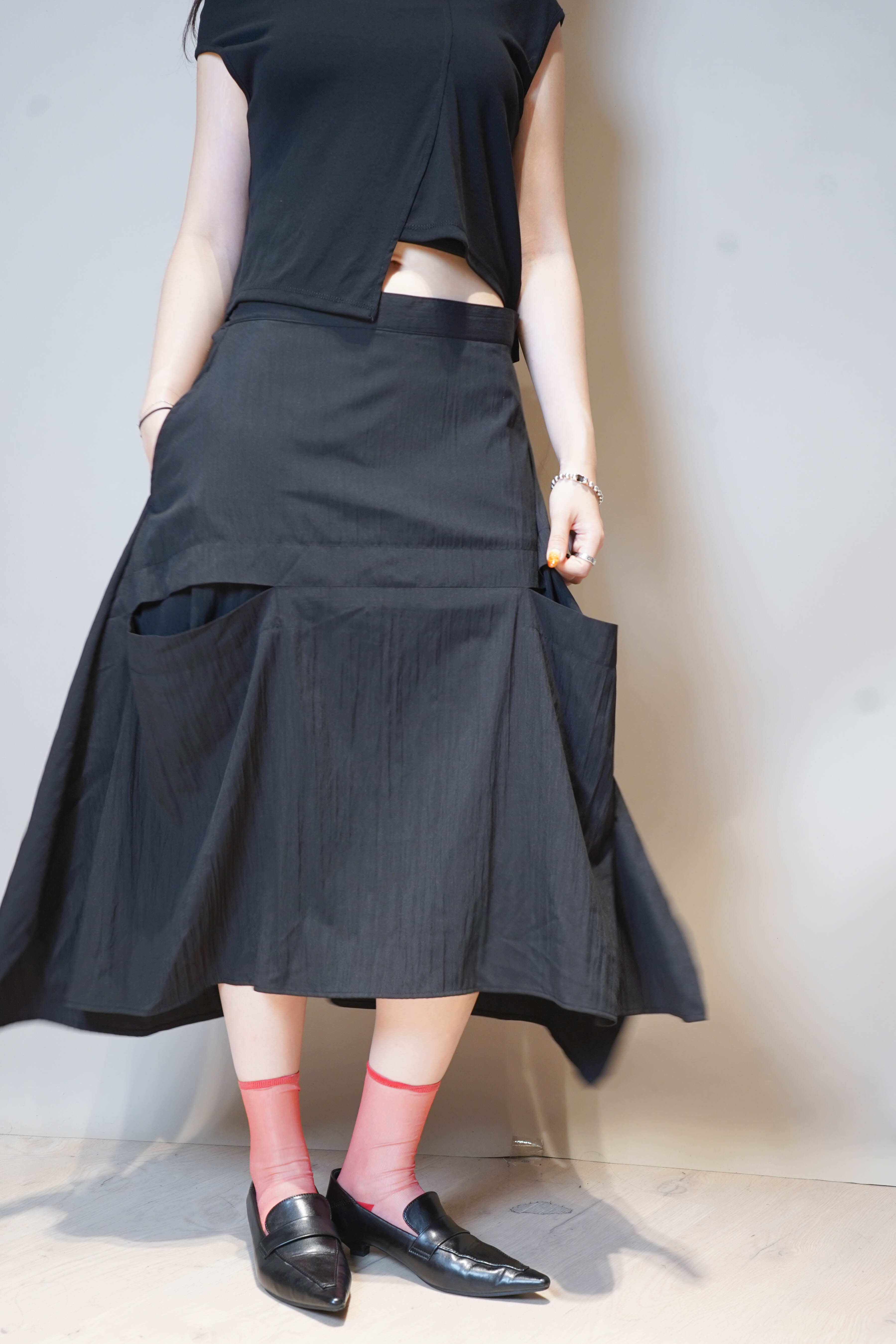 腰線:free / 彈性:低 / 透膚程度:不透 / 內里:有 / 口袋:有