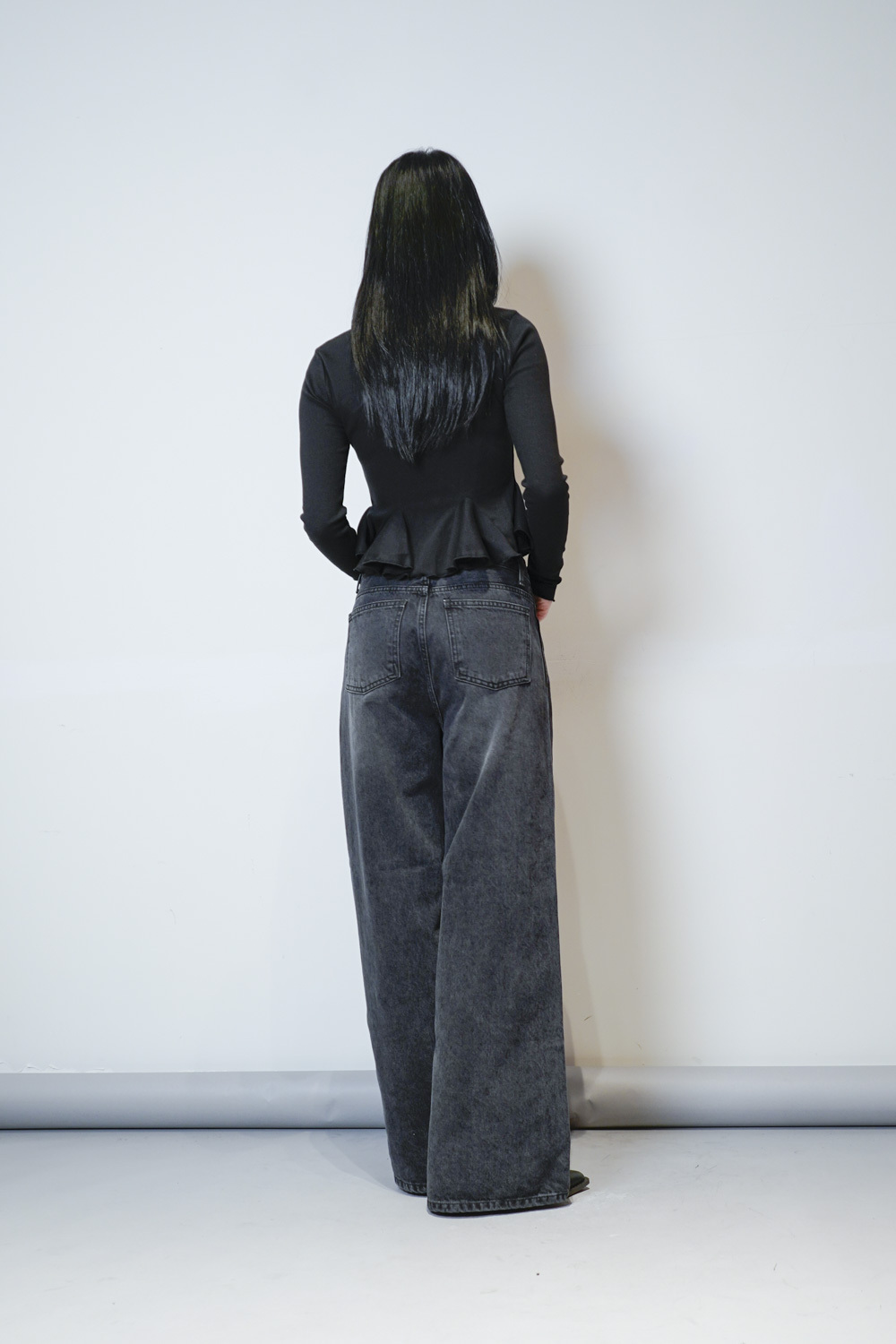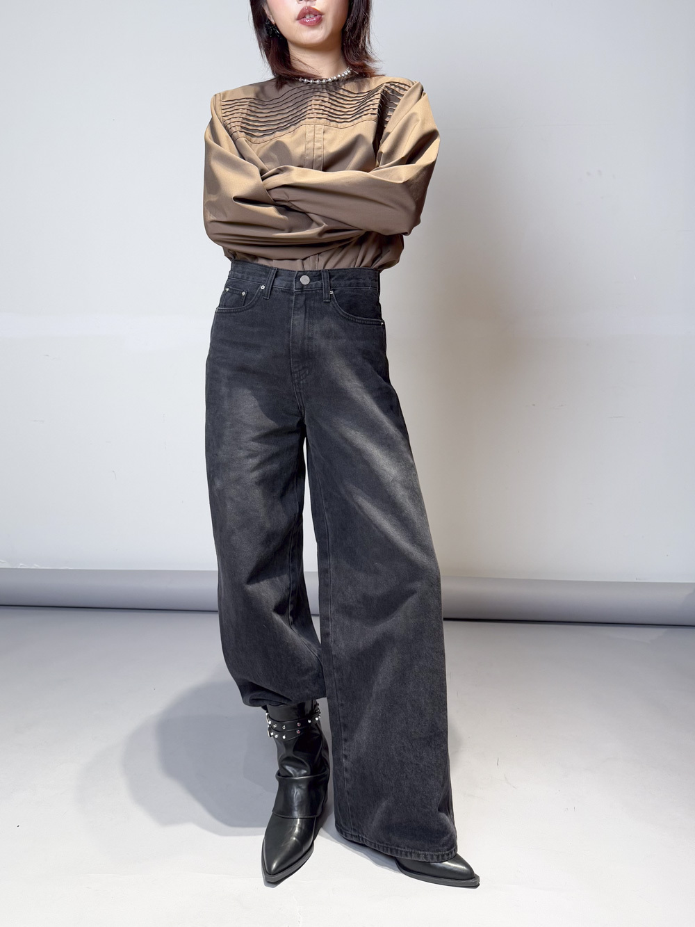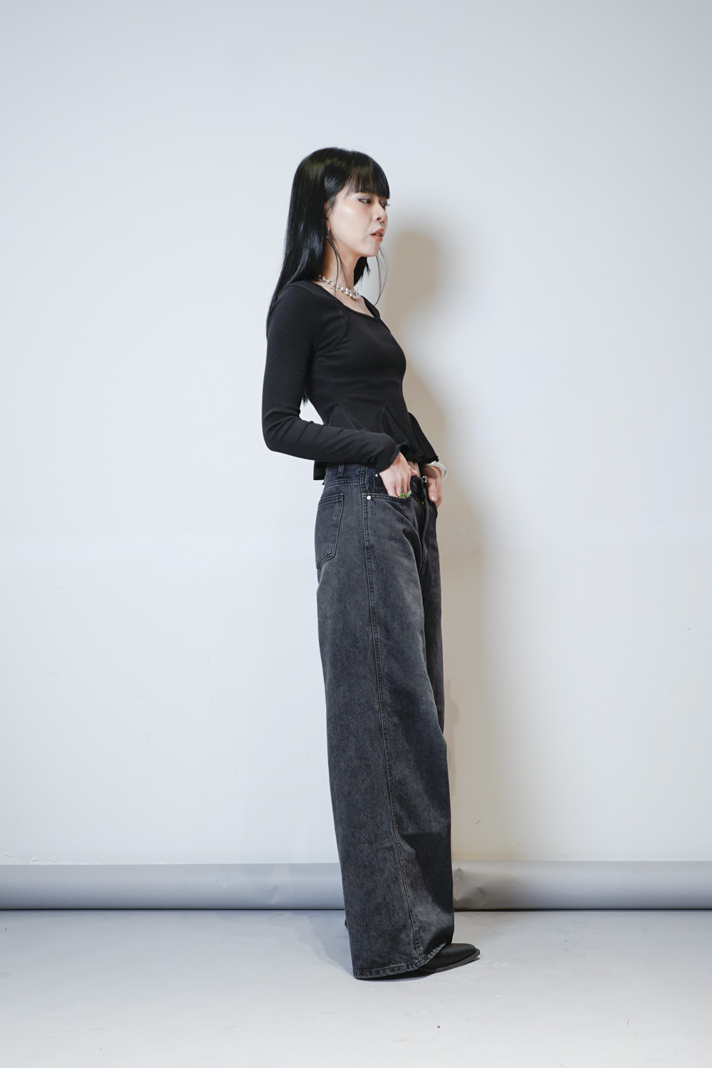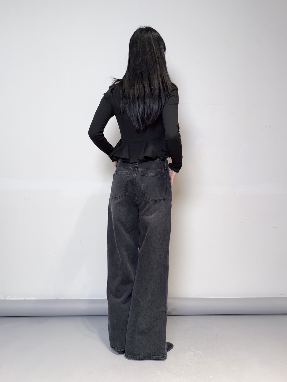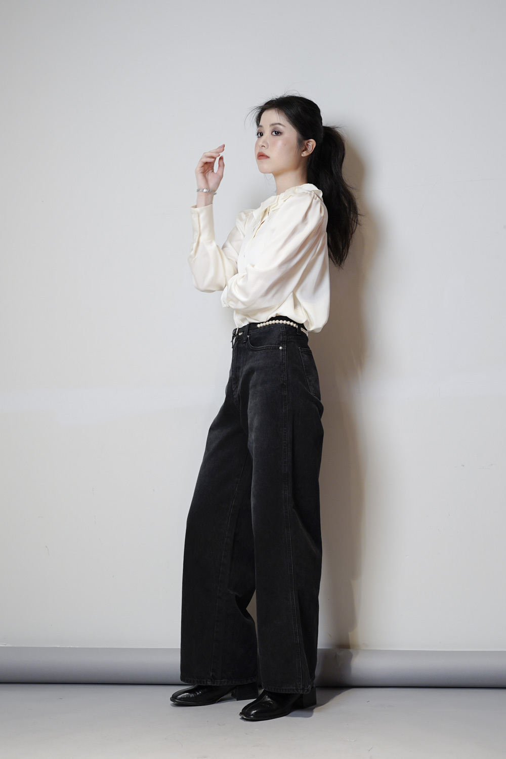 L: Waist: 74cm (29.5”) / Hip: 110cm (43”) / Rise:34cm / Length: 103.5cm / Thigh: 68cm / Hem: 60cm