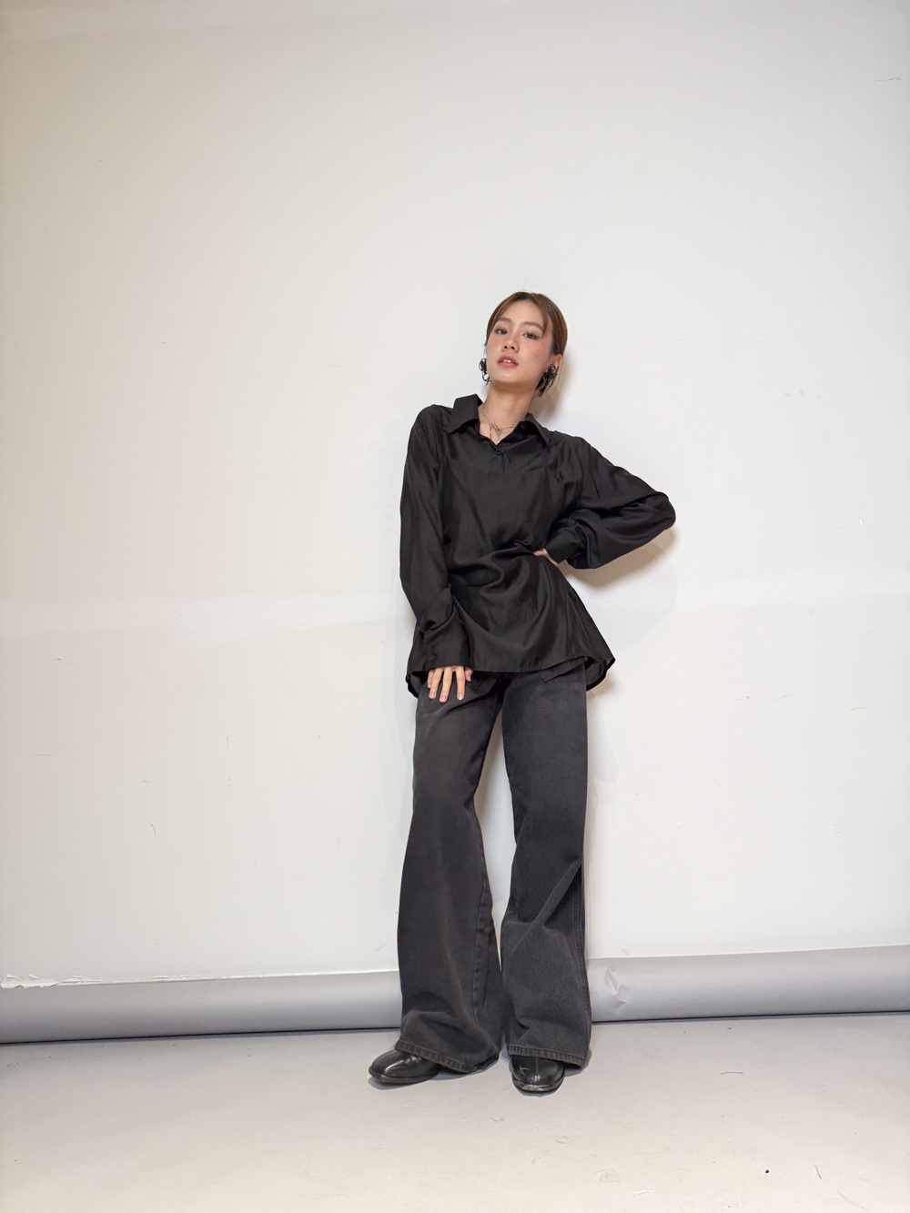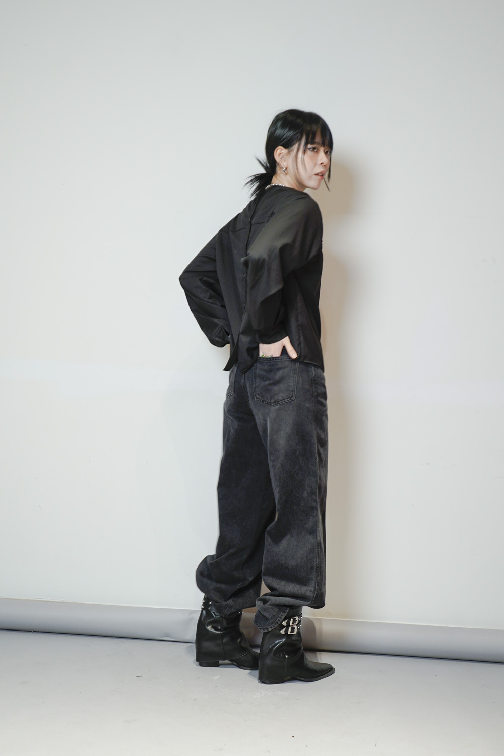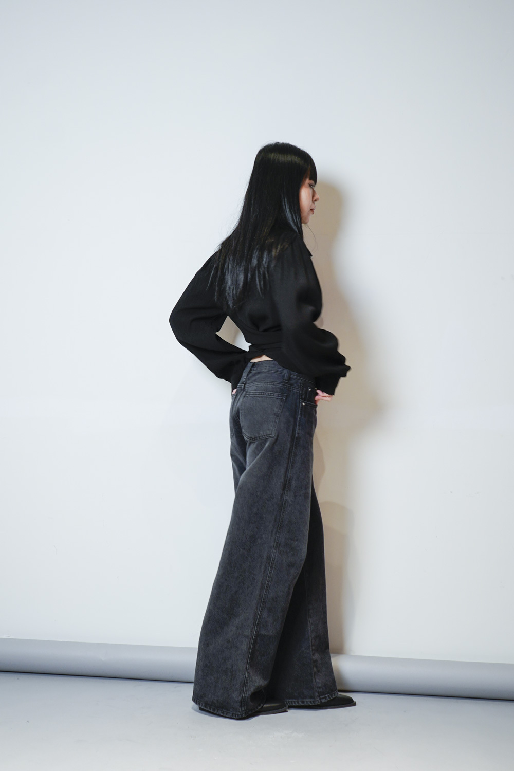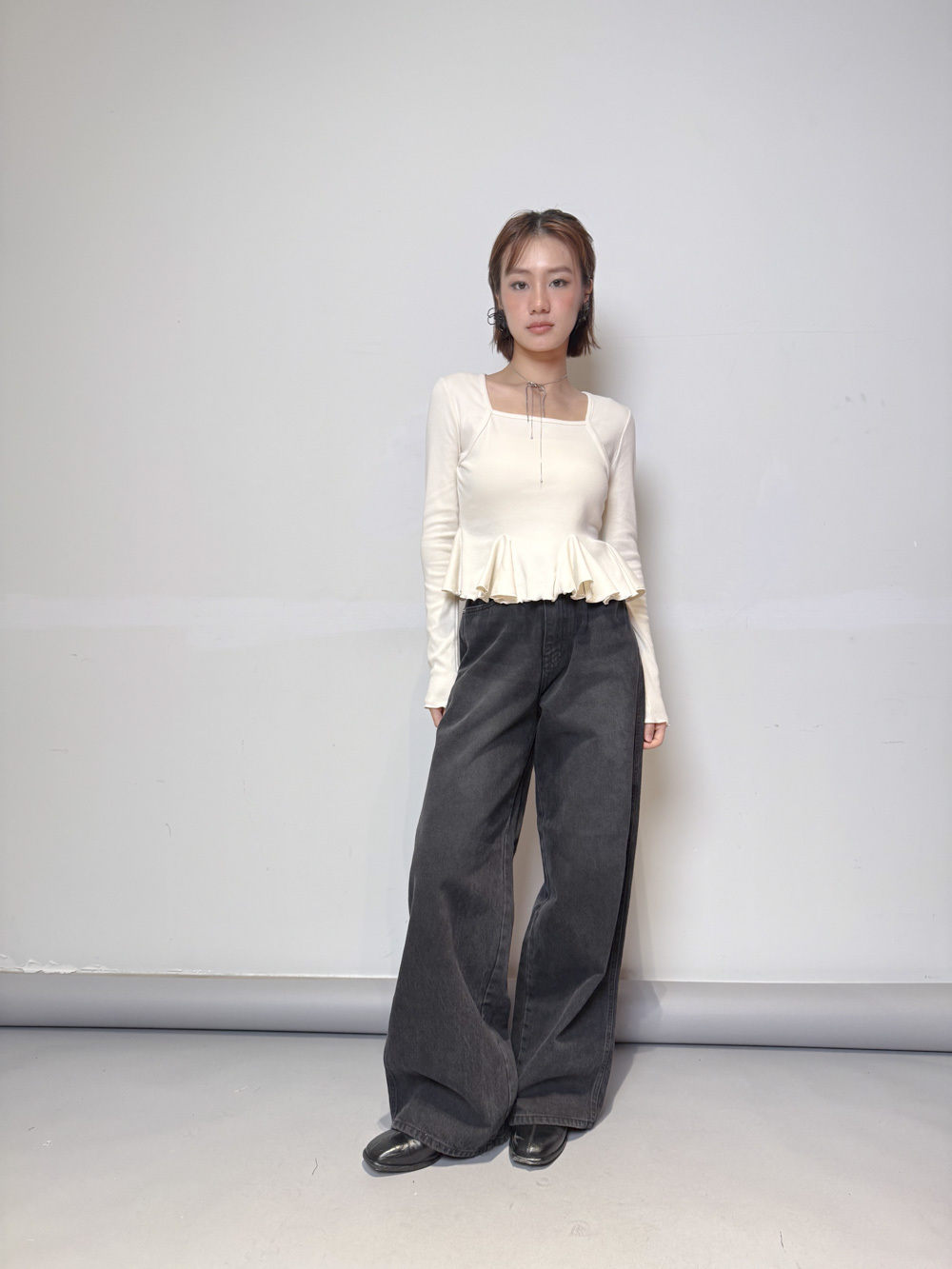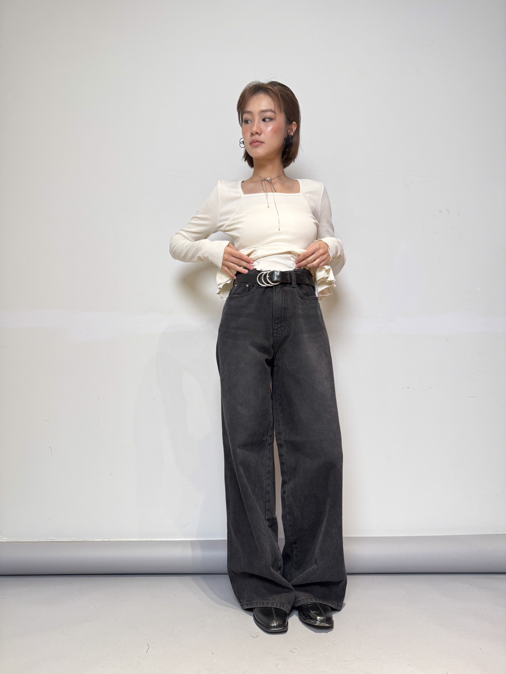 L: Waist: 74cm (29.5”) / Hip: 110cm (43”) / Rise:34cm / Length: 103.5cm / Thigh: 68cm / Hem: 60cm