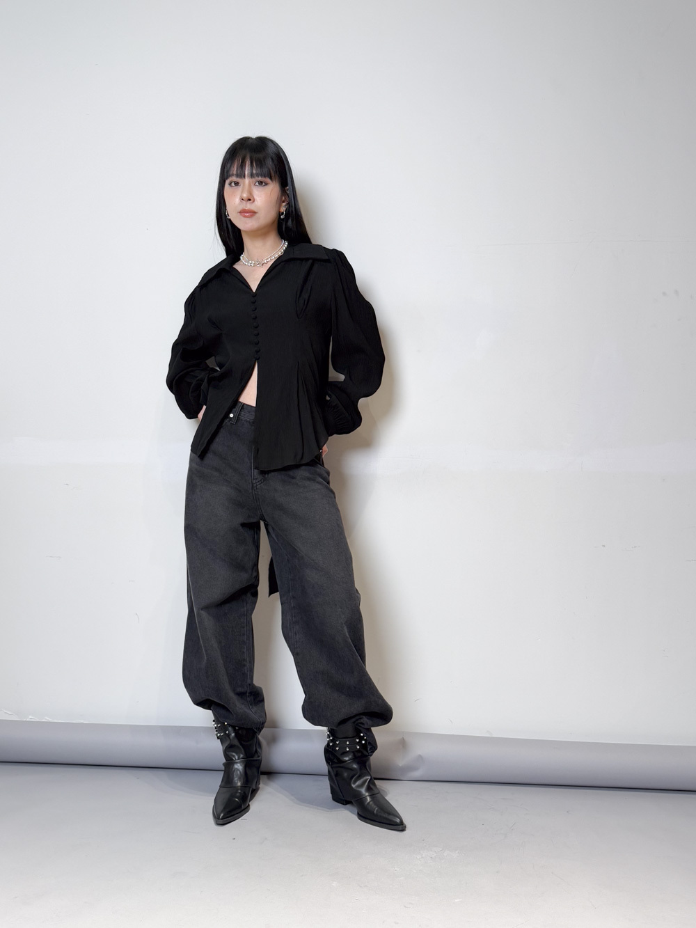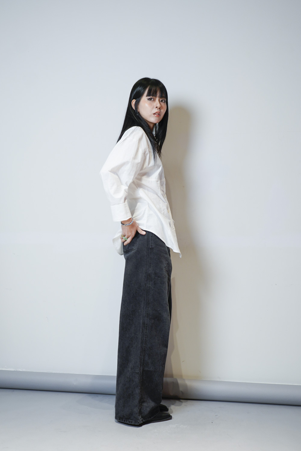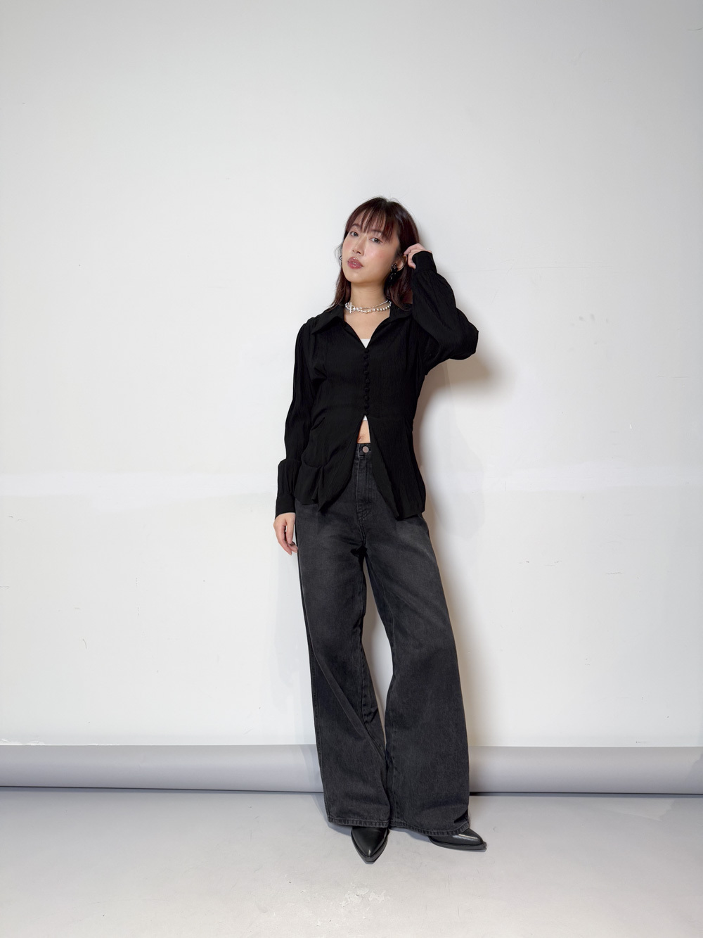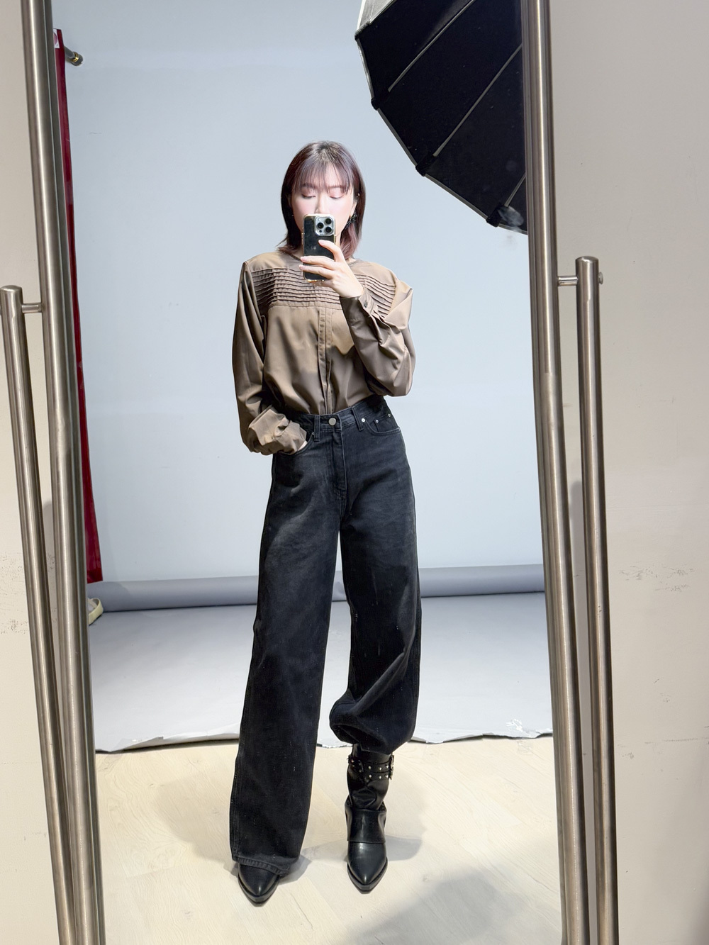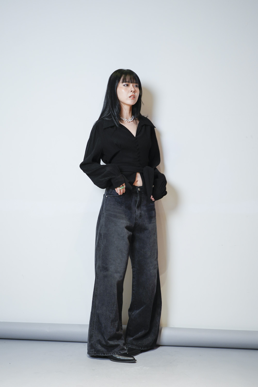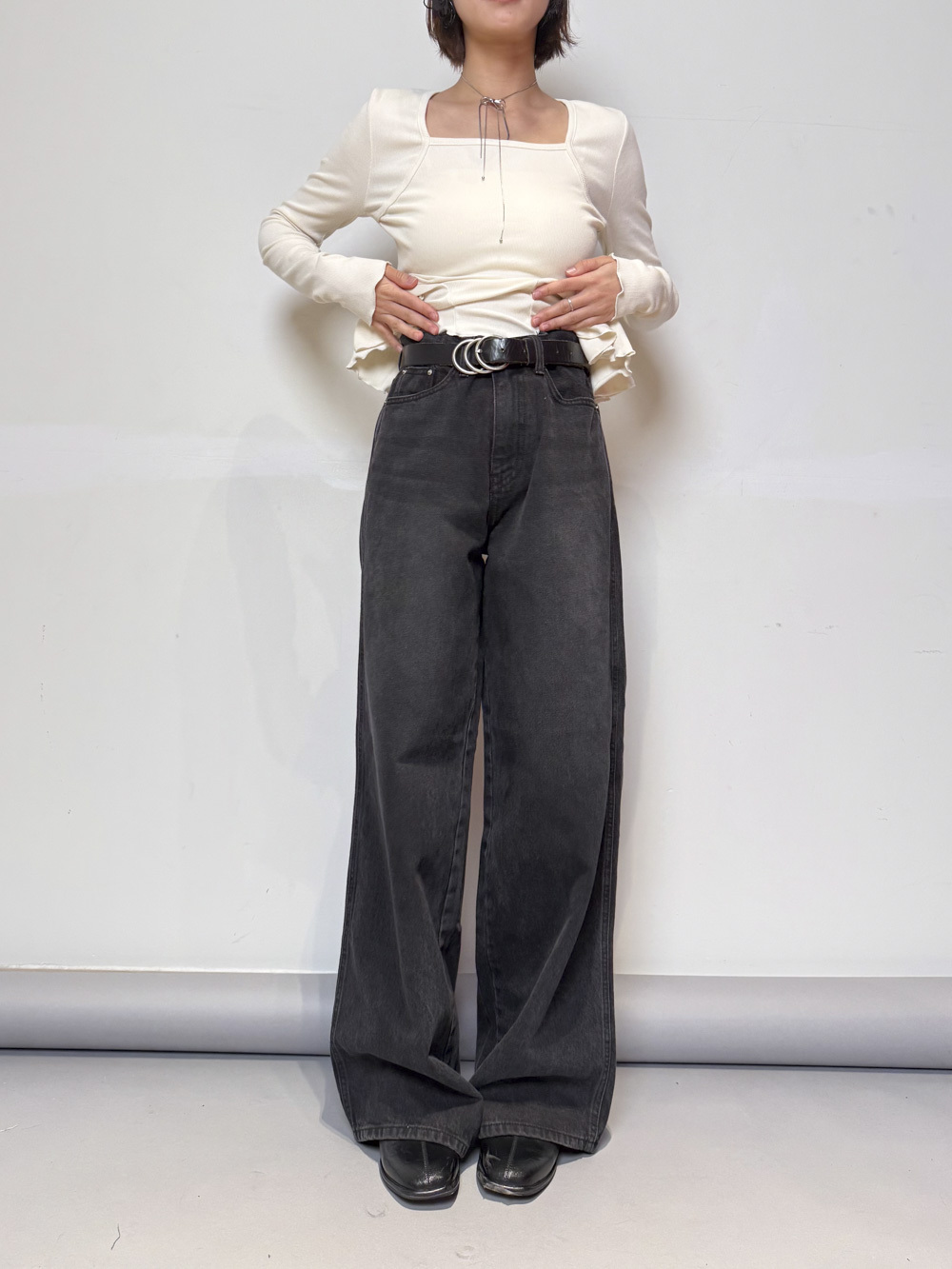 L: Waist: 74cm (29.5”) / Hip: 110cm (43”) / Rise:34cm / Length: 103.5cm / Thigh: 68cm / Hem: 60cm