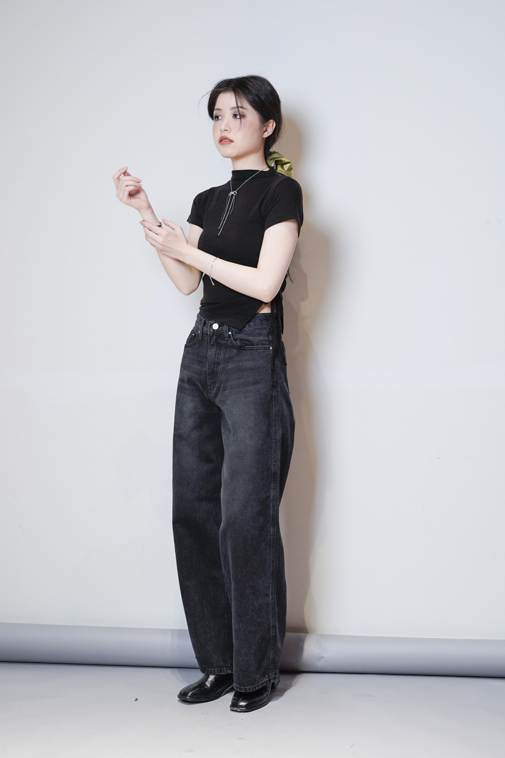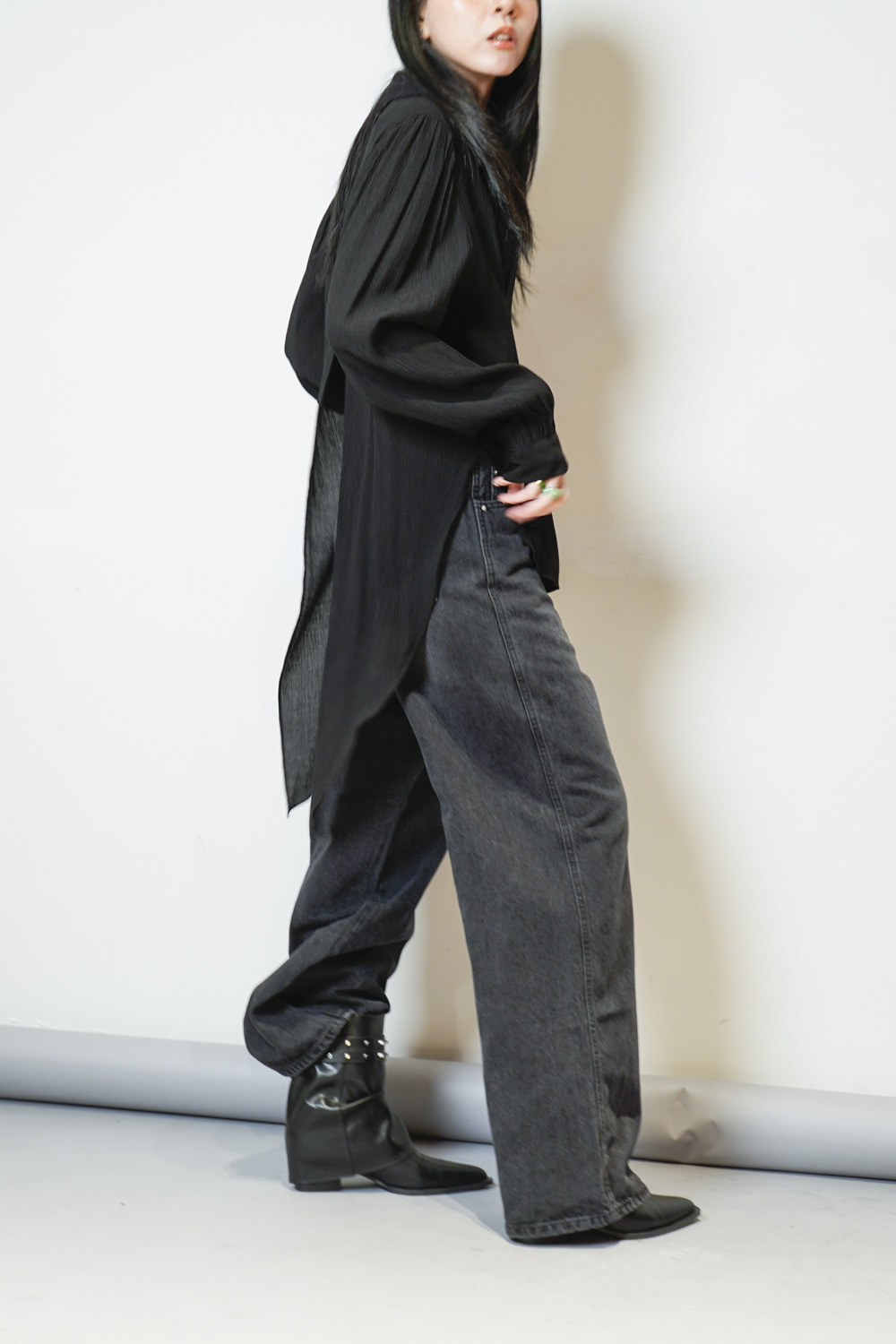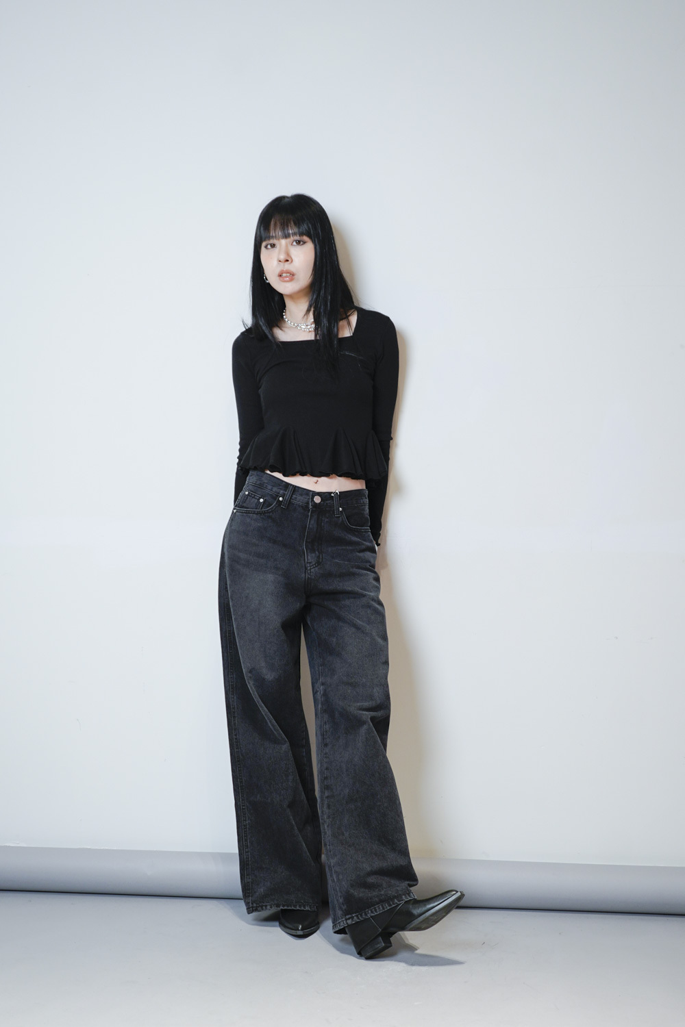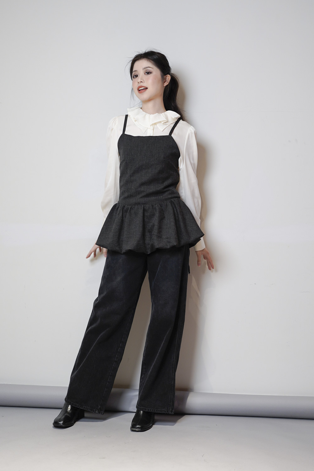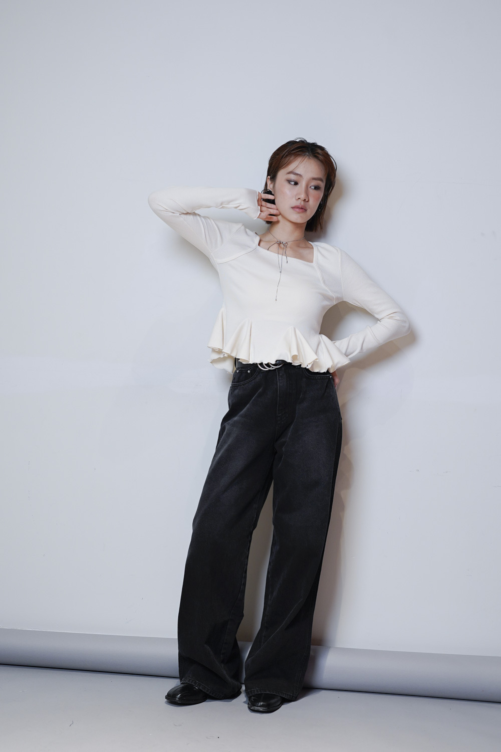L: Waist: 74cm (29.5”) / Hip: 110cm (43”) / Rise:34cm / Length: 103.5cm / Thigh: 68cm / Hem: 60cm