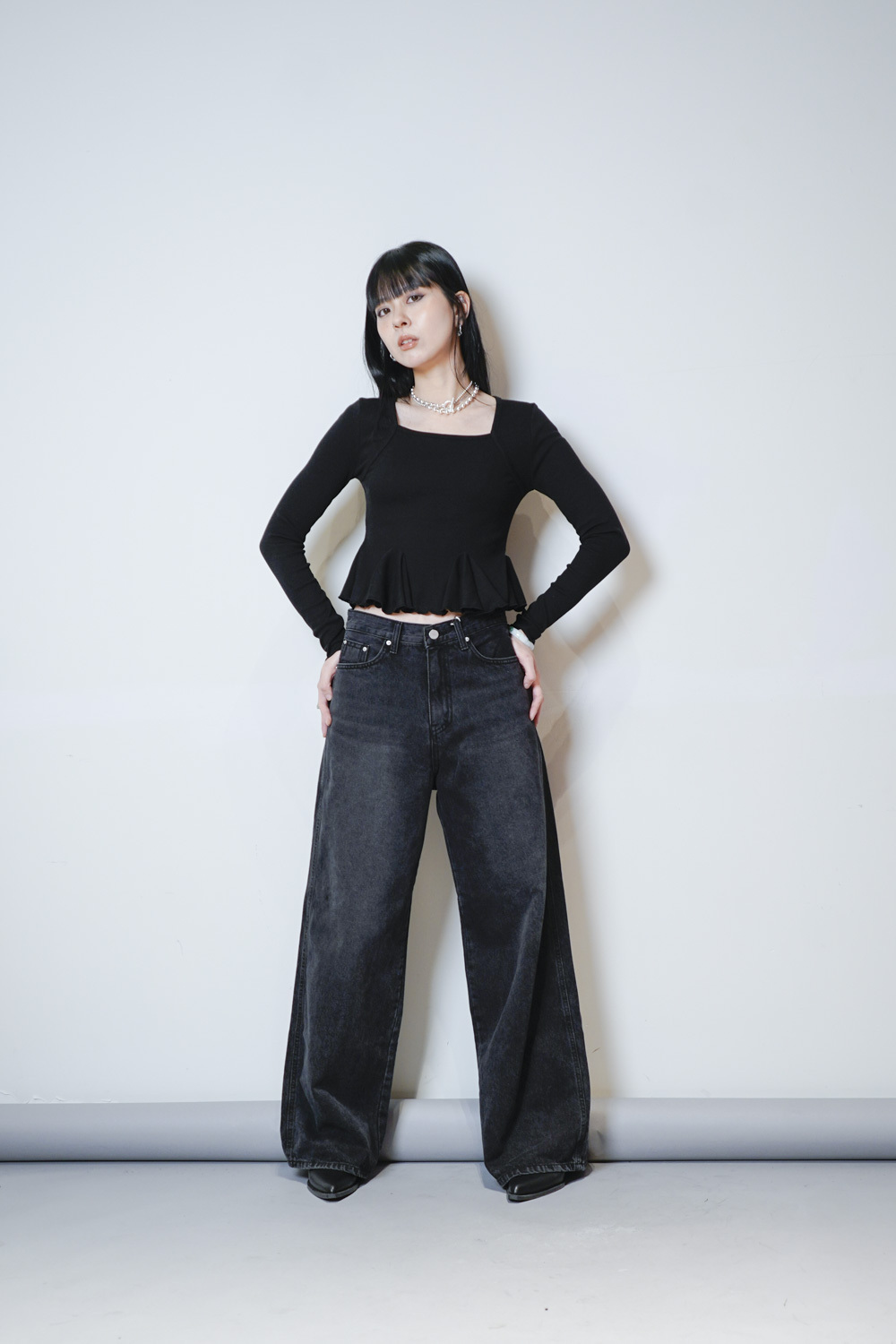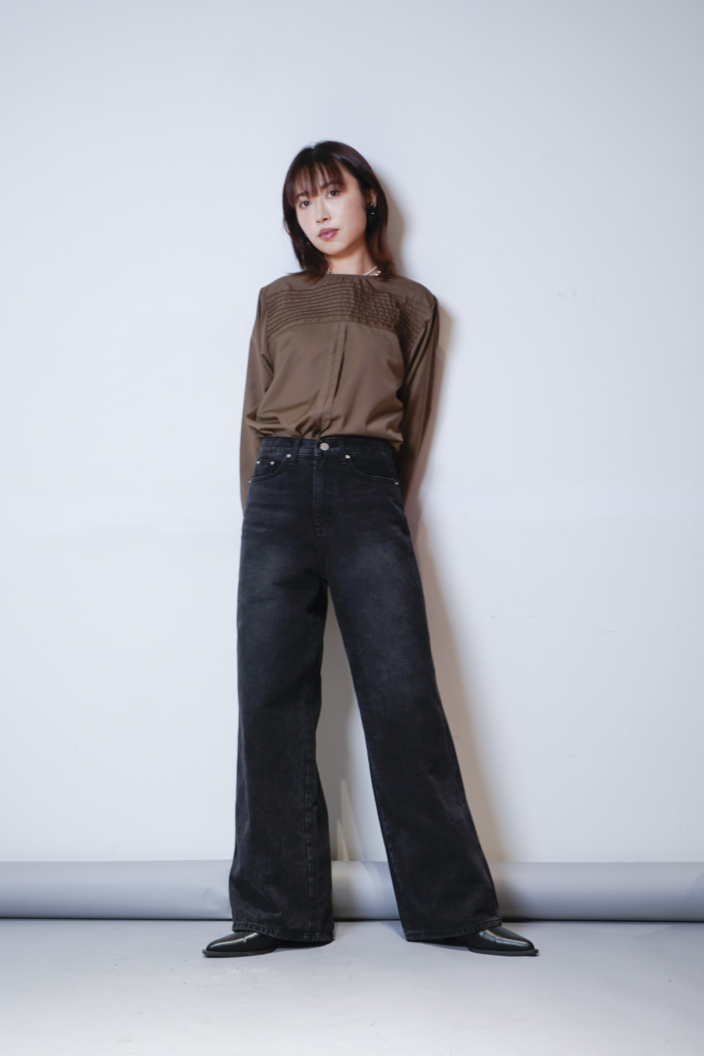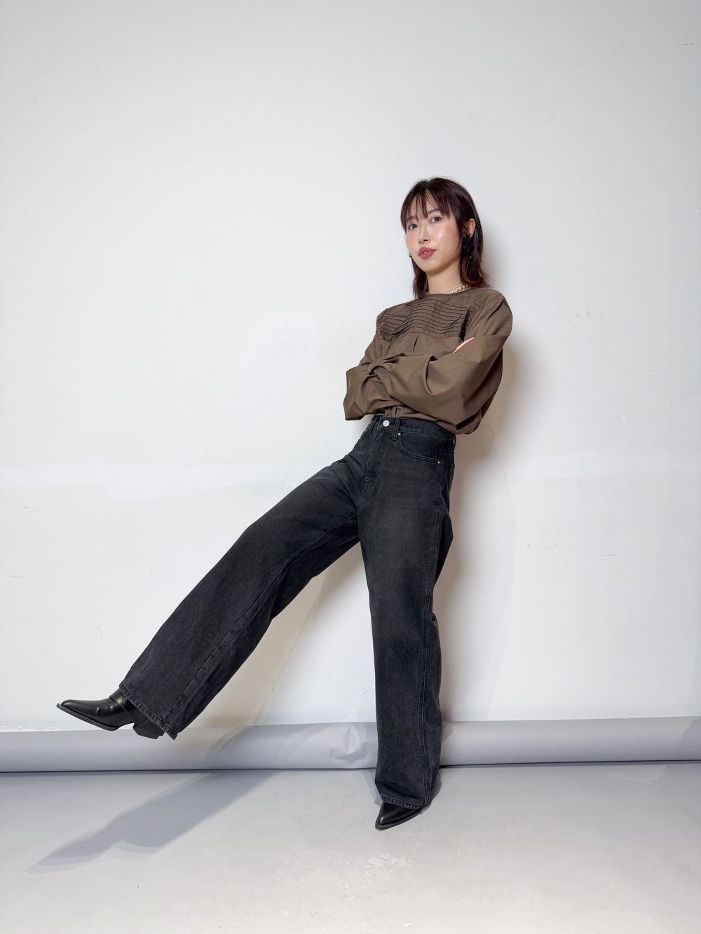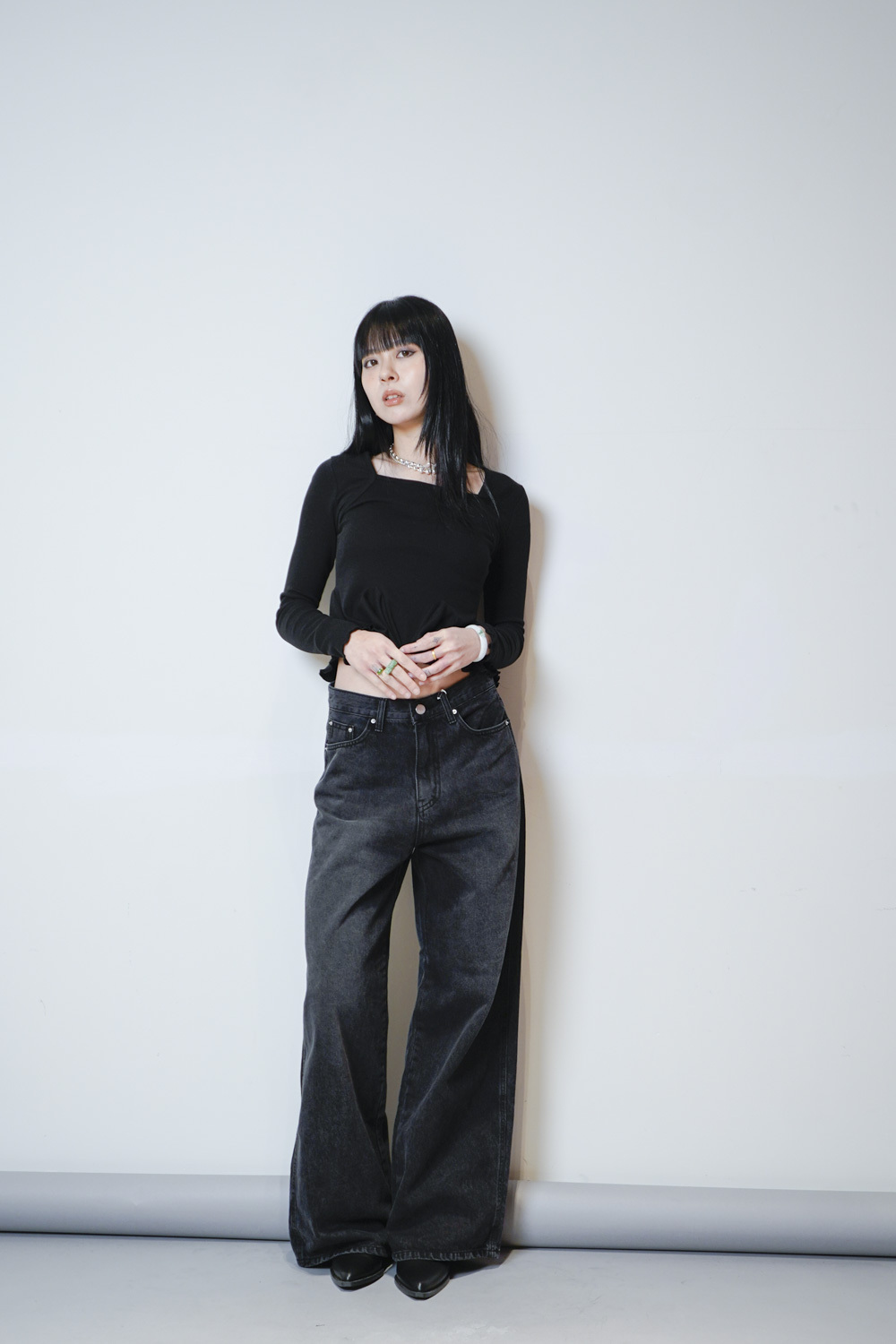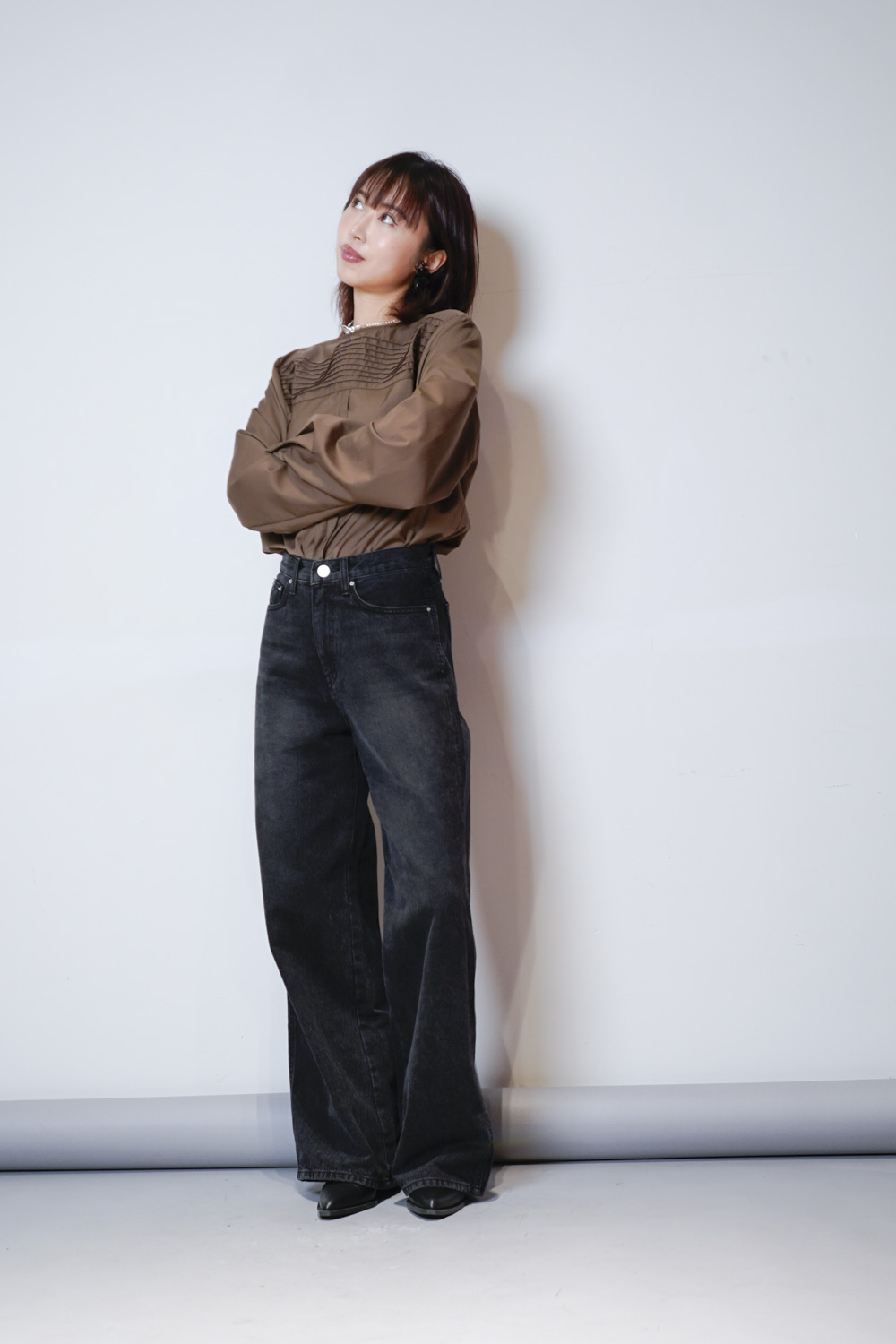 L: Waist: 74cm (29.5”) / Hip: 110cm (43”) / Rise:34cm / Length: 103.5cm / Thigh: 68cm / Hem: 60cm