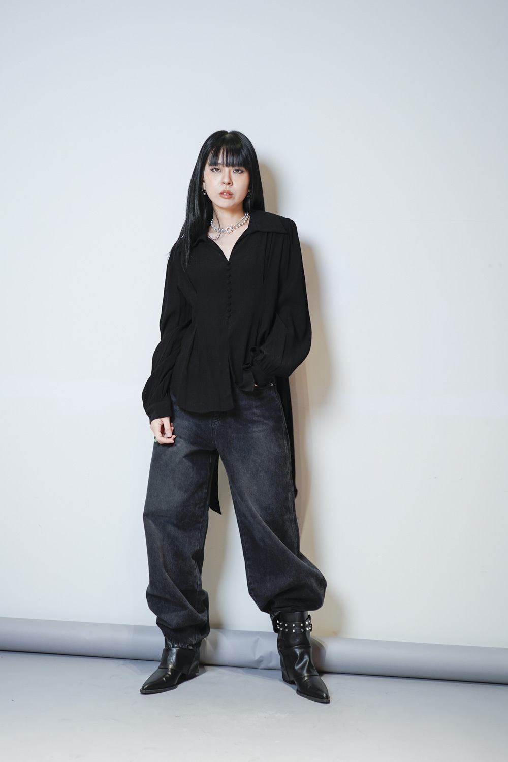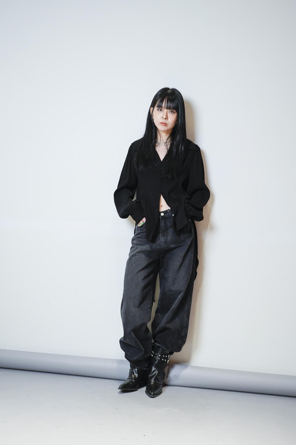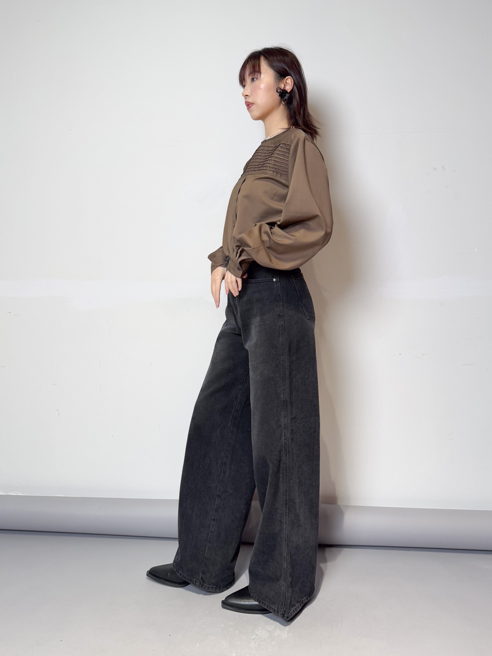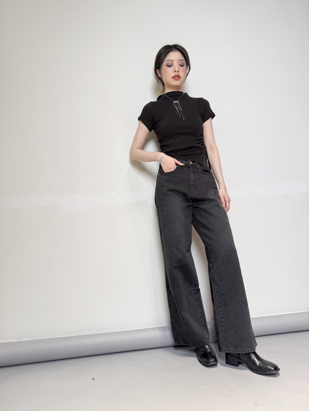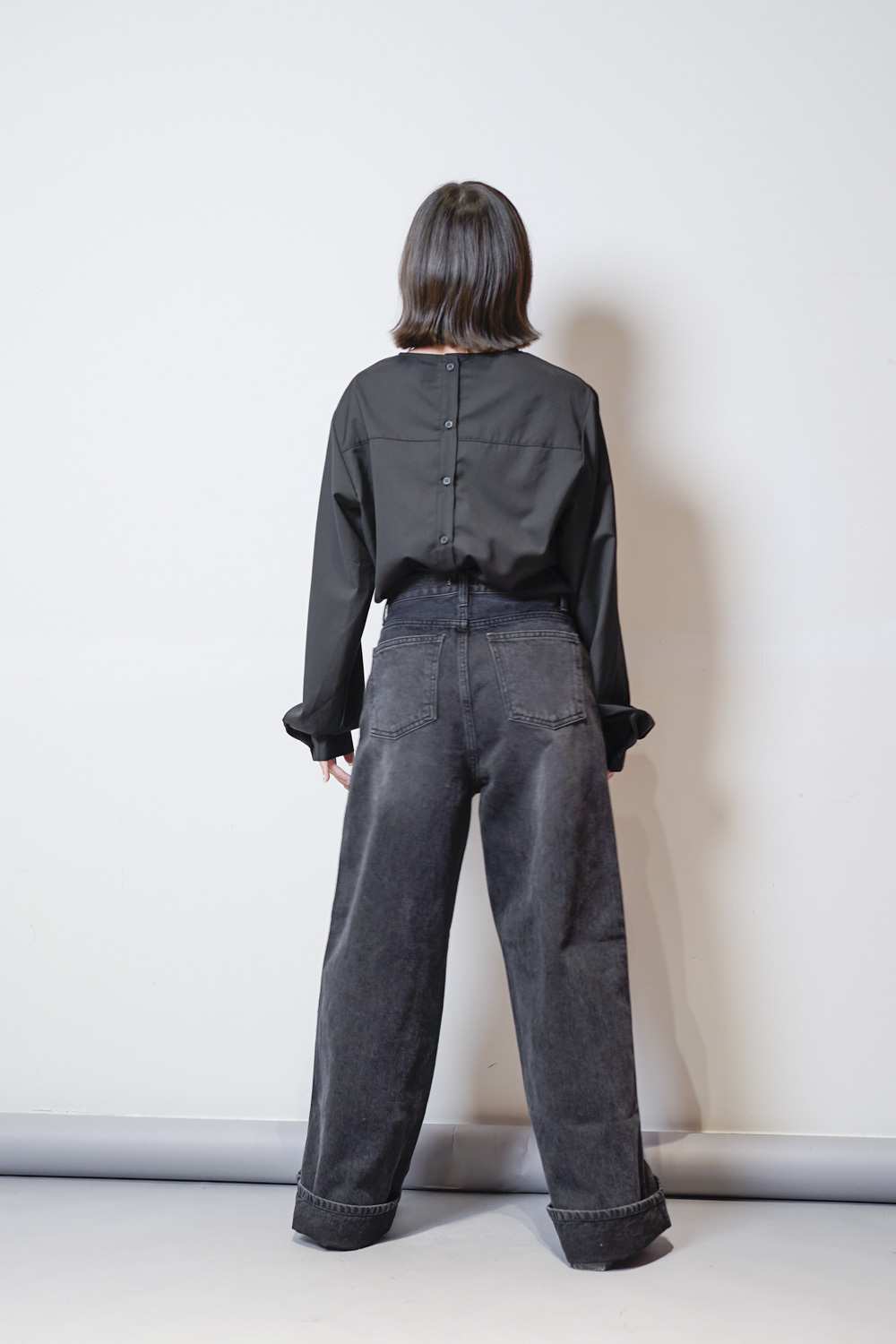 L: Waist: 74cm (29.5”) / Hip: 110cm (43”) / Rise:34cm / Length: 103.5cm / Thigh: 68cm / Hem: 60cm