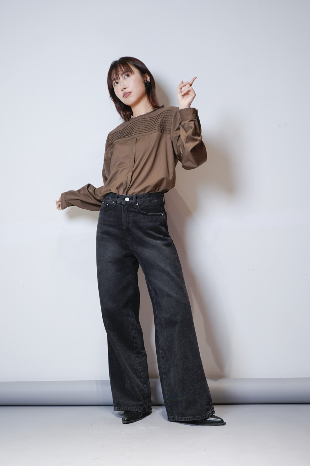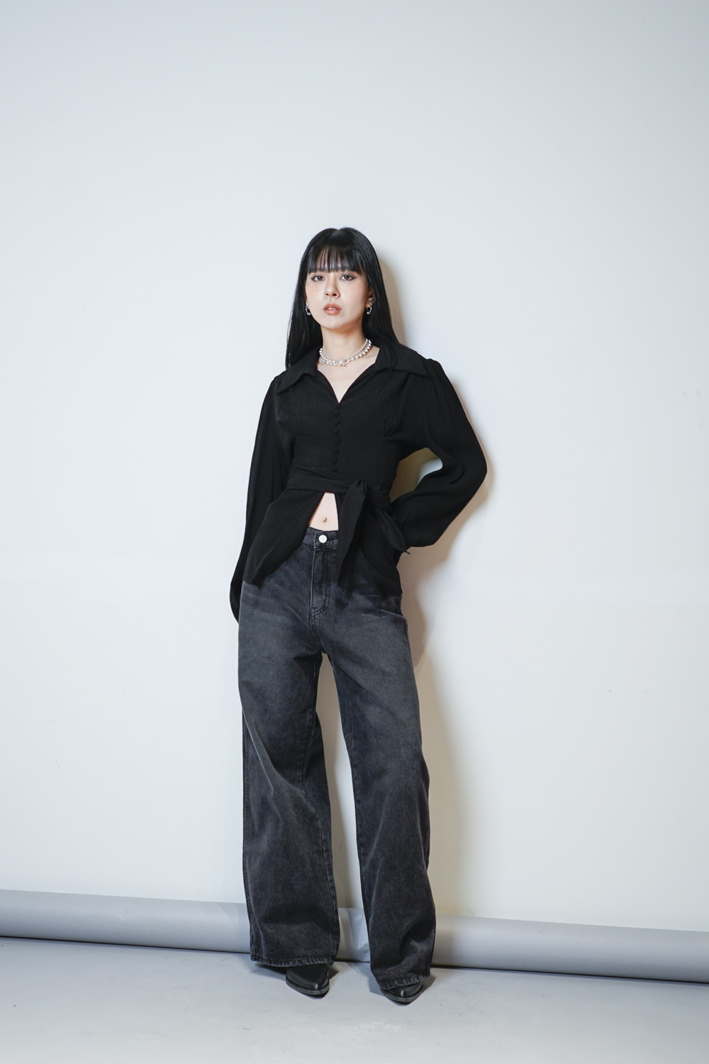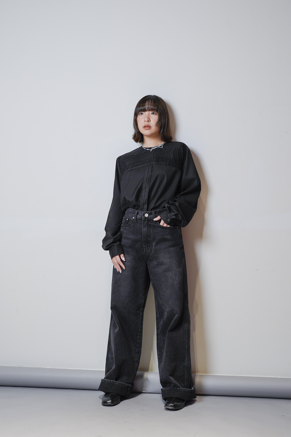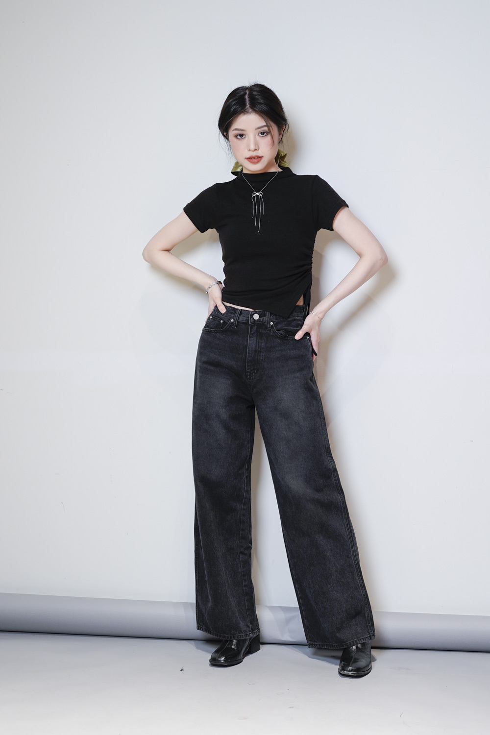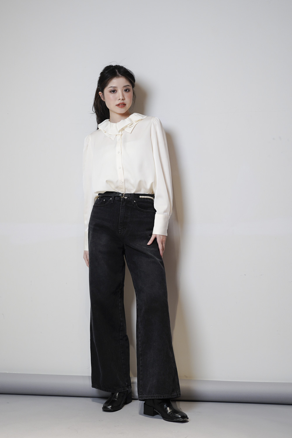 L: Waist: 74cm (29.5”) / Hip: 110cm (43”) / Rise:34cm / Length: 103.5cm / Thigh: 68cm / Hem: 60cm