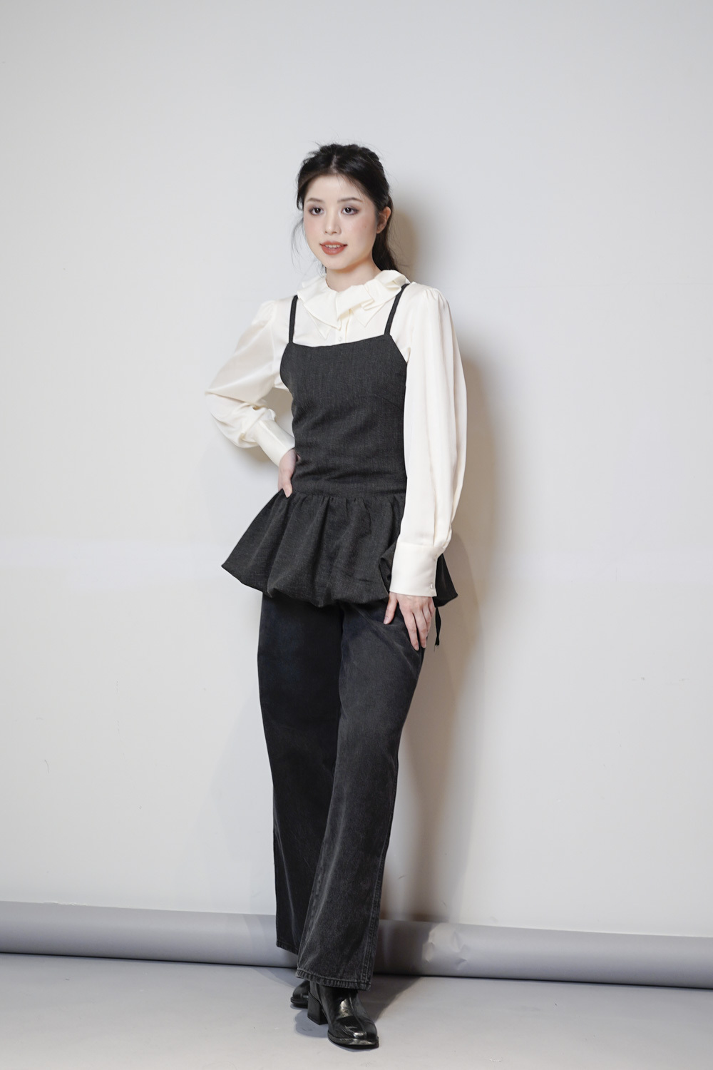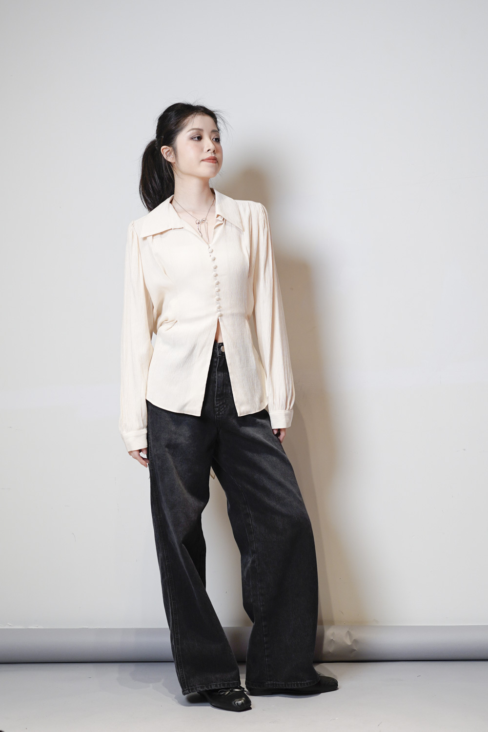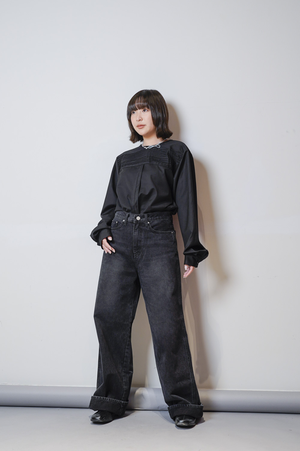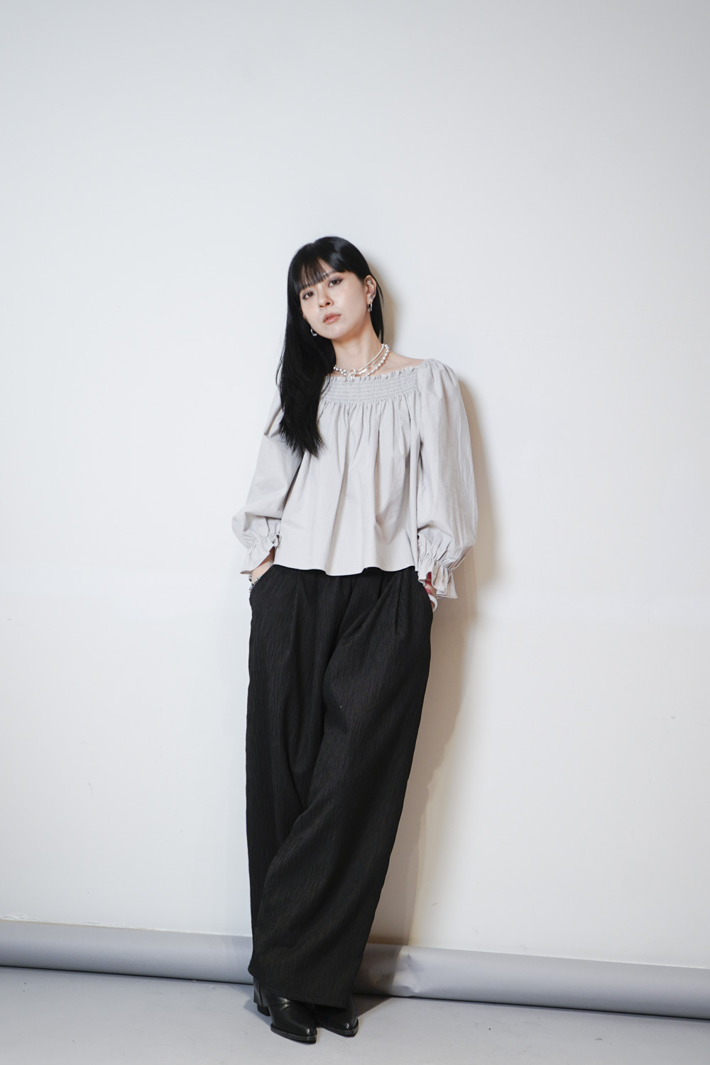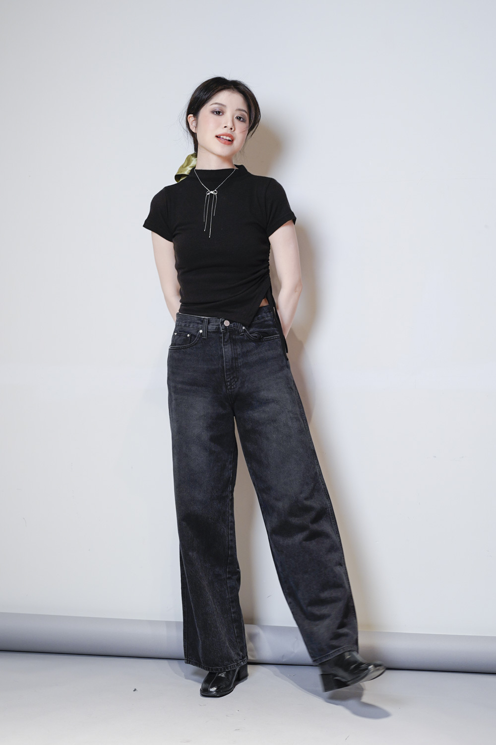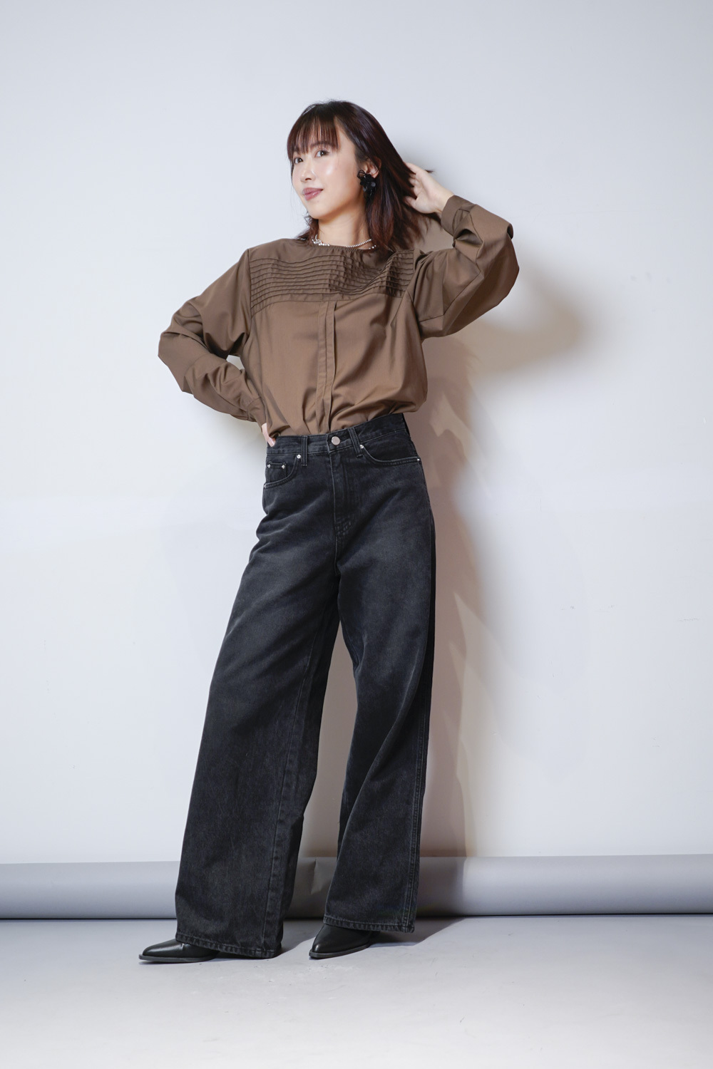 L: Waist: 74cm (29.5”) / Hip: 110cm (43”) / Rise:34cm / Length: 103.5cm / Thigh: 68cm / Hem: 60cm