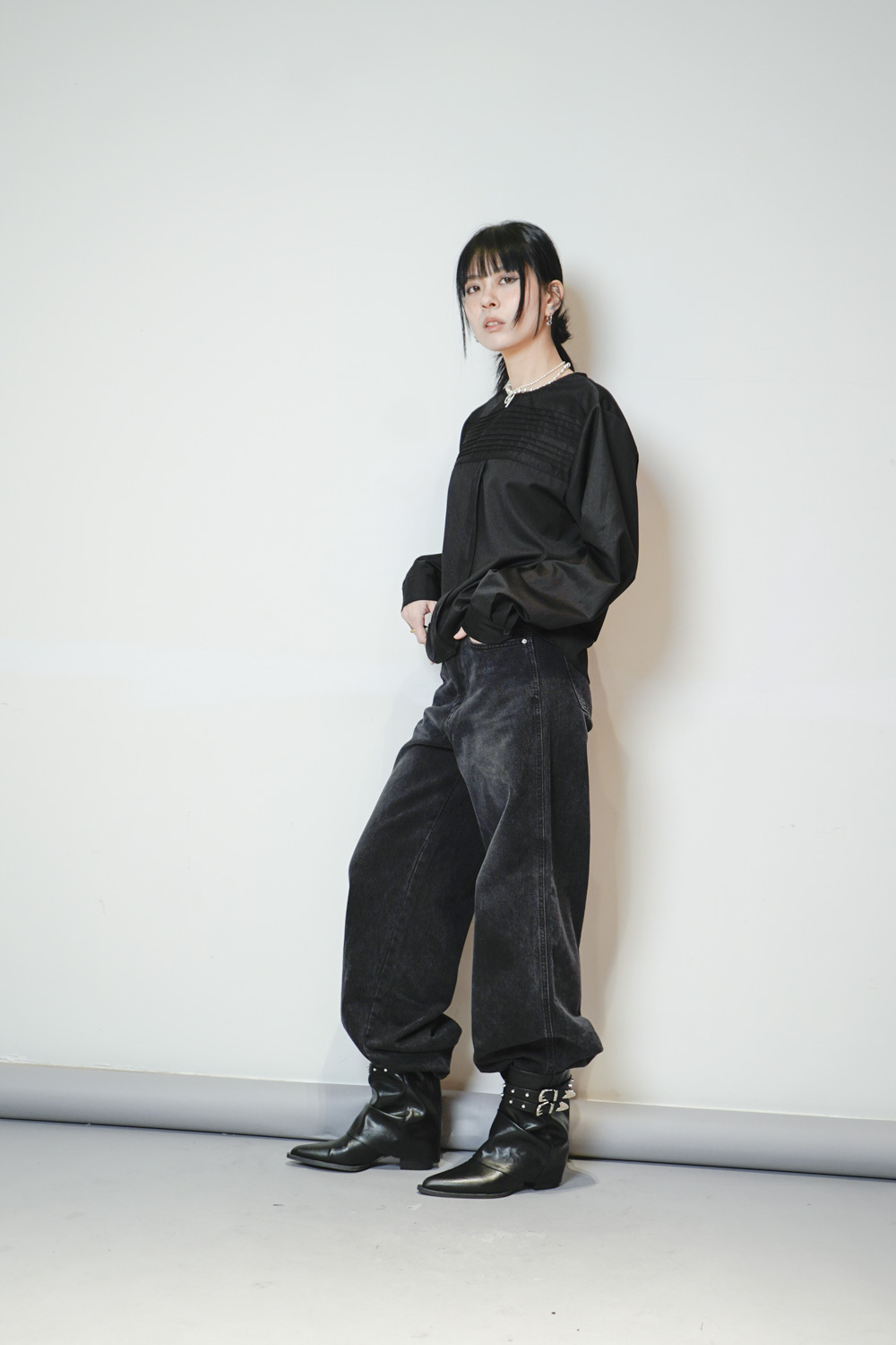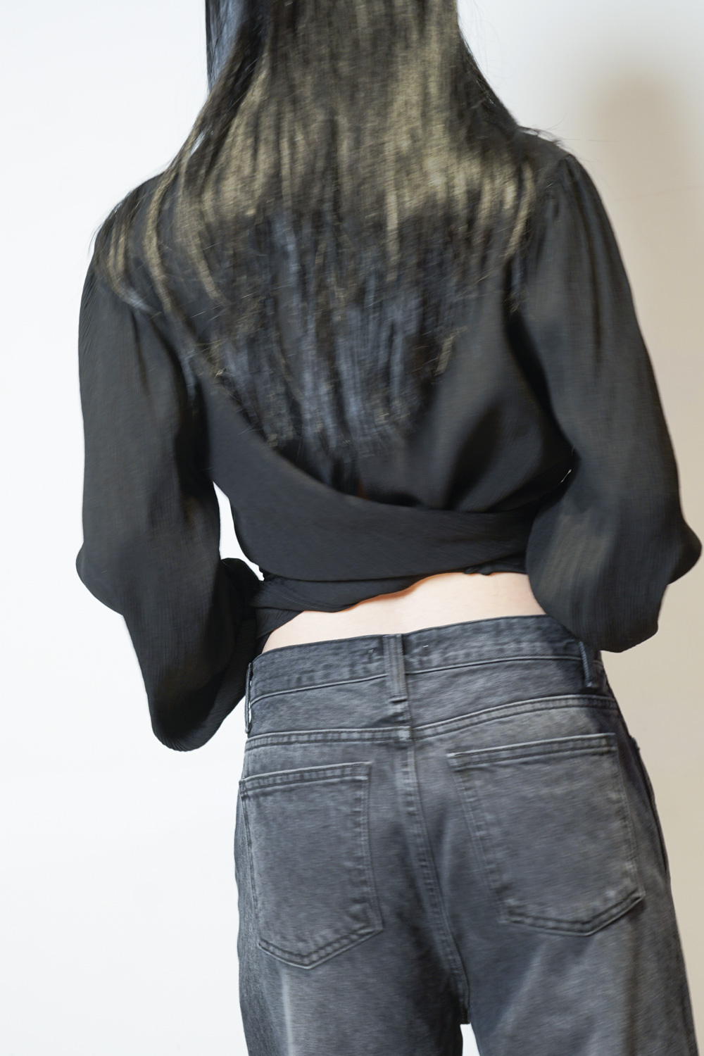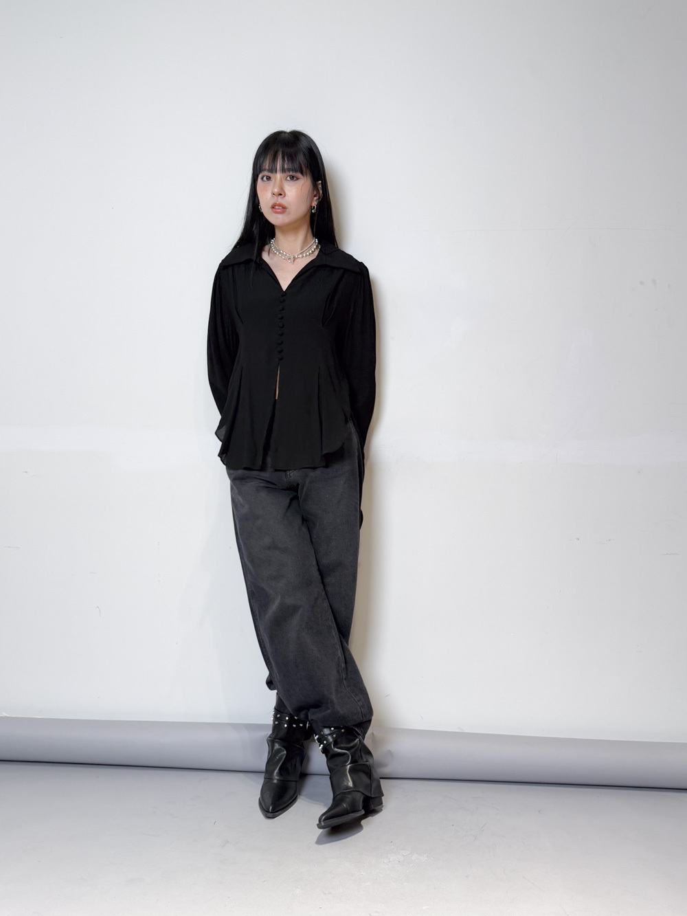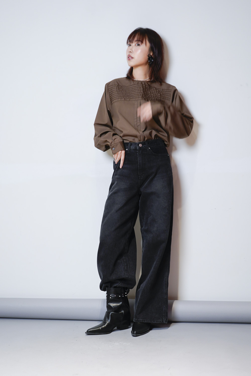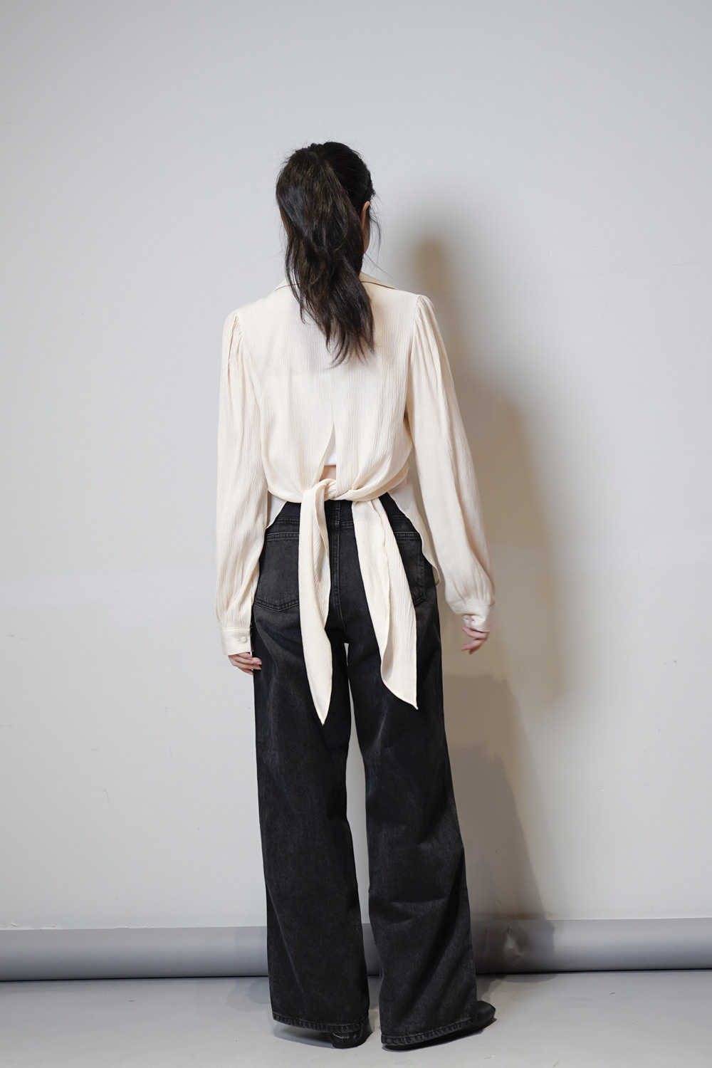 L: Waist: 74cm (29.5”) / Hip: 110cm (43”) / Rise:34cm / Length: 103.5cm / Thigh: 68cm / Hem: 60cm