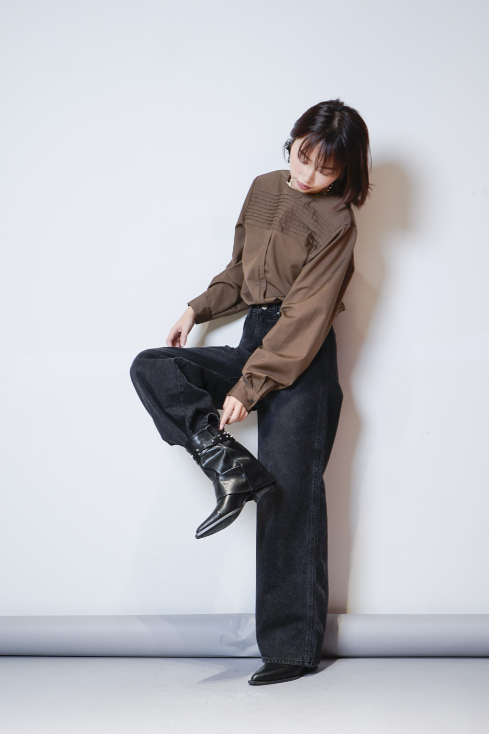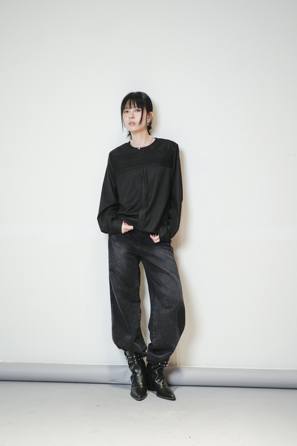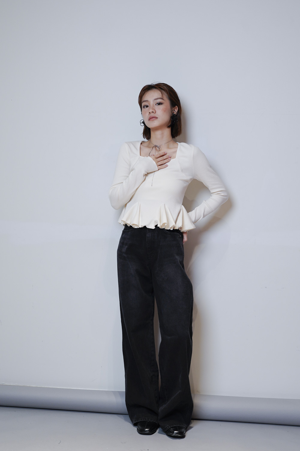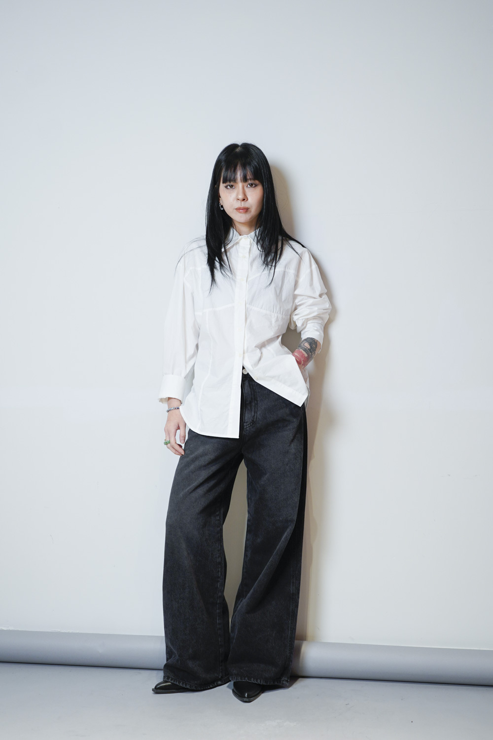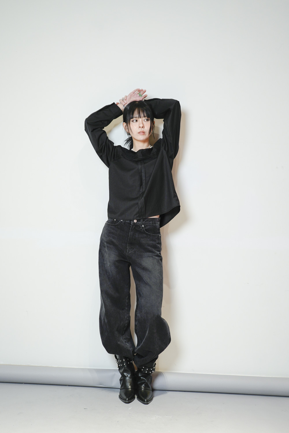 L: Waist: 74cm (29.5”) / Hip: 110cm (43”) / Rise:34cm / Length: 103.5cm / Thigh: 68cm / Hem: 60cm