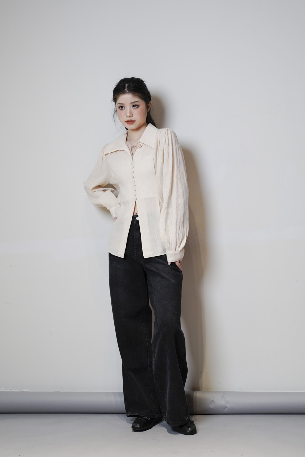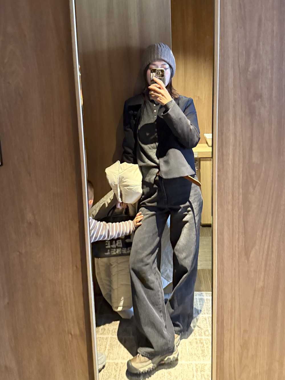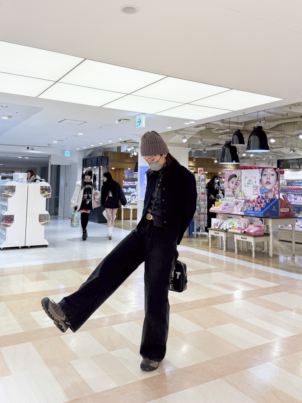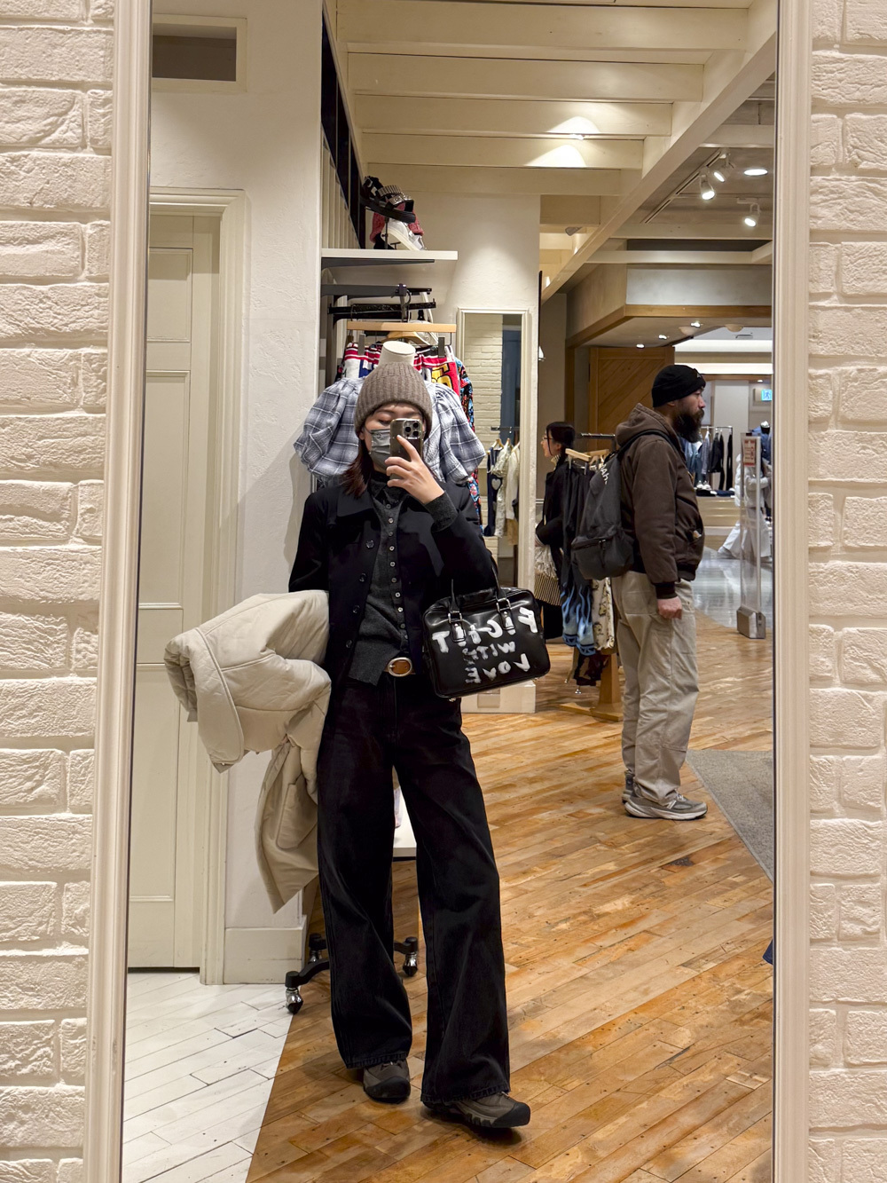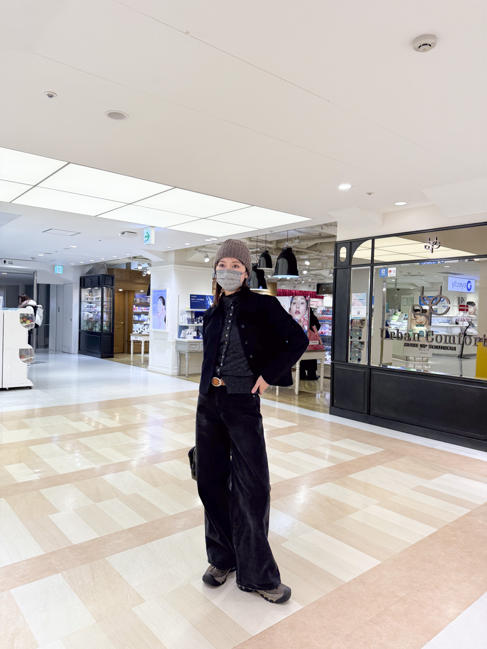 L: Waist: 74cm (29.5”) / Hip: 110cm (43”) / Rise:34cm / Length: 103.5cm / Thigh: 68cm / Hem: 60cm