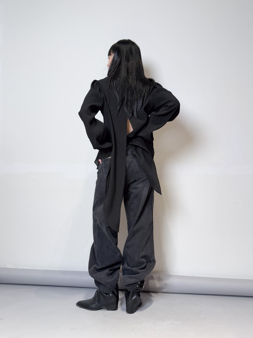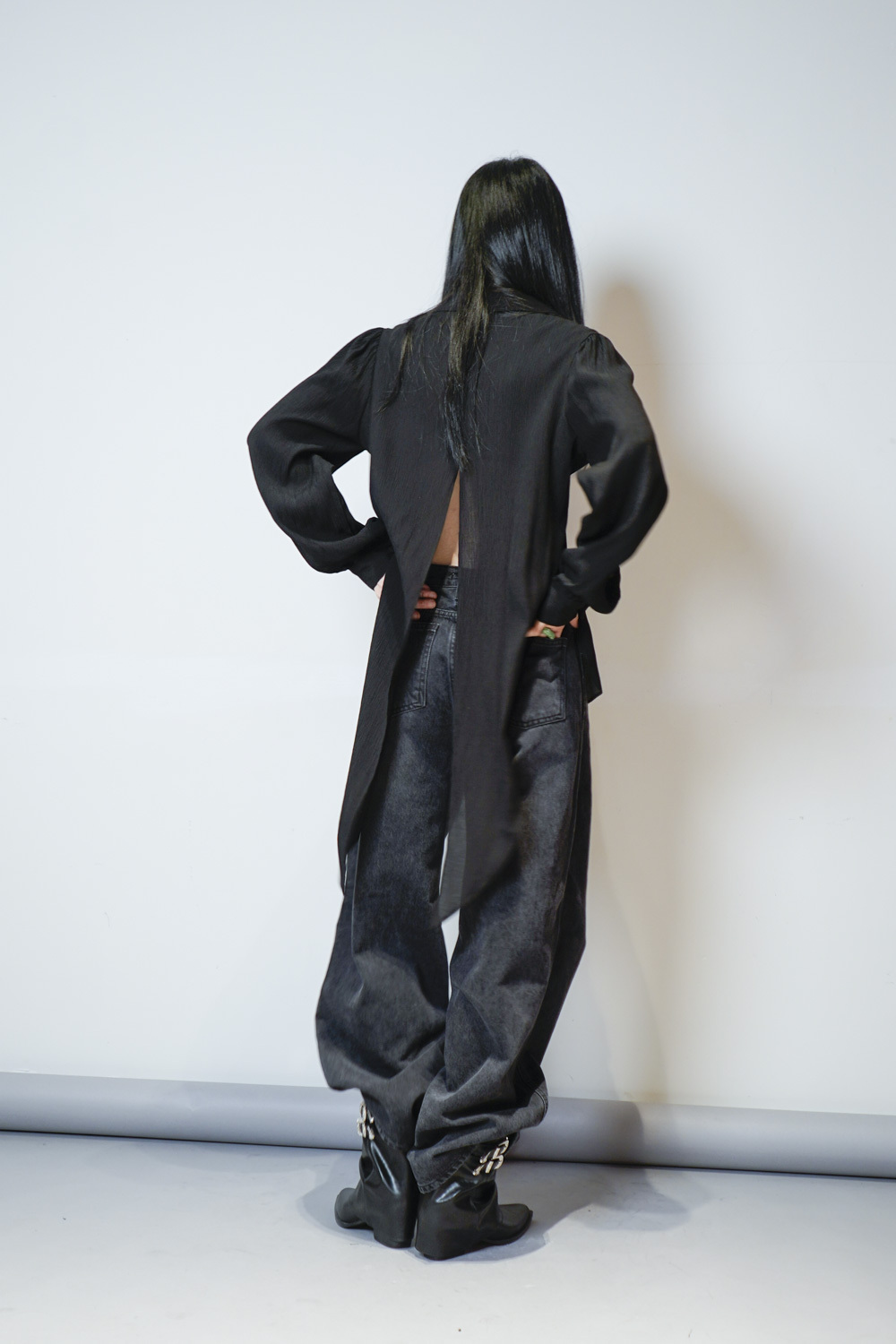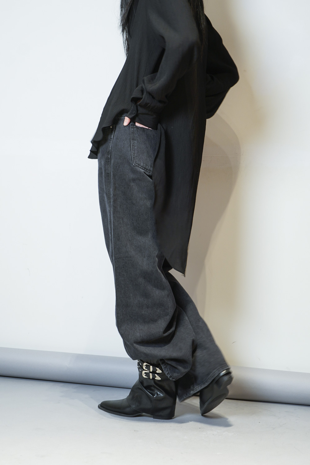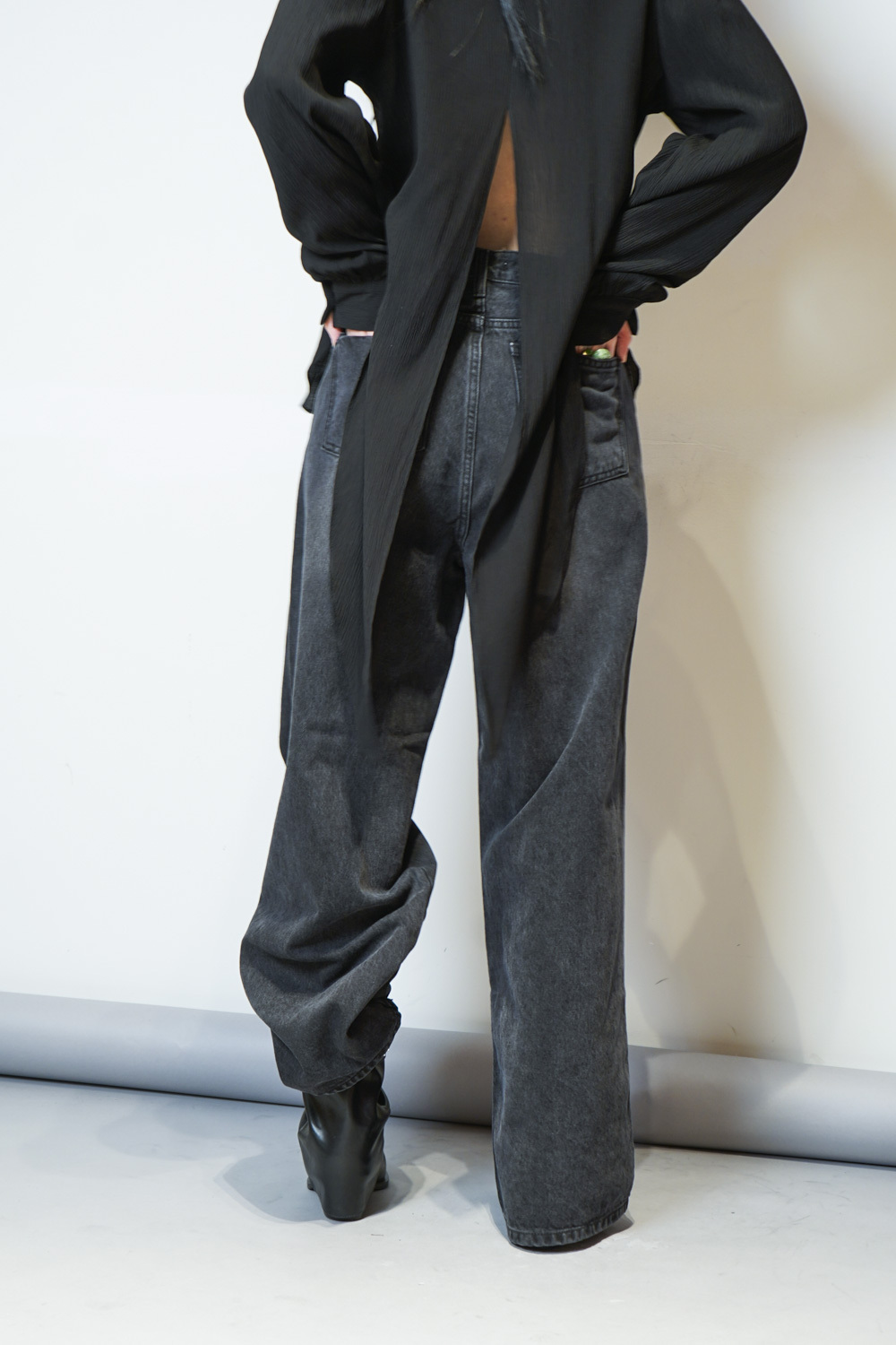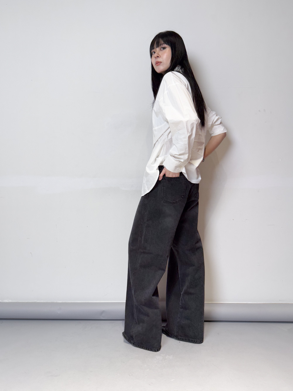 M: Waist: 70cm (28”) / Hip: 106cm (42”) / Rise: 333cm / Length: 103.5cm / Thigh: 66cm / Hem: 59cm
