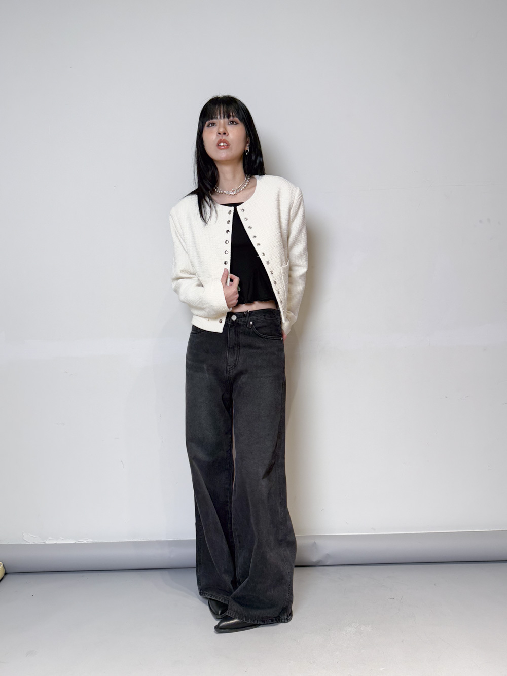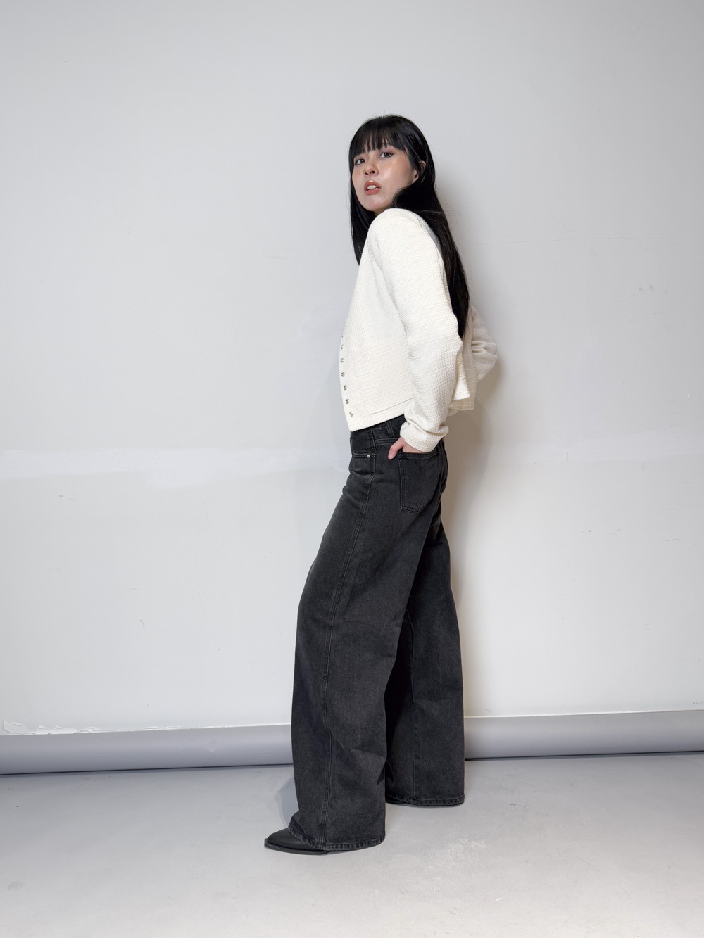 S: Waist: 68cm (27”) / Hip: 98cm (38”) / Rise: 32.5cm / Length: 103.5cm / Thigh: 63cm / Hem:55cm