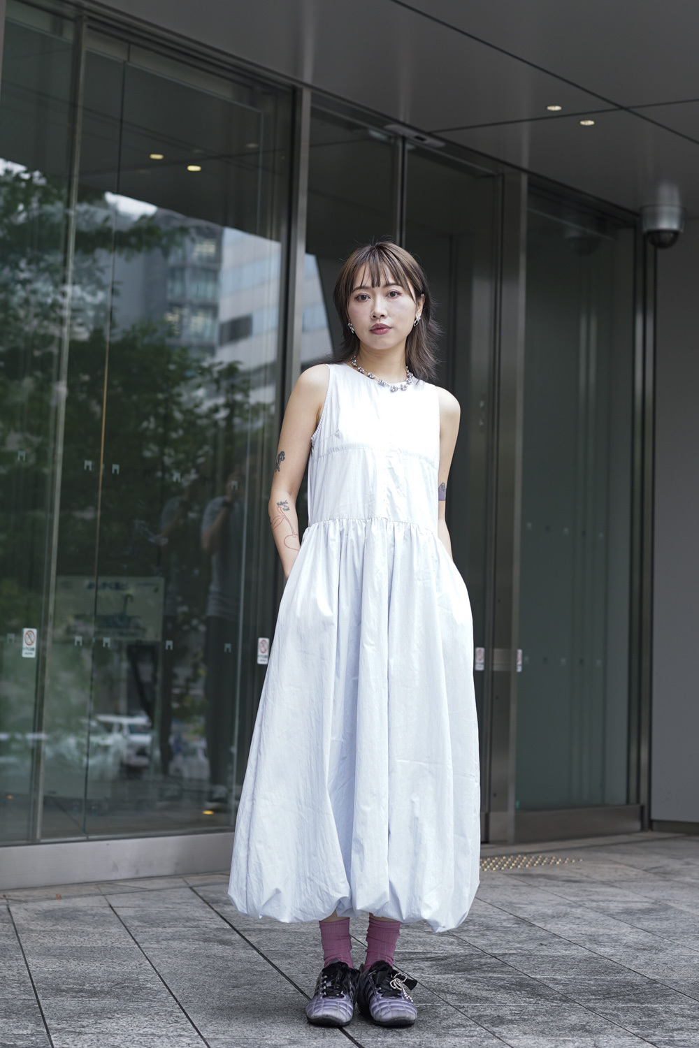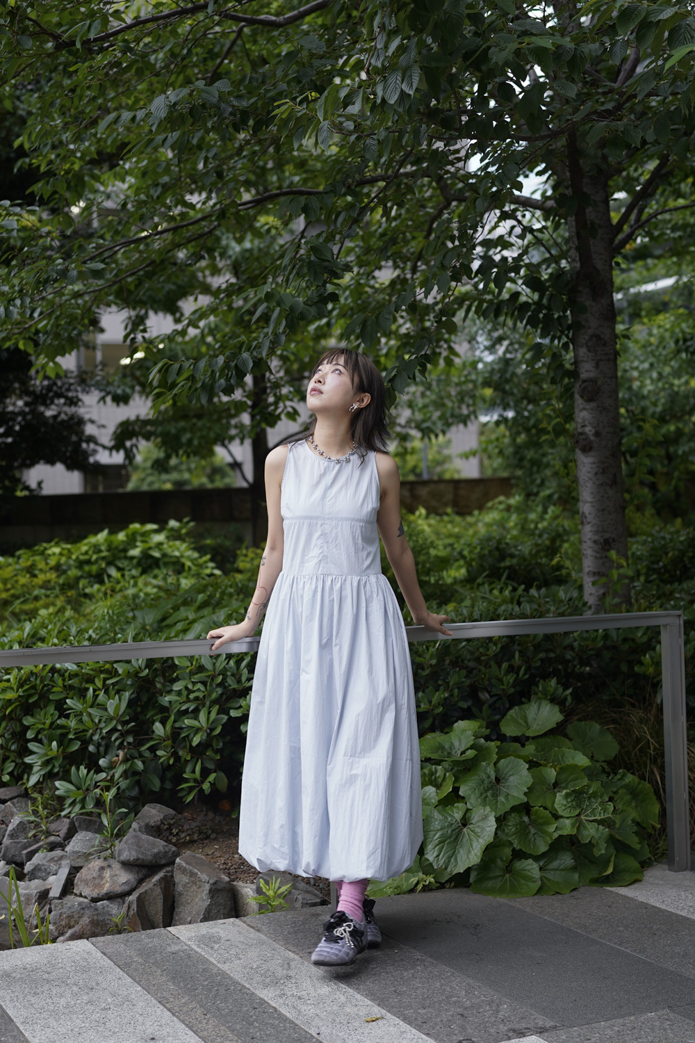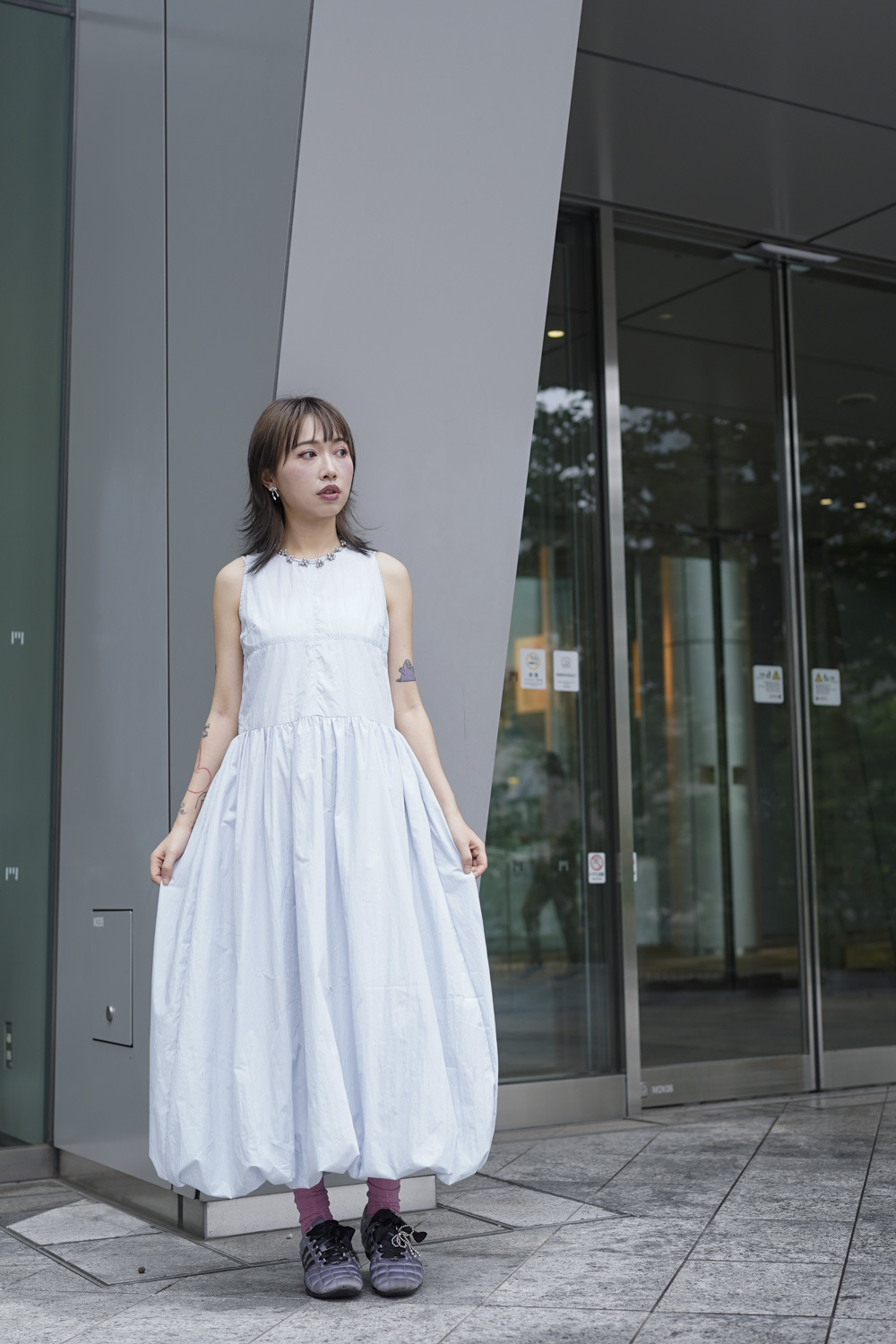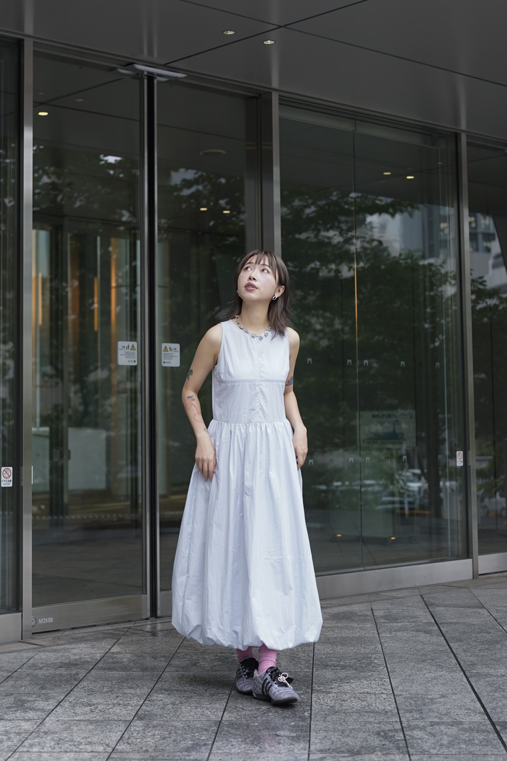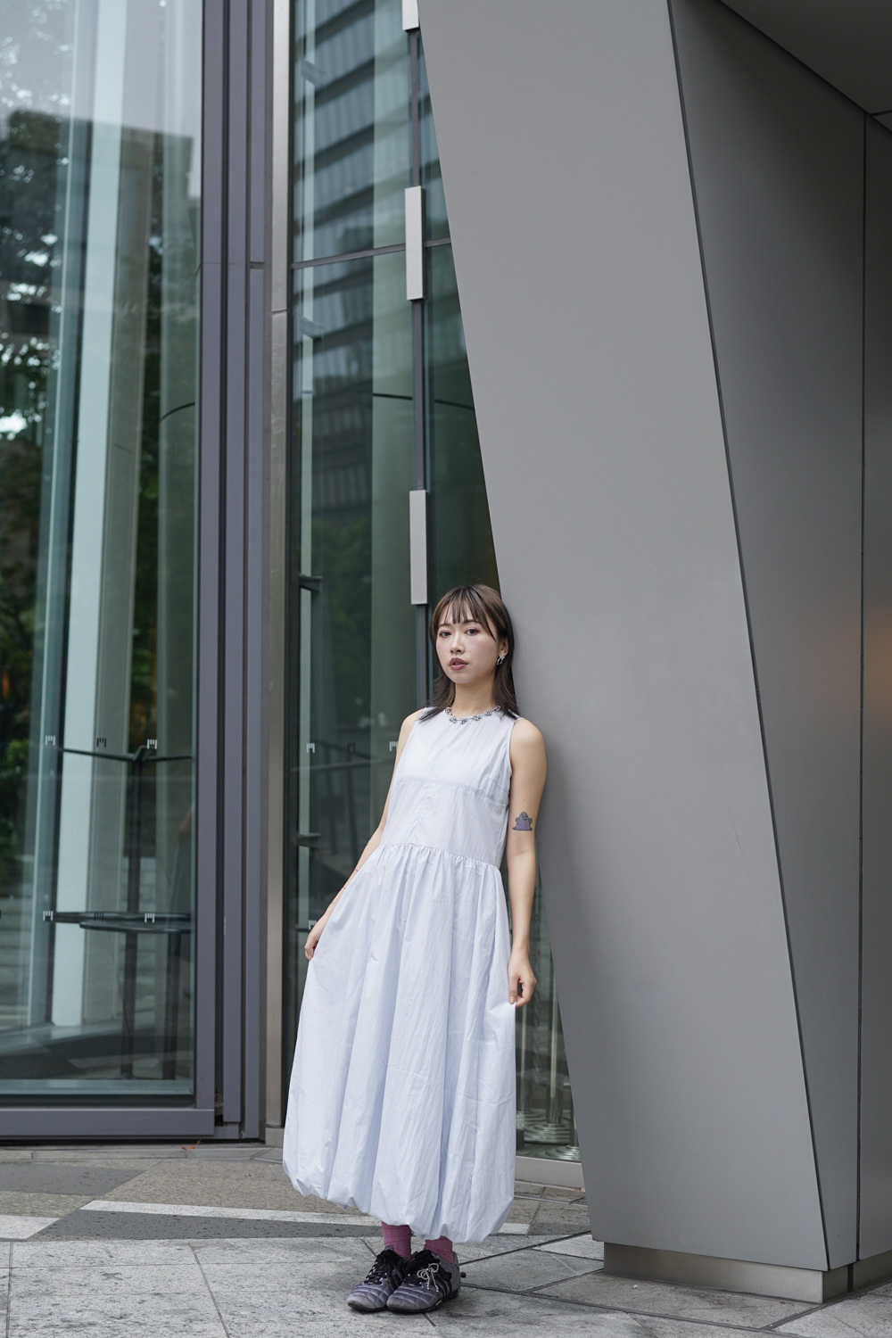 Slim Puff Sleeveless dress (WHITE/BLACK)