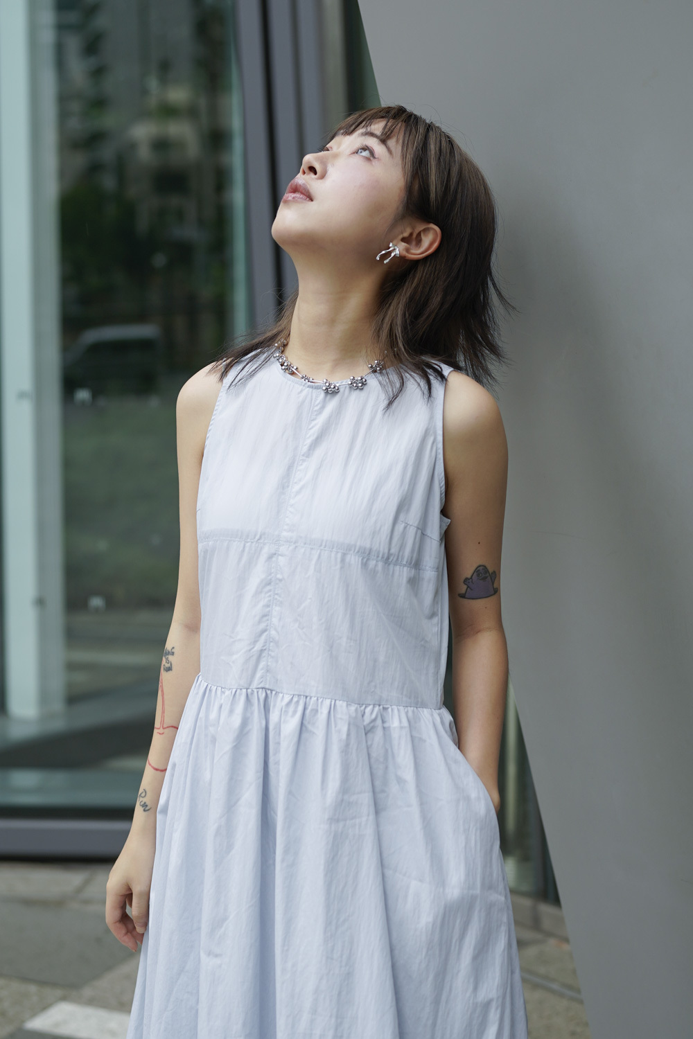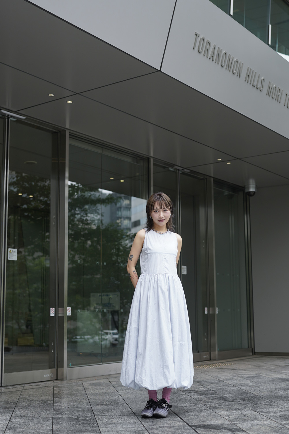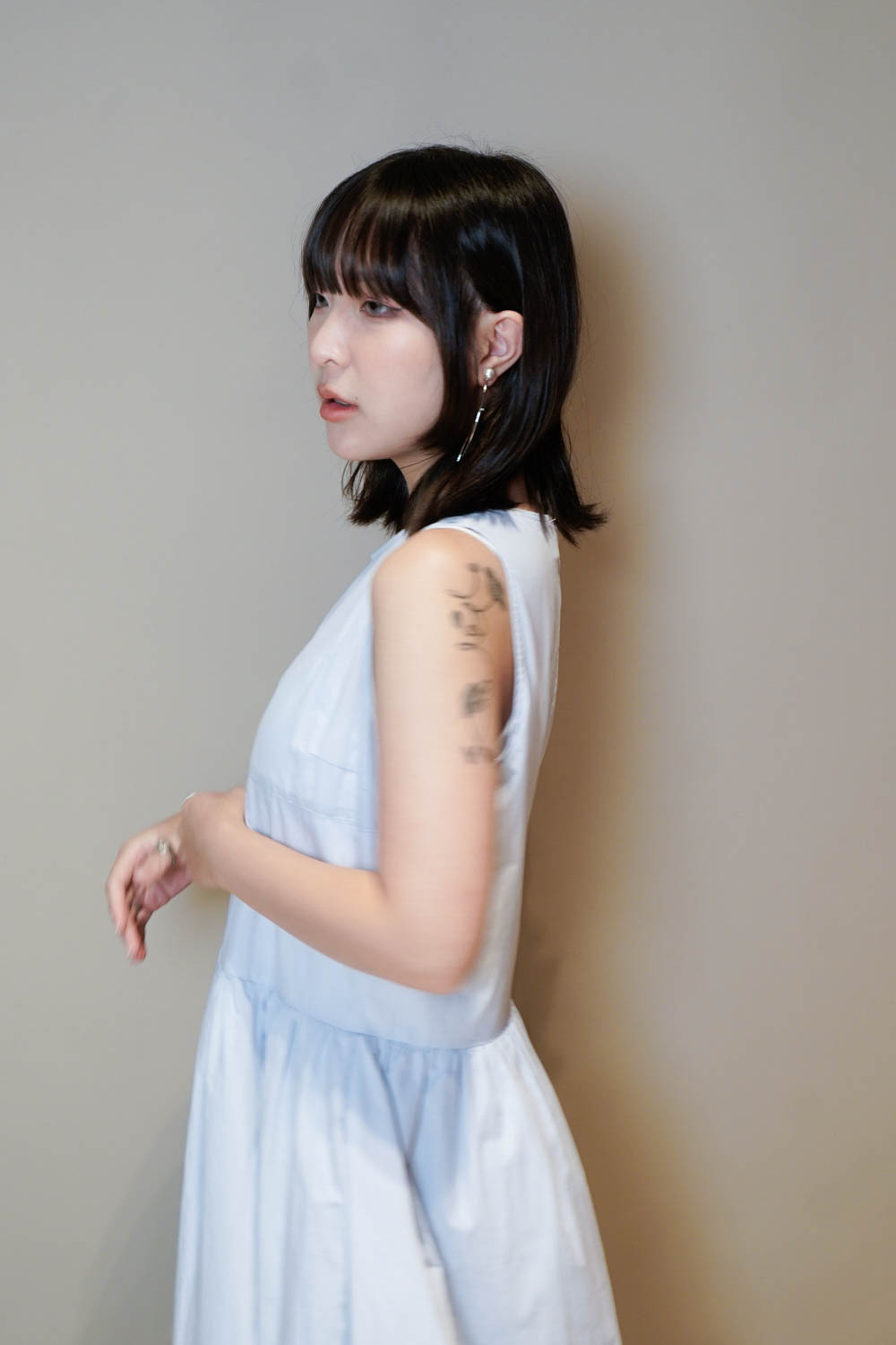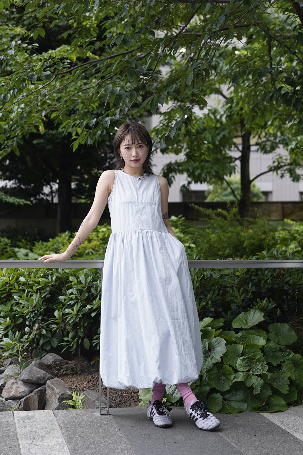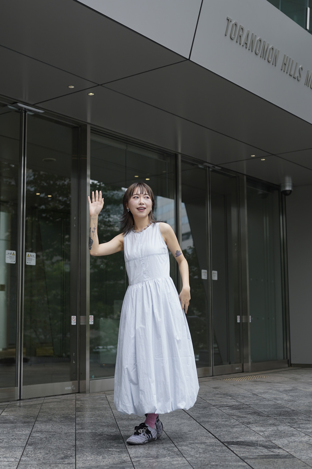 Slim Puff Sleeveless dress (WHITE/BLACK)