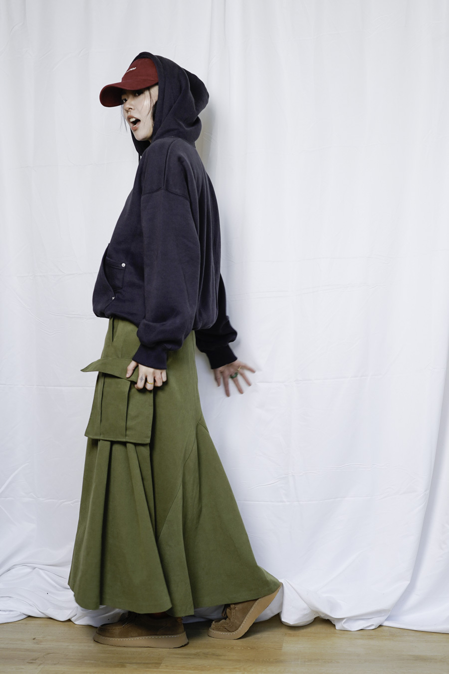 Small face cap (BEIGE/RED)