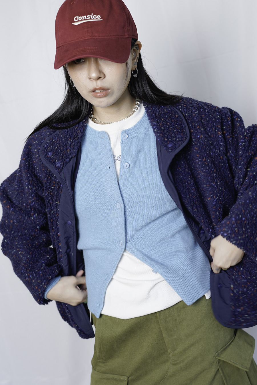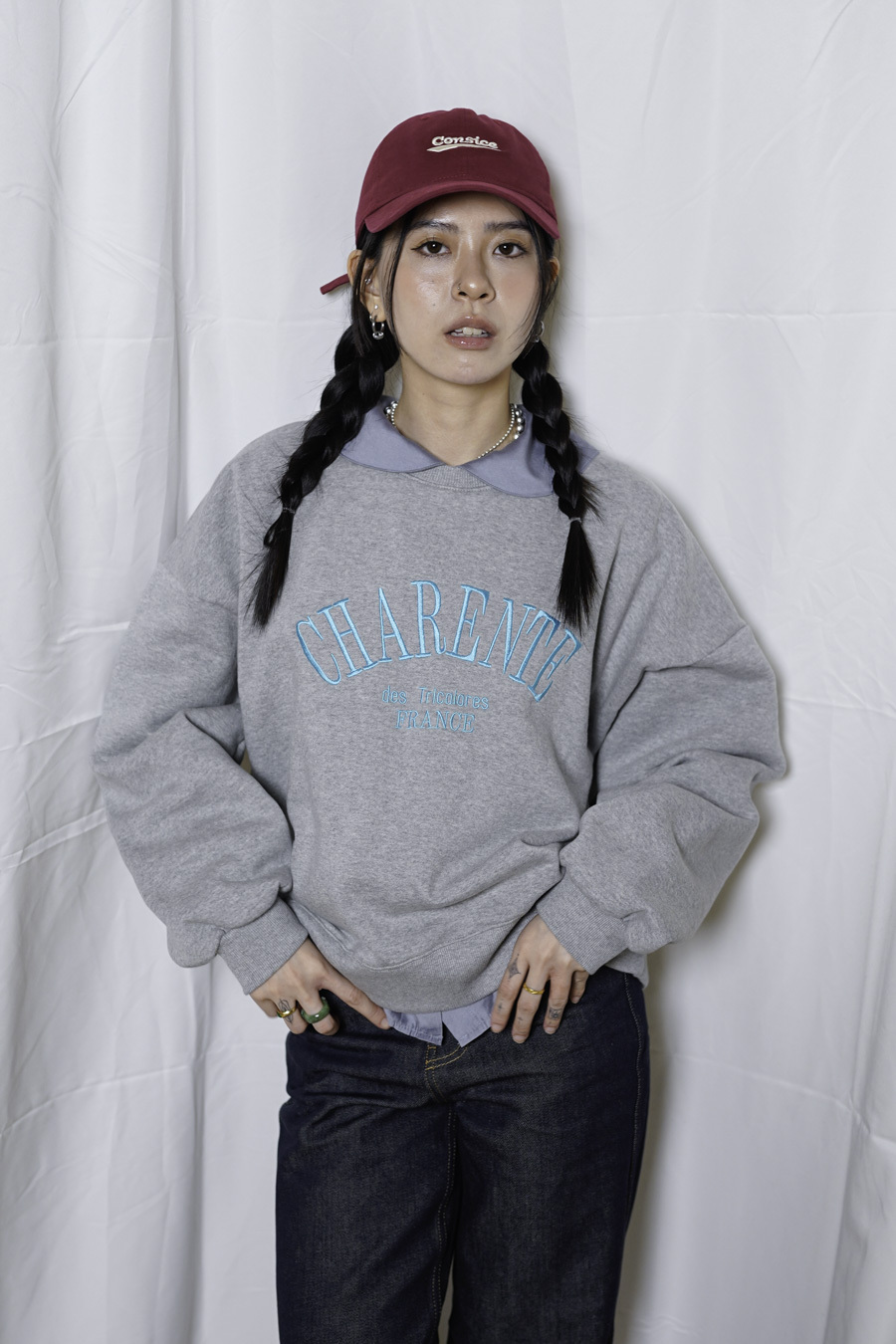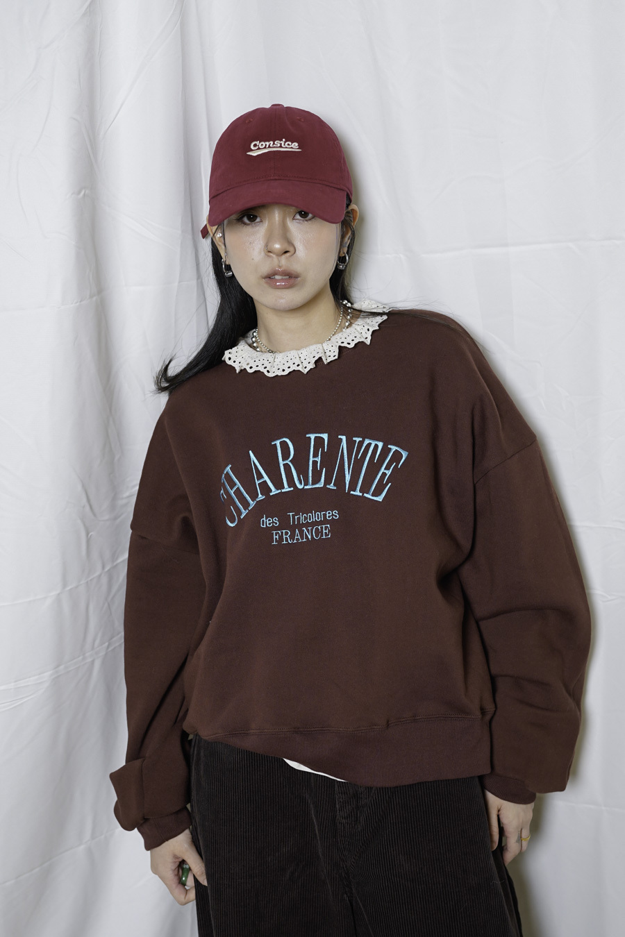 刺繡CONSICE字樣/ 低飽和度顏色 配合日常衣物有造型而不浮誇