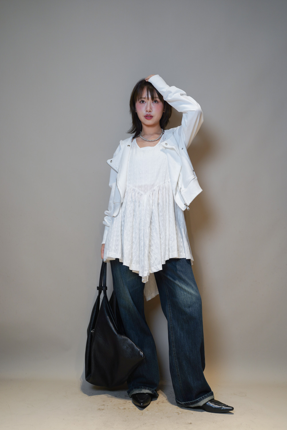 搭配slim cut牛仔褲 經典韓系/ 輕微Y2K風格