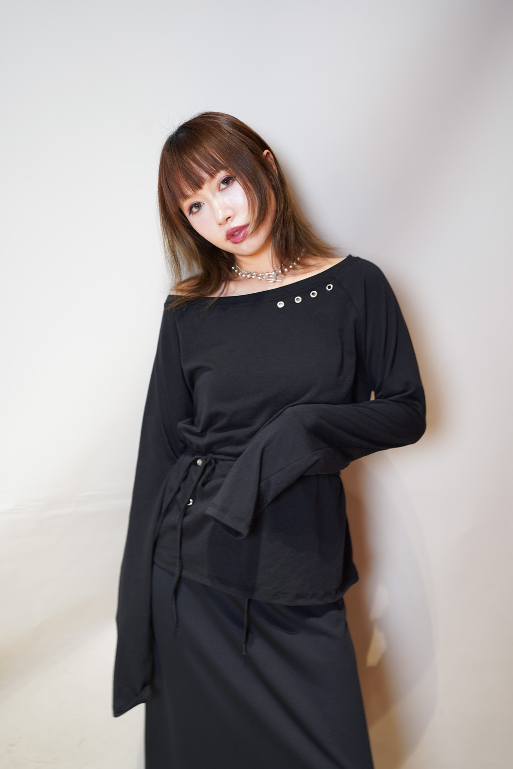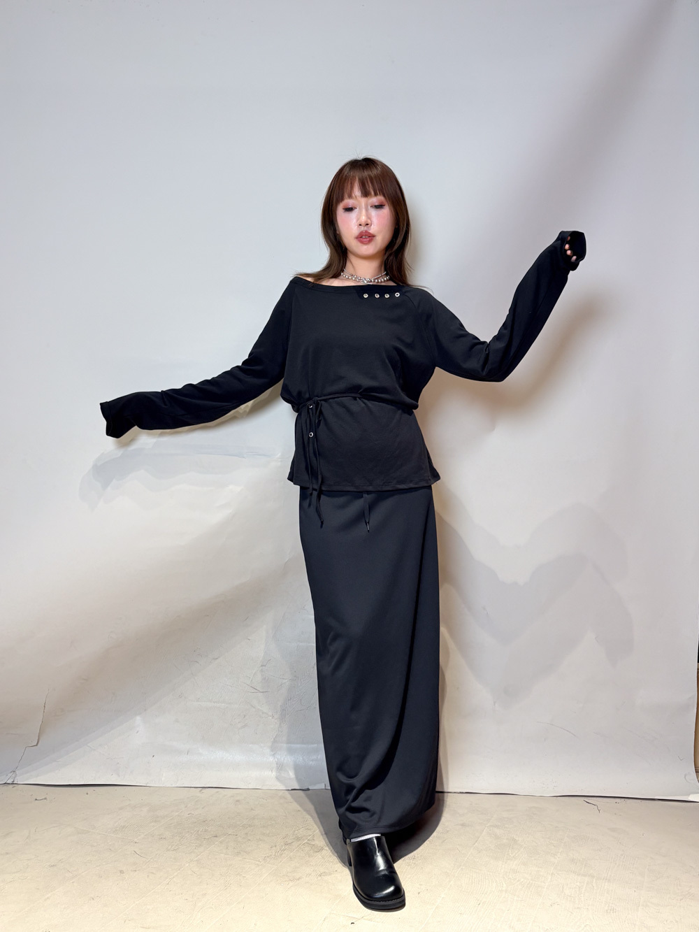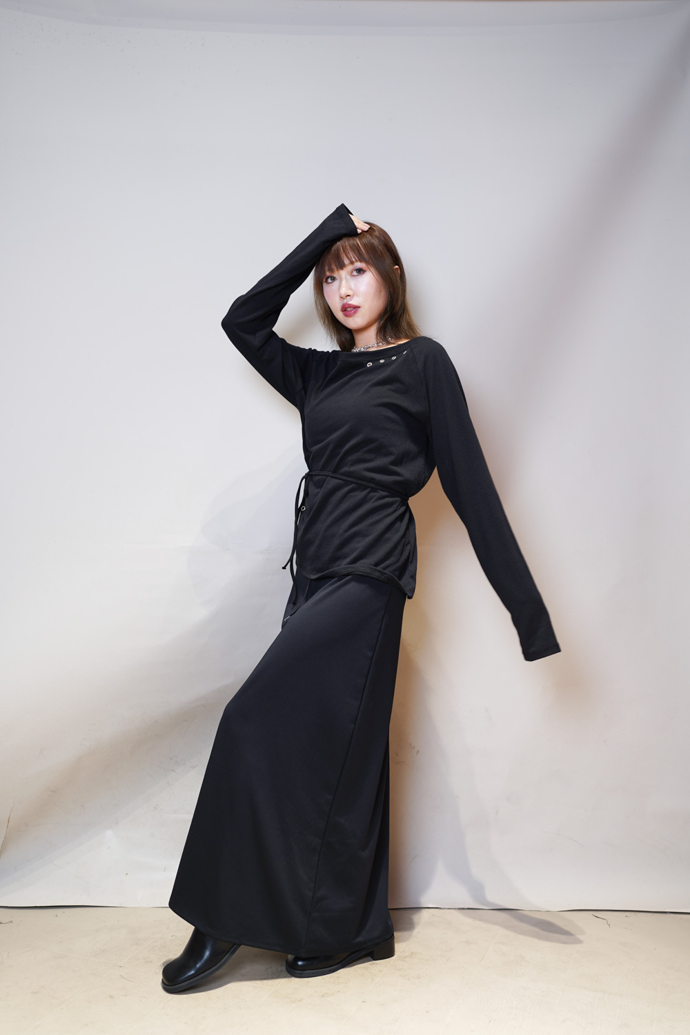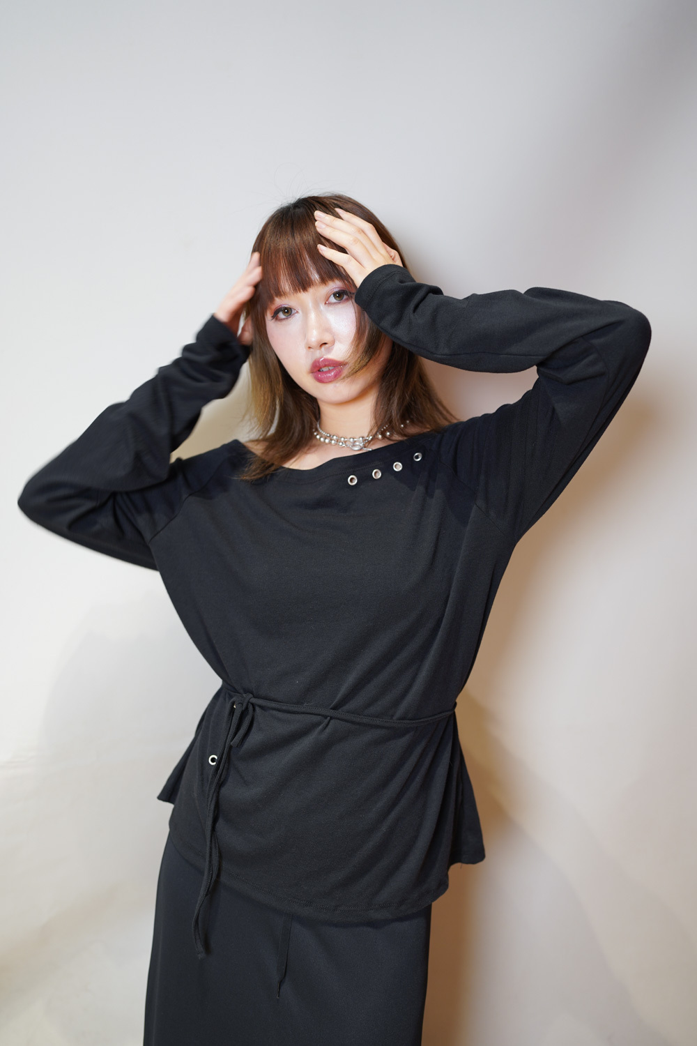 Special order: Eyelet long top with waist belt (PINK/BLACK)