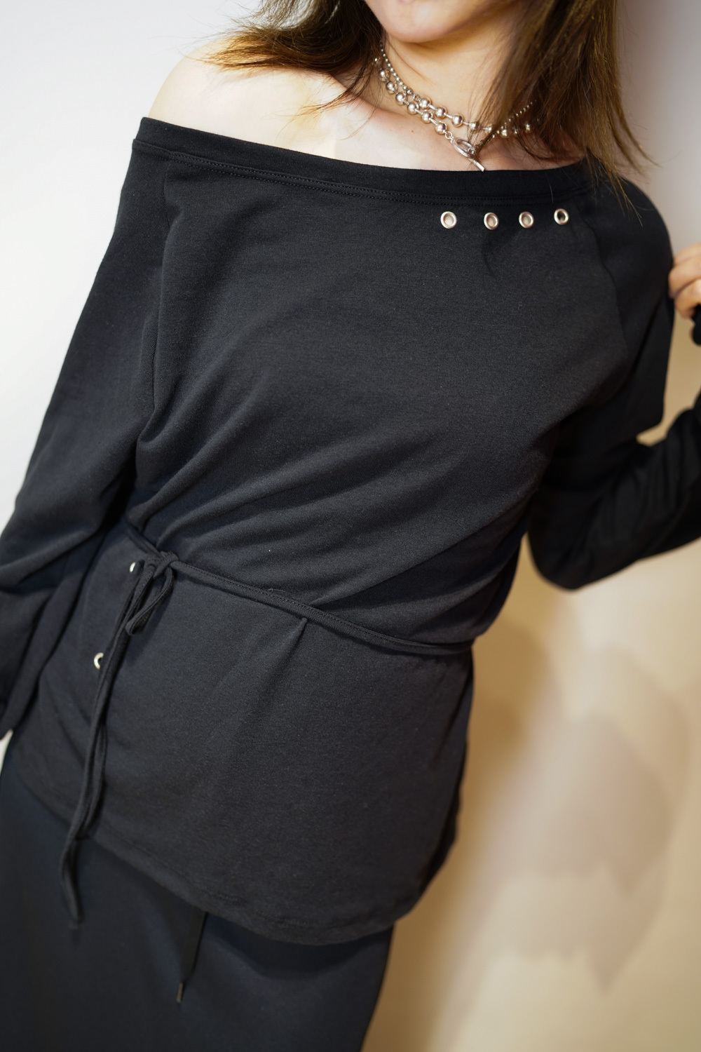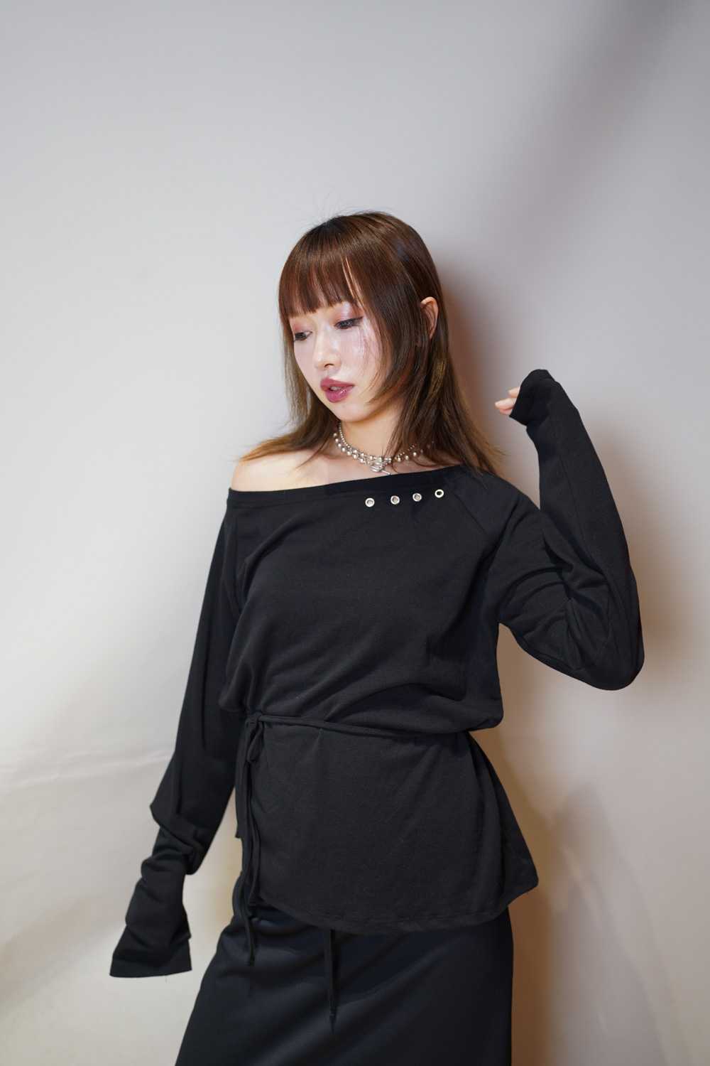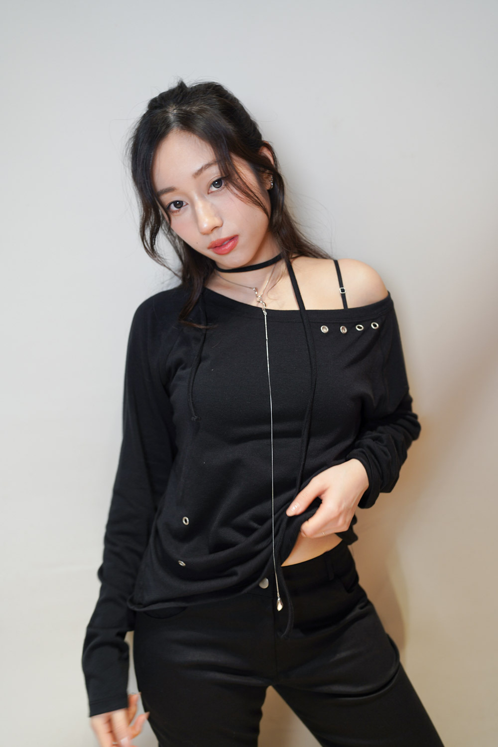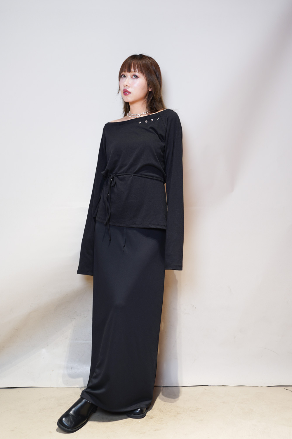Special order: Eyelet long top with waist belt (PINK/BLACK)