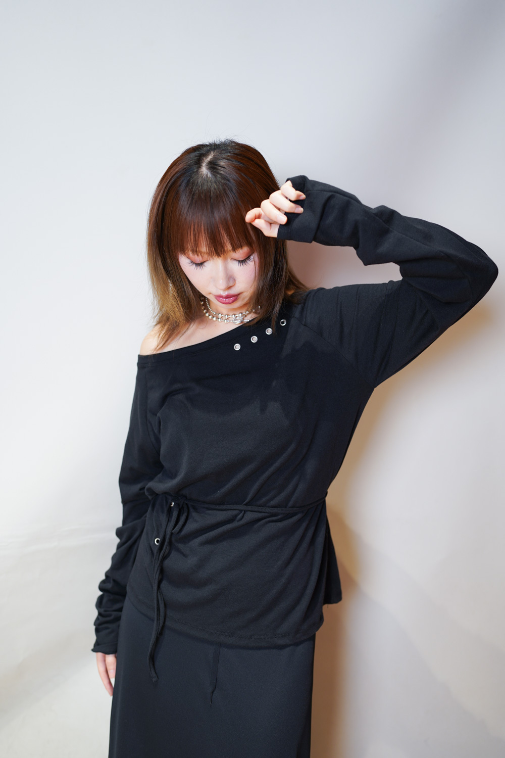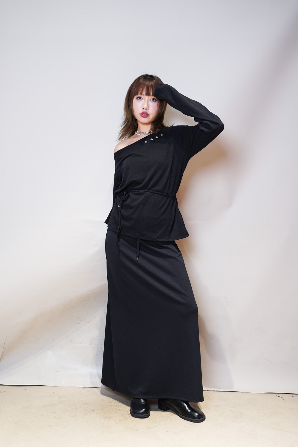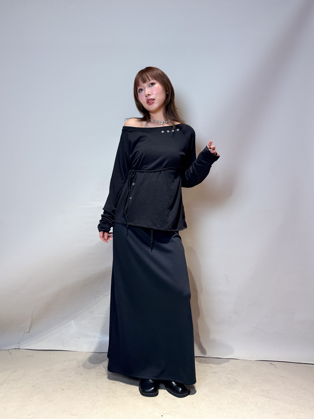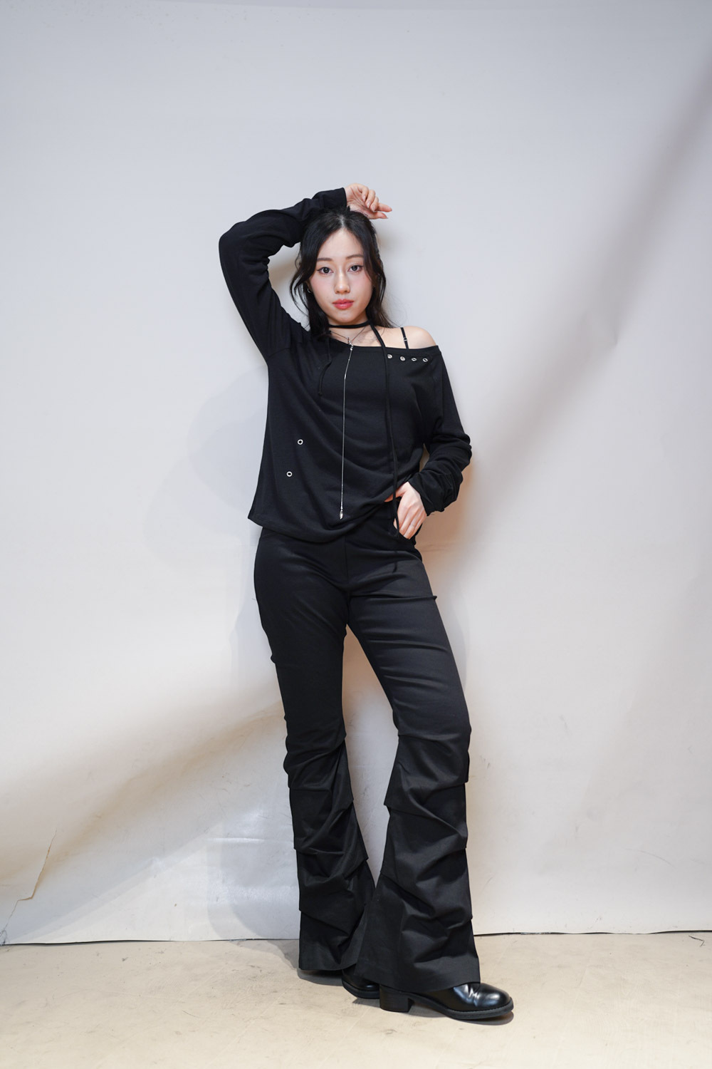 Special order: Eyelet long top with waist belt (PINK/BLACK)