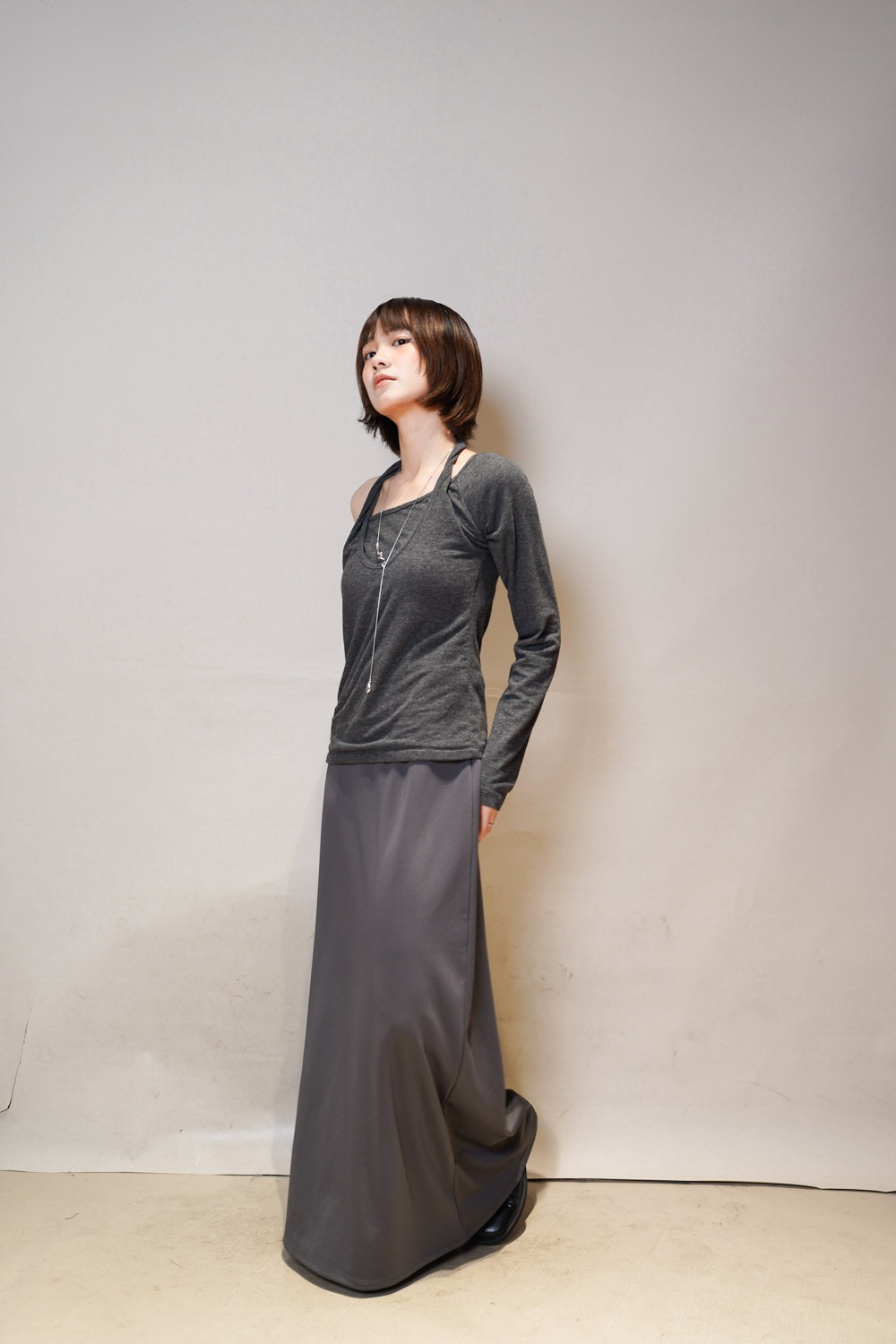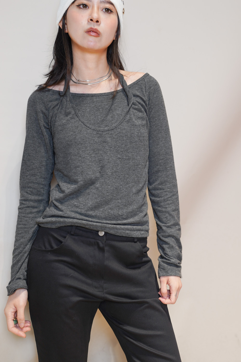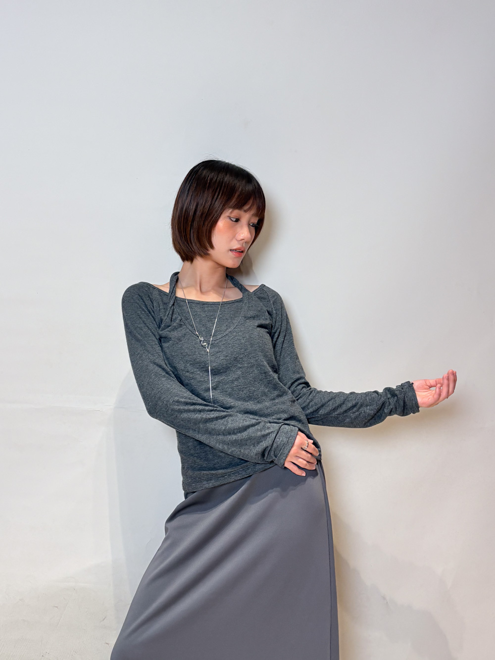 Special order: Layered cross neck top (WHITE/GREY)