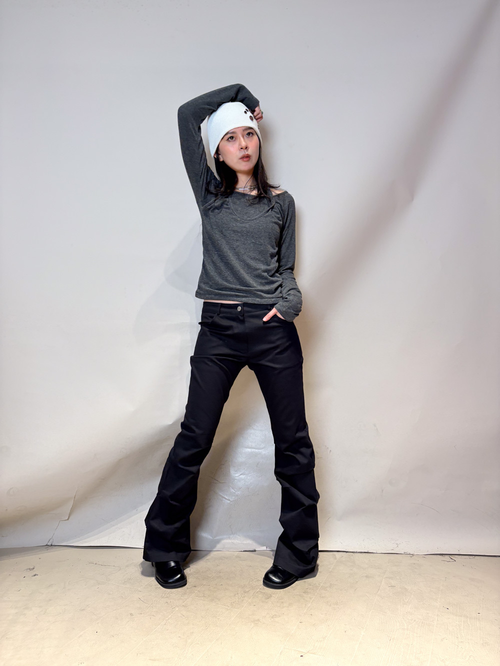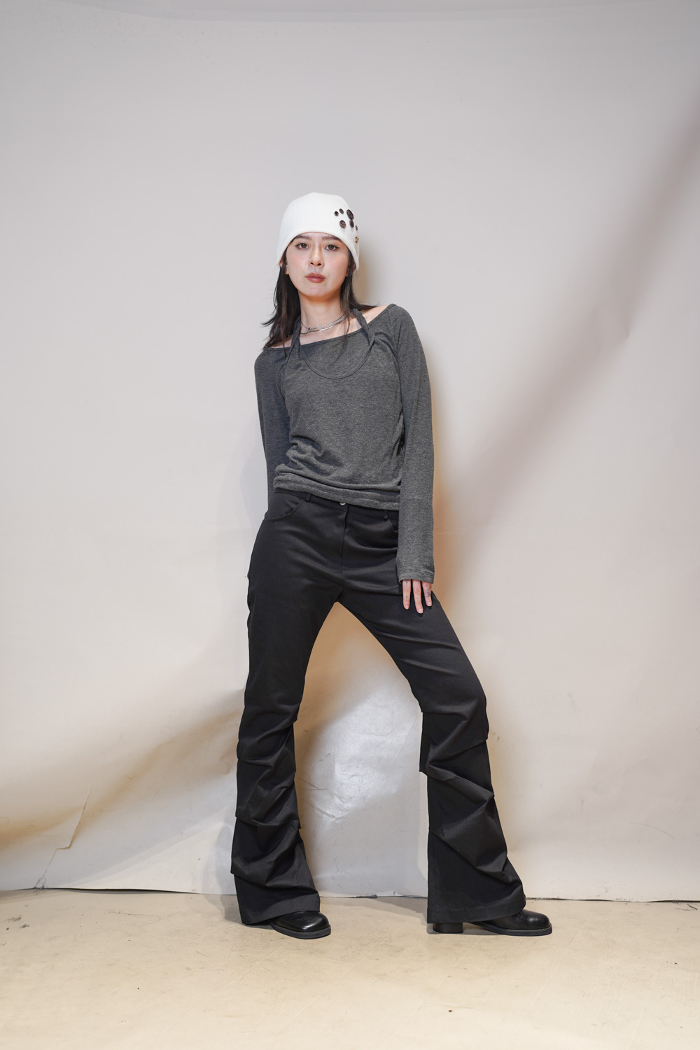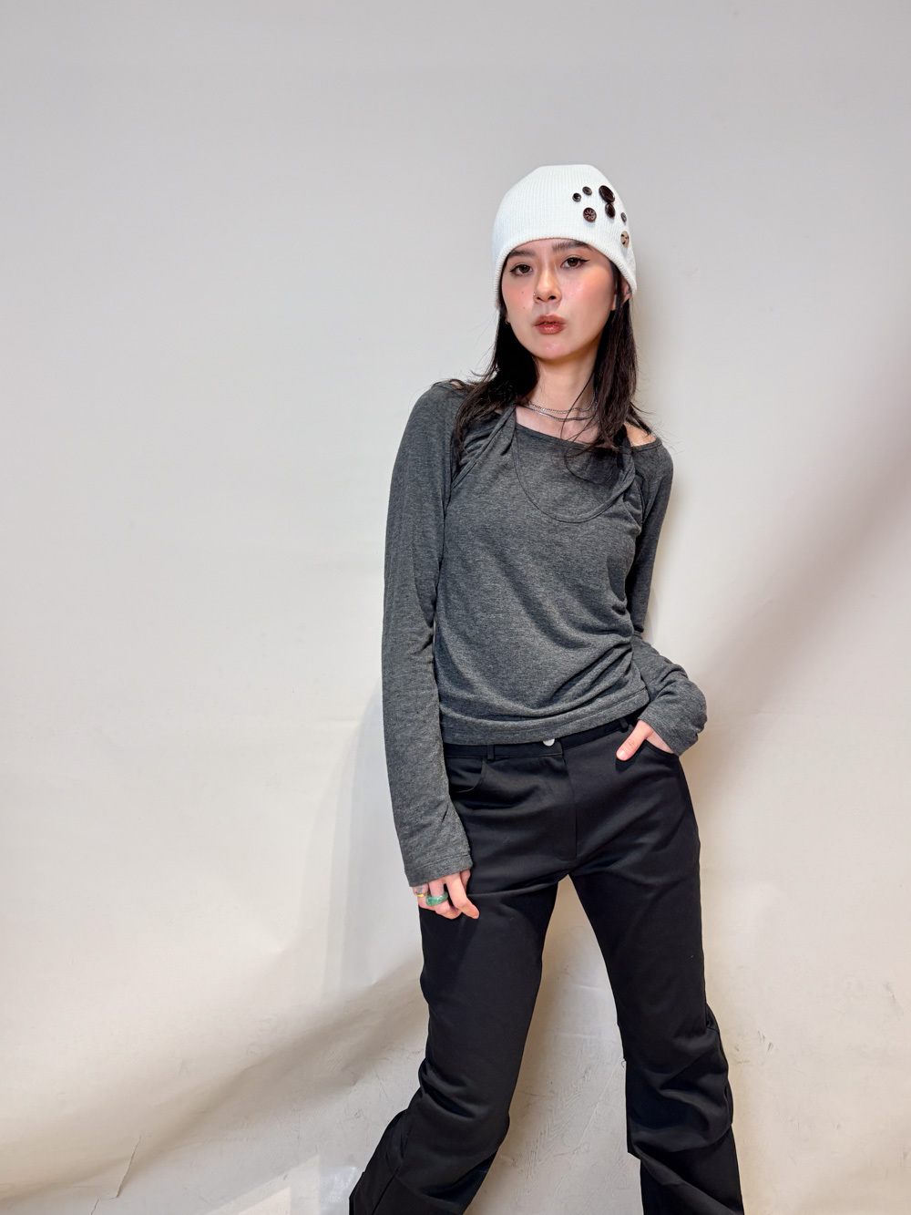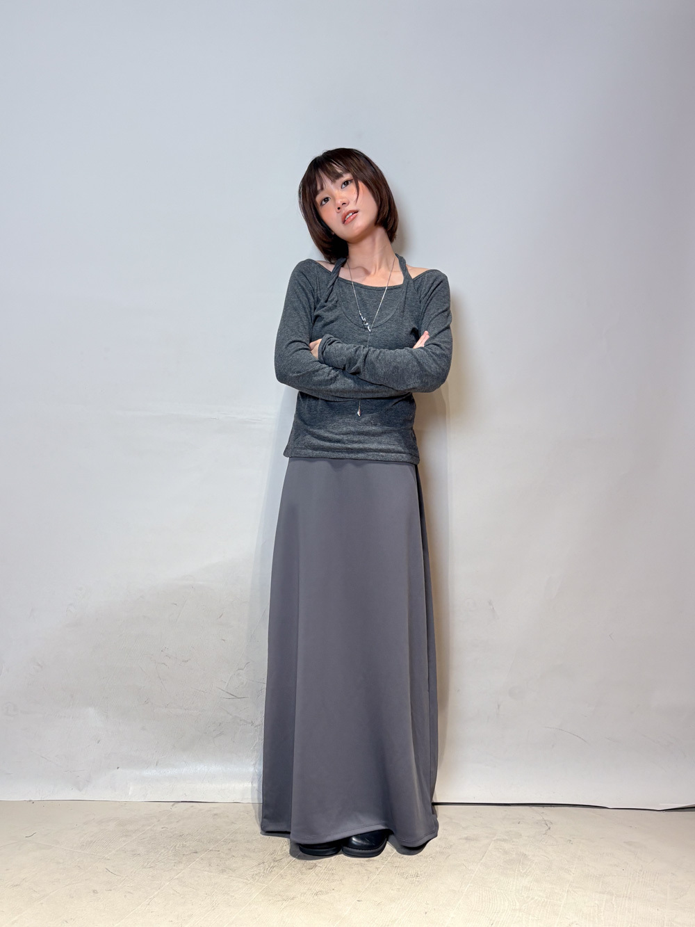 Special order: Layered cross neck top (WHITE/GREY)